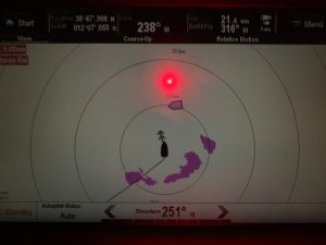 Wenn man sich unseren GPS Track von der Überfahrt von Palermo nach Villasimius auf Sardinien ansieht, fragt man sich wie das sein kann – wir trinken ja „in Fahrt“ (ist übrigens ein rechtlich definierter Begriff) keinen Alkohol und die Restfetten vom Vorabend kann ja nicht so schlimm gewesen sein. Es war aber tatsächlich das Wetter. Nachdem wir uns Respektabstand von Land erarbeitet haben, hatten wir innerhalb weniger Stunden den Wind aus so gut wie jeder Richtung in so gut wie jeder Stärke und somit jede Segelkombination gesetzt, mal Parasail, mal Code 0, mal Genua und Groß, mal gerefft und mal nicht. In der Folge machten uns dann die restlichen 36 Stunden Gewitterzellen zu schaffen, denen wir bis kurz vor Schluss erfolgreich ausweichen konnten. Vor Sardinien war dann aber Schluss damit, und wir wurden von einer riesen Zelle eingekreist. Glücklicherweise waren die Blitze nur mega einschüchternd und haben sonst nichts angerichtet.