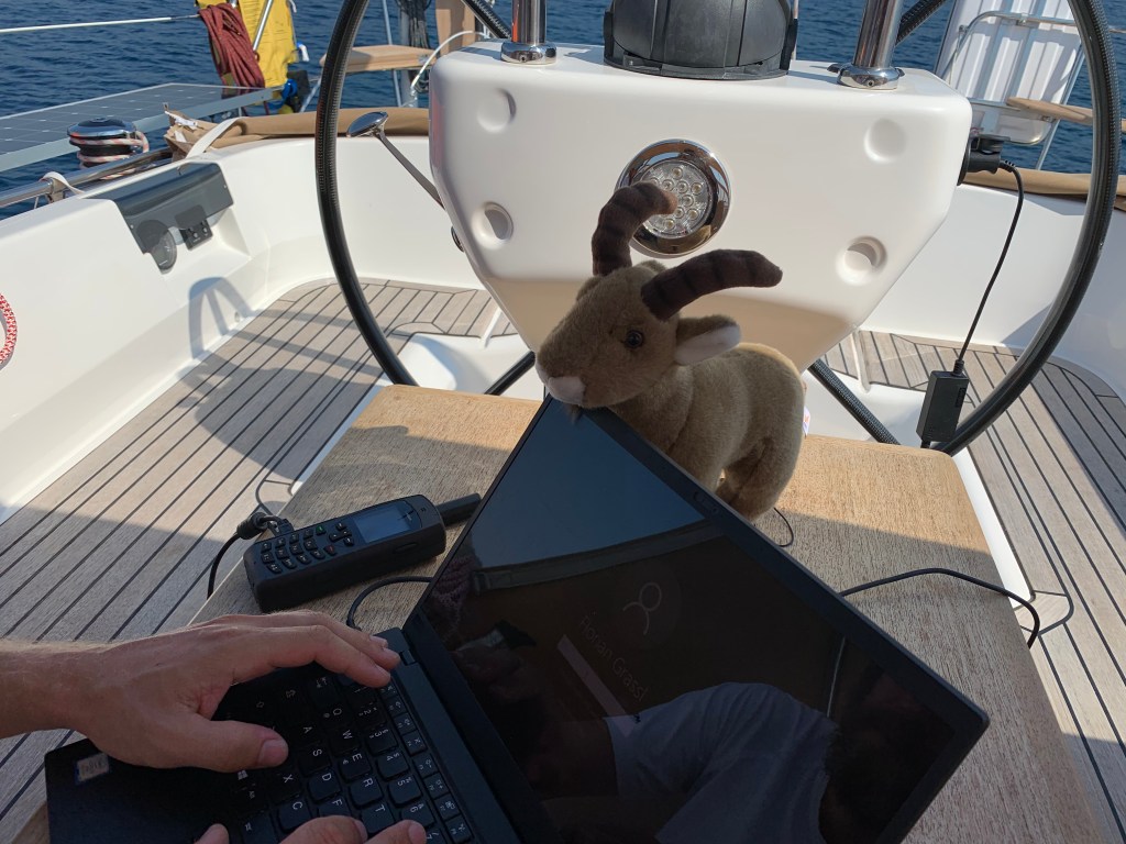 To get ready for the passage from Sardinia to Cartagena, Spain, little ibex is setting up the satellite phone. Then she will be ready to receive small weather data packages (less than 50kb) on the passages. But don’t even think of calling her. It would cost you more than 20 EUR per minute.