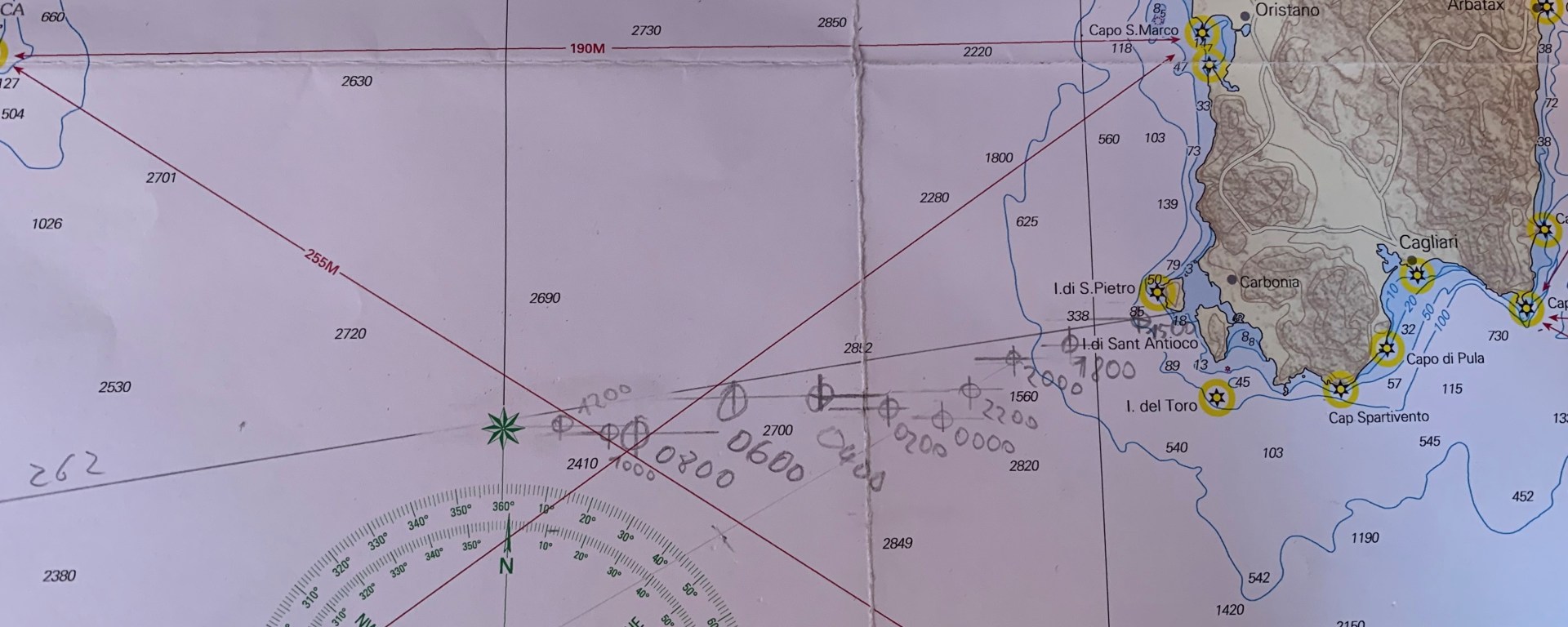 Little ibex just learnt that when preparing a passage, it is helpful to check the moon as well. An ocean crossing at new moon makes the wave appear a lot higher at night. And she still wonders why the big tanker ship decided to go between the two sailing boats in the middle of the Mediterranean Sea? Whatever the reason is, she sure monitors the situation closely; being at sea sleep seems to be overrated anyway, right?