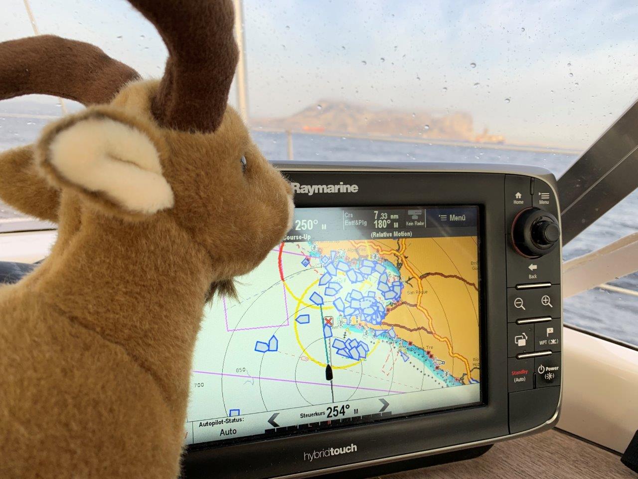 Little ibex almost made it. THE rock is coming closer just shortly after morning broke. Who would have guessed that a little ibex from Austria will make it within 6 weeks from the Northern Adriatic to the entry/exit of the Mediterranean Sea? But now some concentration is needed. Why are there so many boats? Seems like some collision avoidance tactics are needed before she can relax in the marina.