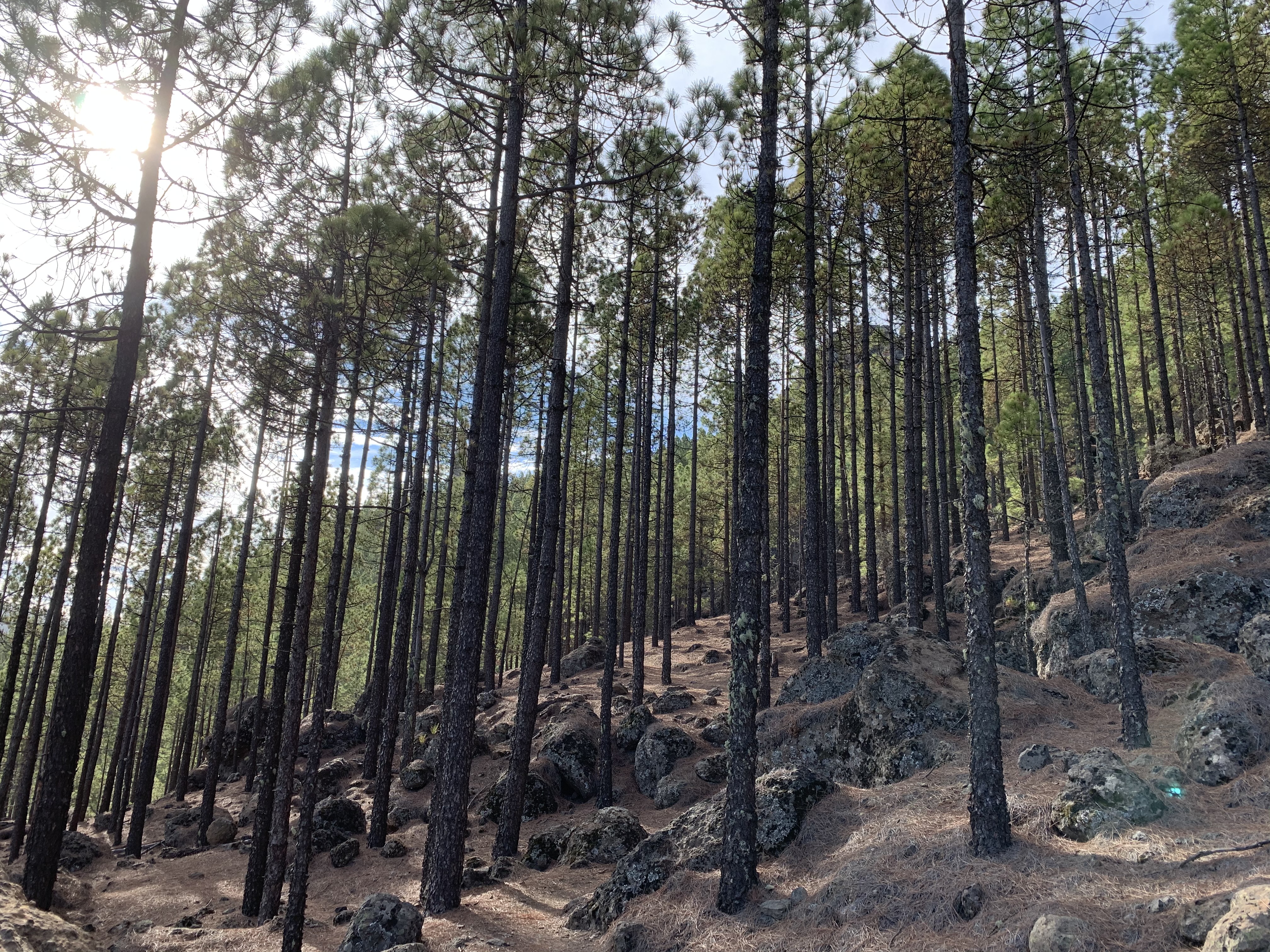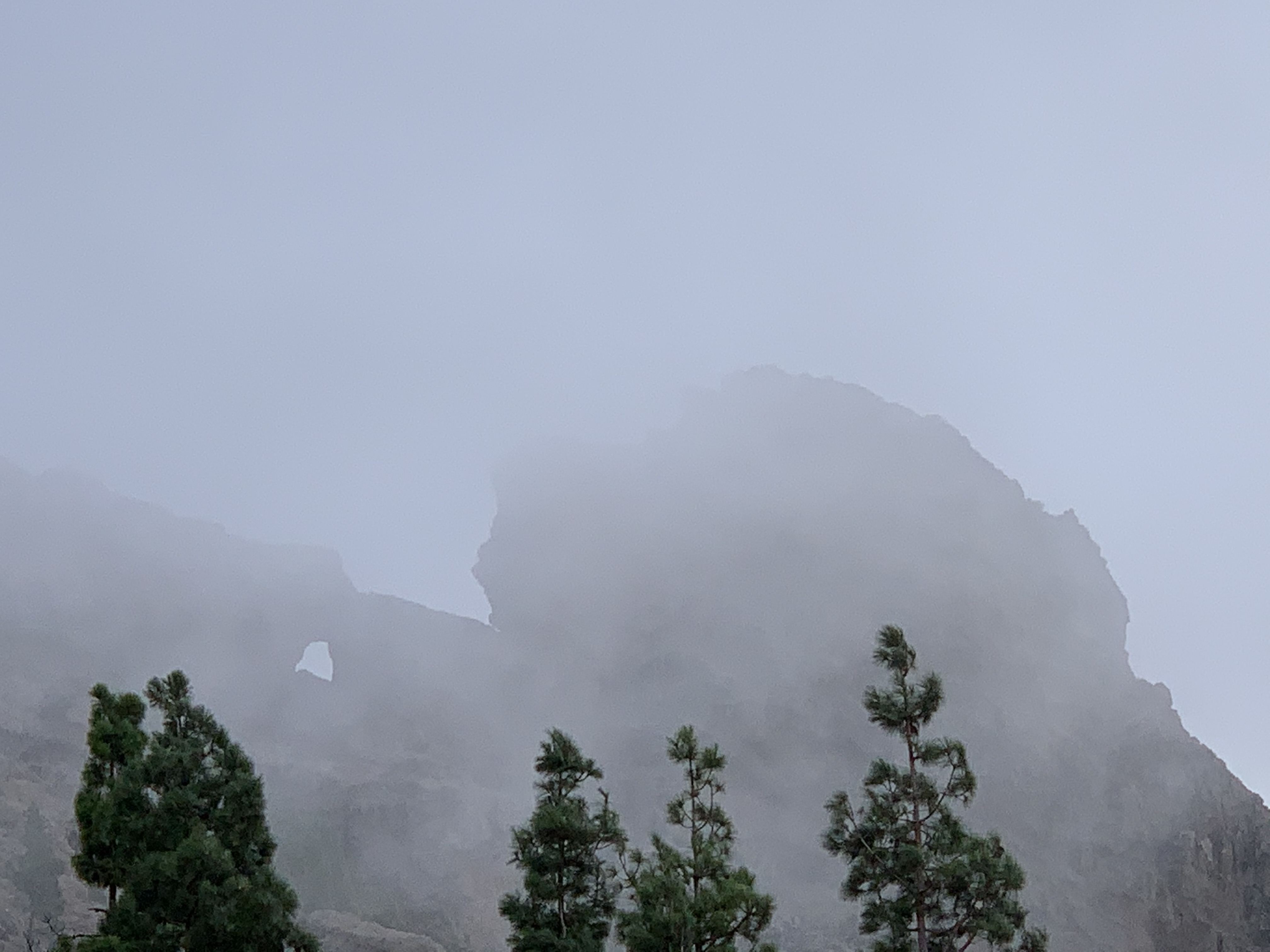 Nachdem wir uns von der Passage von Gibraltar kommend gut erholt und das Schiff auf Vordermann gebracht haben, hatten wir etwas Zeit die Insel zu erkunden. Immerhin reichen die Berge Gran Canarias bis knapp an 2000m Seehöhe heran, leider haben die Kanaren aber selbst den höchsten Berg, den Pico de las Nieves (1949m), per asphaltierter Straße erschlossen. Das hindert uns aber nicht, den Berg trotzdem zu Fuß zu erklimmen. Durch duftende Pinienwälder steigen wir in Richtung Gipfel hinauf und stellen fest: auch in den Bergen einer kleinen Atlantikinsel kann es einem die Sicht vernebeln und der Wind vom Weg blasen. Trotzdem genießen zwischendurch immer wieder die Sicht aufs Meer.