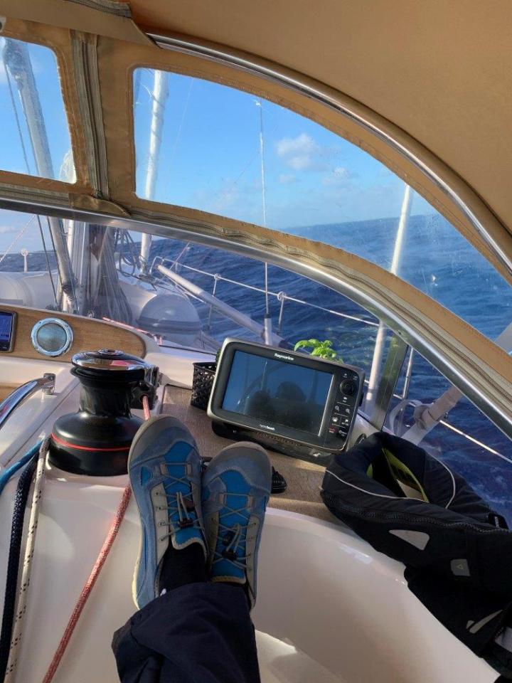 But the field started to spread out and when she reached the half-way point there were not that many boats in sight. At this point she was not yet aware that most boats where actually behind her. She just flew her parasail and enjoyed the ride. She couldn’t wait to get further south were warm clothing was not needed anymore.