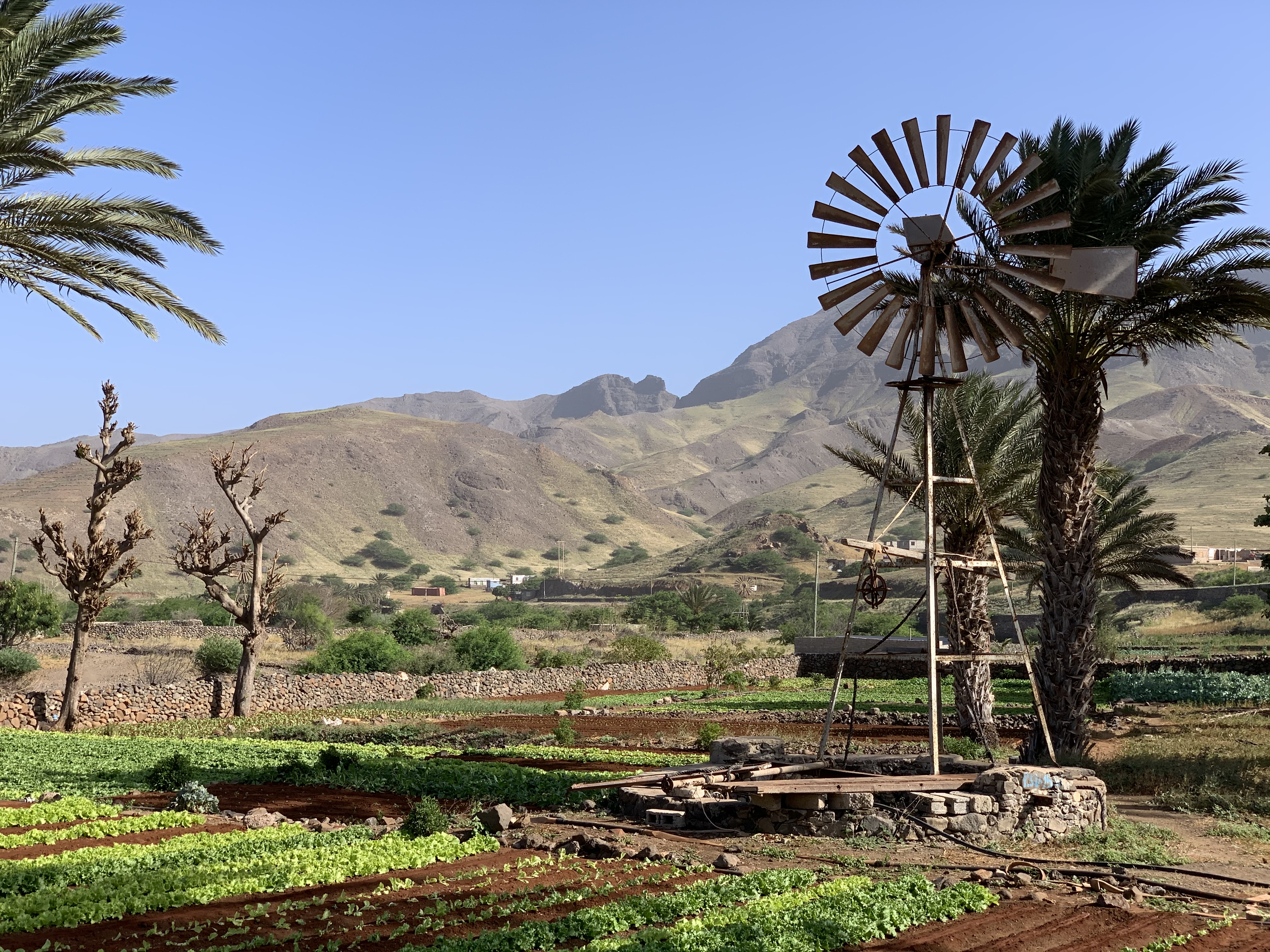 Wir besuchen auch ein Tal, in dem traditionell Landwirtschaft betrieben wird. Hier wird Gemüse aller Art angebaut um es in Mindelo am Markt oder an lokale „Großabnehmer“ (Hotels, etc.) zu verkaufen. Dabei muss man wissen, dass es seit Jahren auf Sao Vicente nicht mehr richtig geregnet hat und sämtliche Felder bewässert werden müssen. Auch eine Auswirkung des Klimawandels.