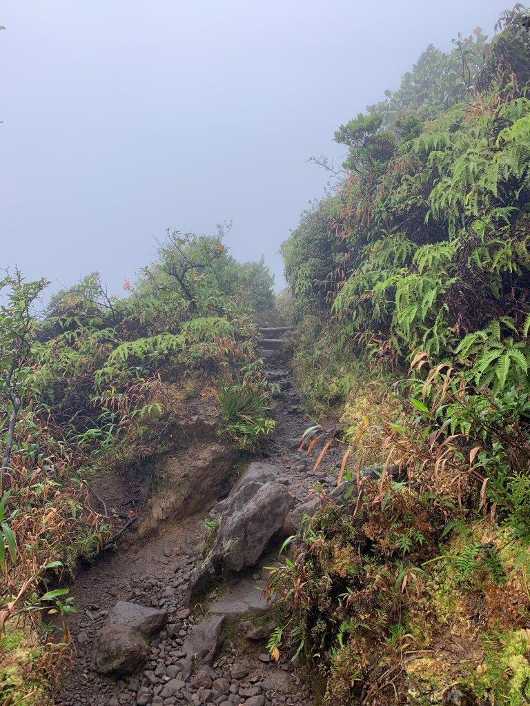 Hiking La Sourfriere is of course a must do for little ibex. It starts with a paved pathway and becomes narrower and narrower. Unfortunately the clouds really love this high peak and it rains, and rains, and rains, and rains, …