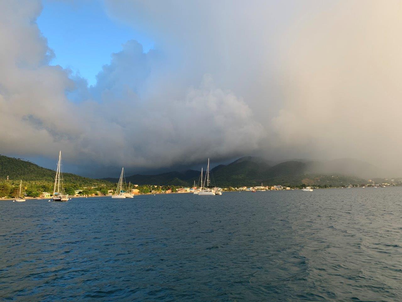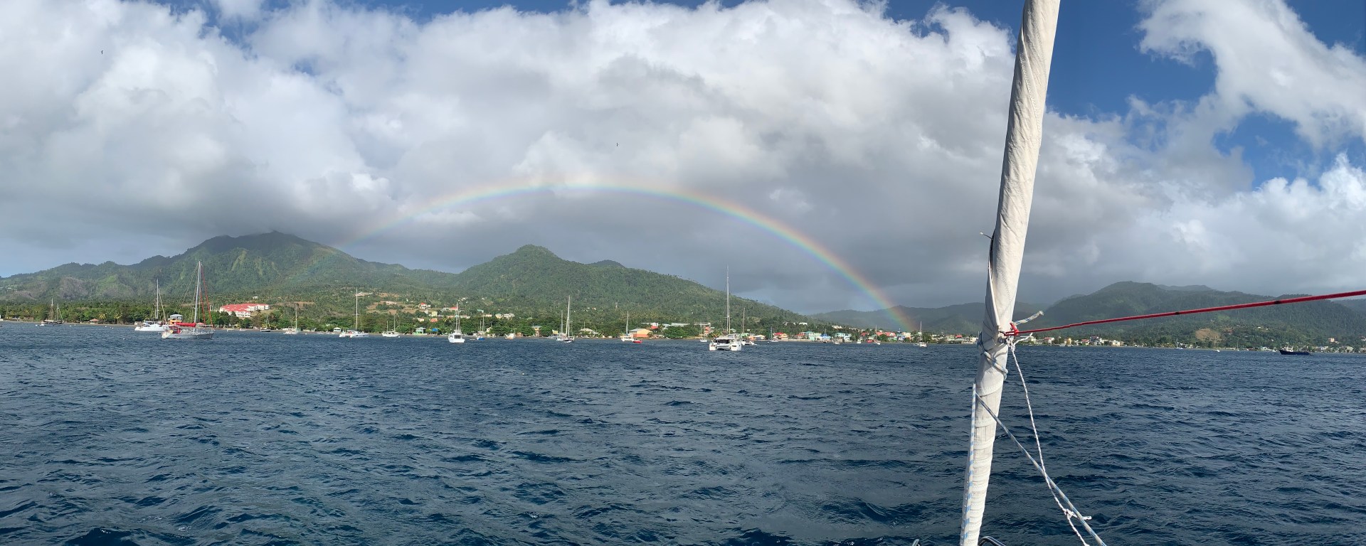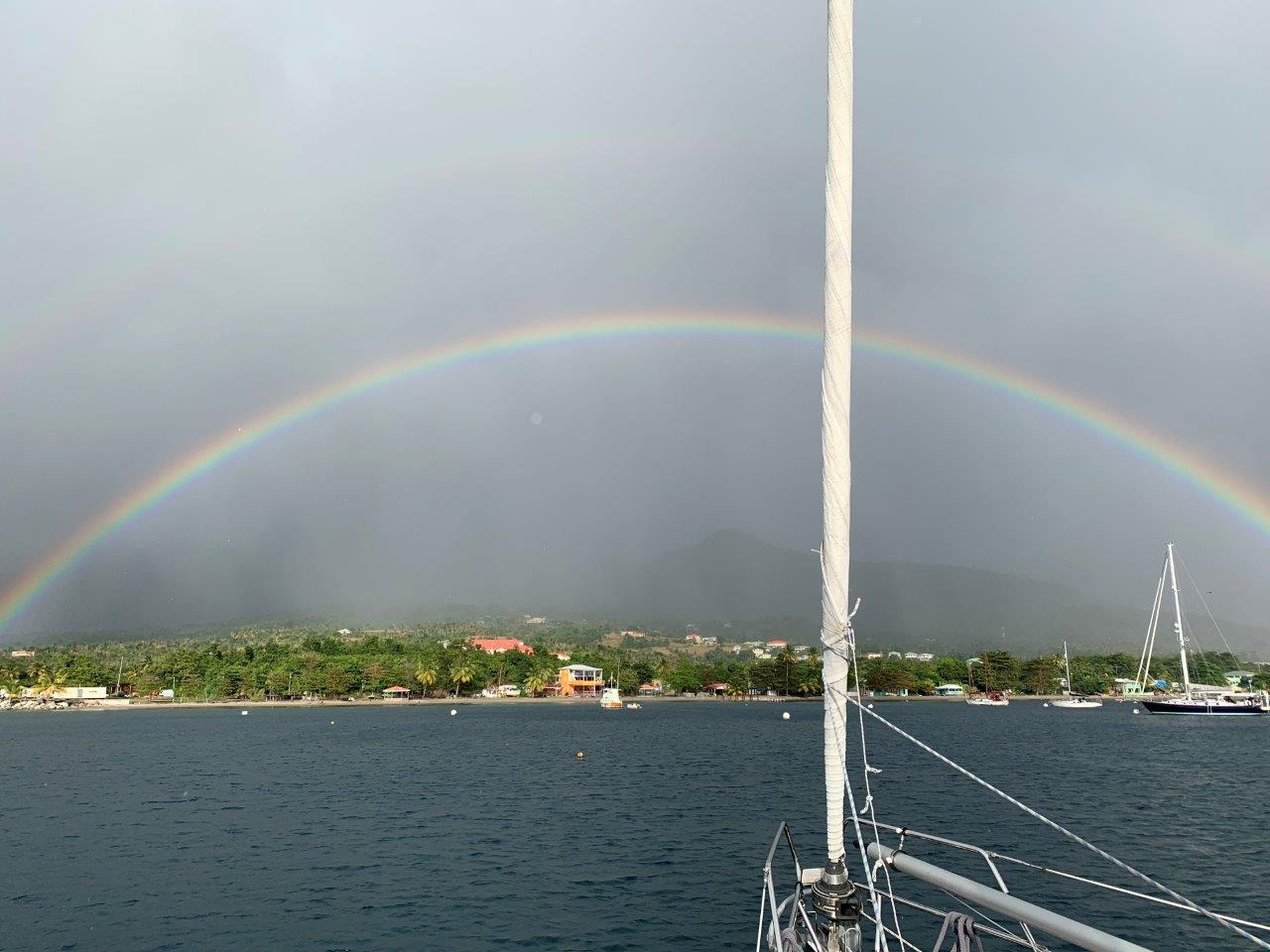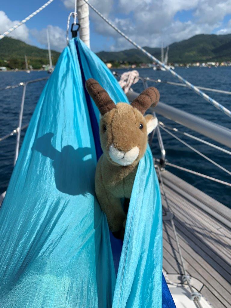Entering Dominica the coast guard welcomes you right away and reminds you that you have to undergo a 7 day quarantine. It was the first one little ibex had to undergo since leaving Italy in August 2020. She has prepared a long list of to-dos like cleaning the hull and the lines for the anchor buoy. But she also enjoyed herself eating pancakes, baking bread, hanging around in the hammock, watching sunsets and rainbows and not to forget, she watched the superbowl.