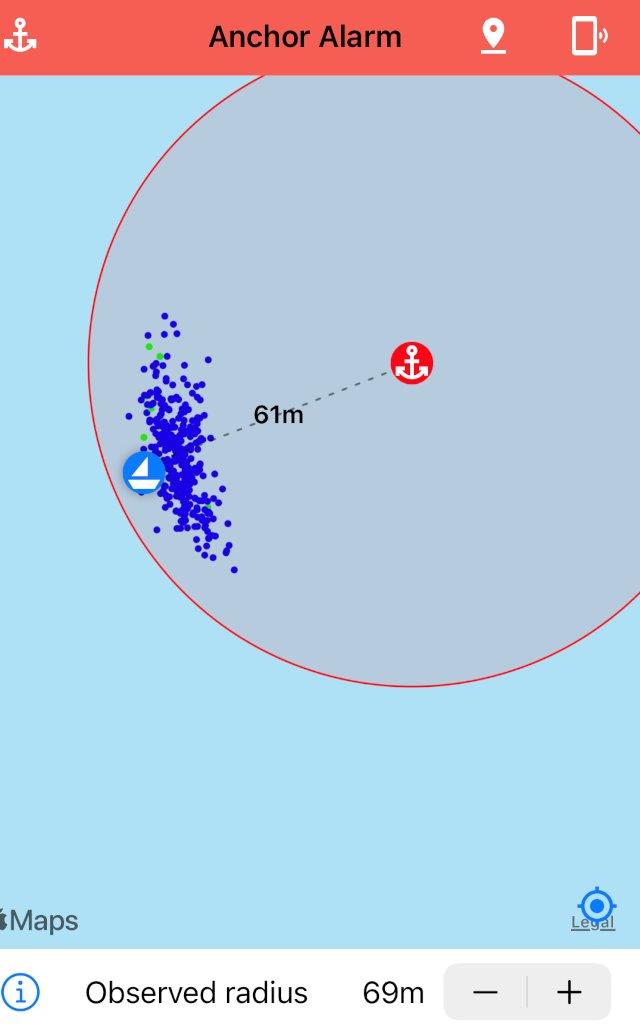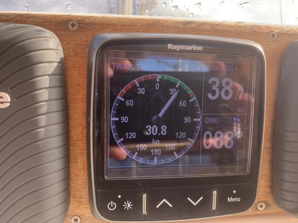 She also made sure that the anchor was holding with windspeeds up to 38 knots. Even the normally calm bay was choppy in that wind.