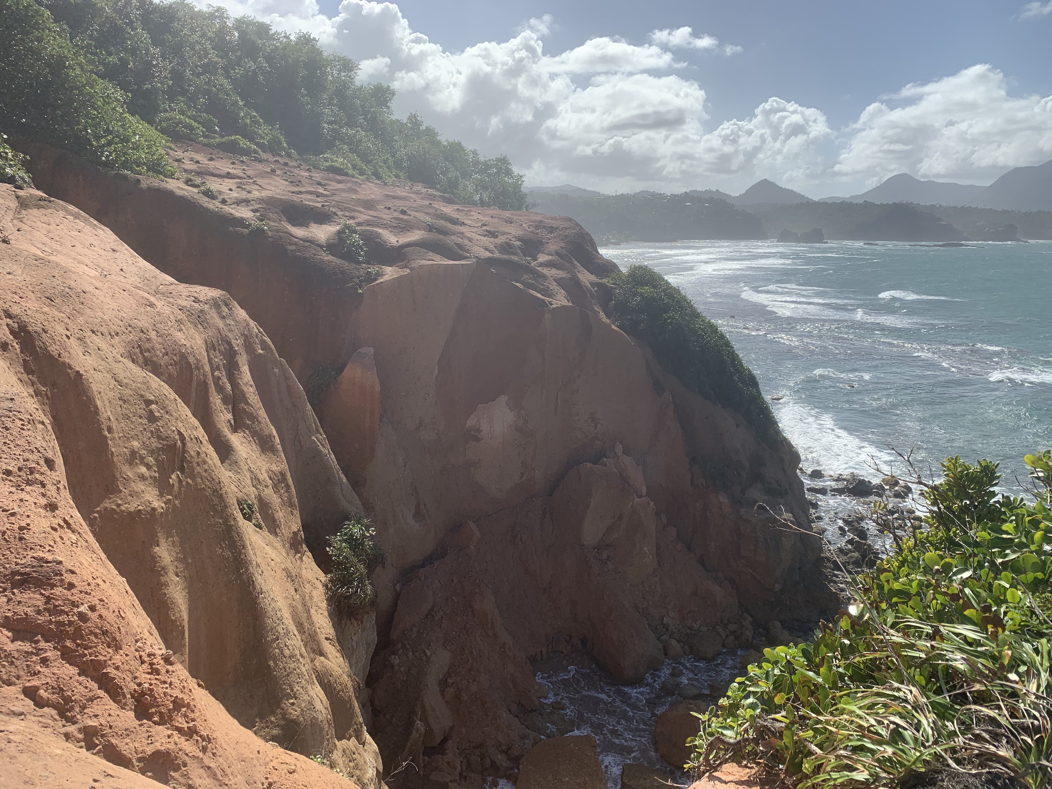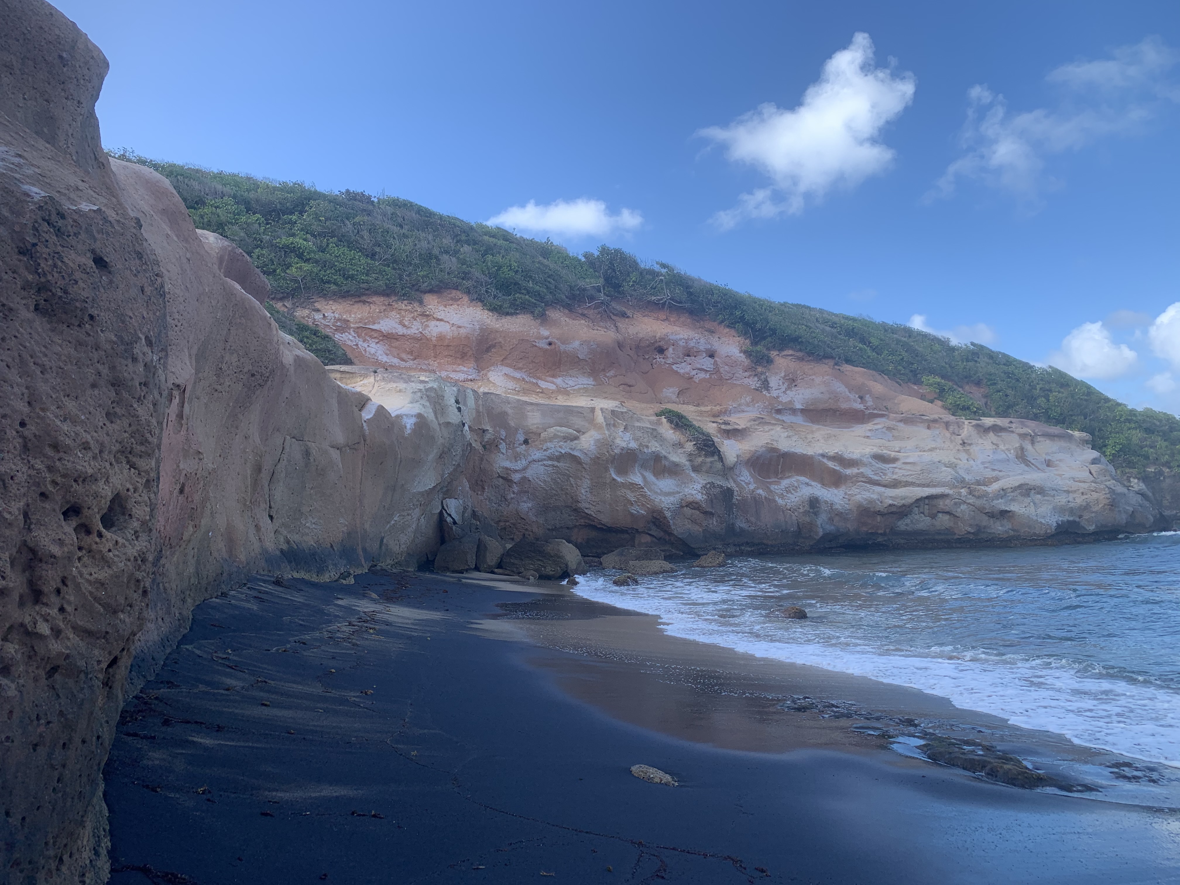 Red Rocks: Was so aussieht wie rote Felsen, ist eigentlich roter Lehm, wobei Eisen aus den Vulkanen der Insel dem Lehm die Farbe verleiht. Wie sie auch immer entstanden sie, die Red Rocks sind ein schönes Naturschauspiel, inklusive dem benachbarten Strand mit schwarzem Sand.