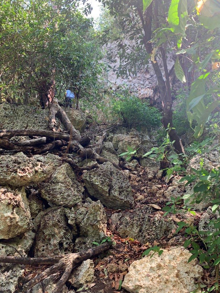 Another walk brings her to the sink hole which finally leads to some climbing again. Amazing, as the island is mostly flat.