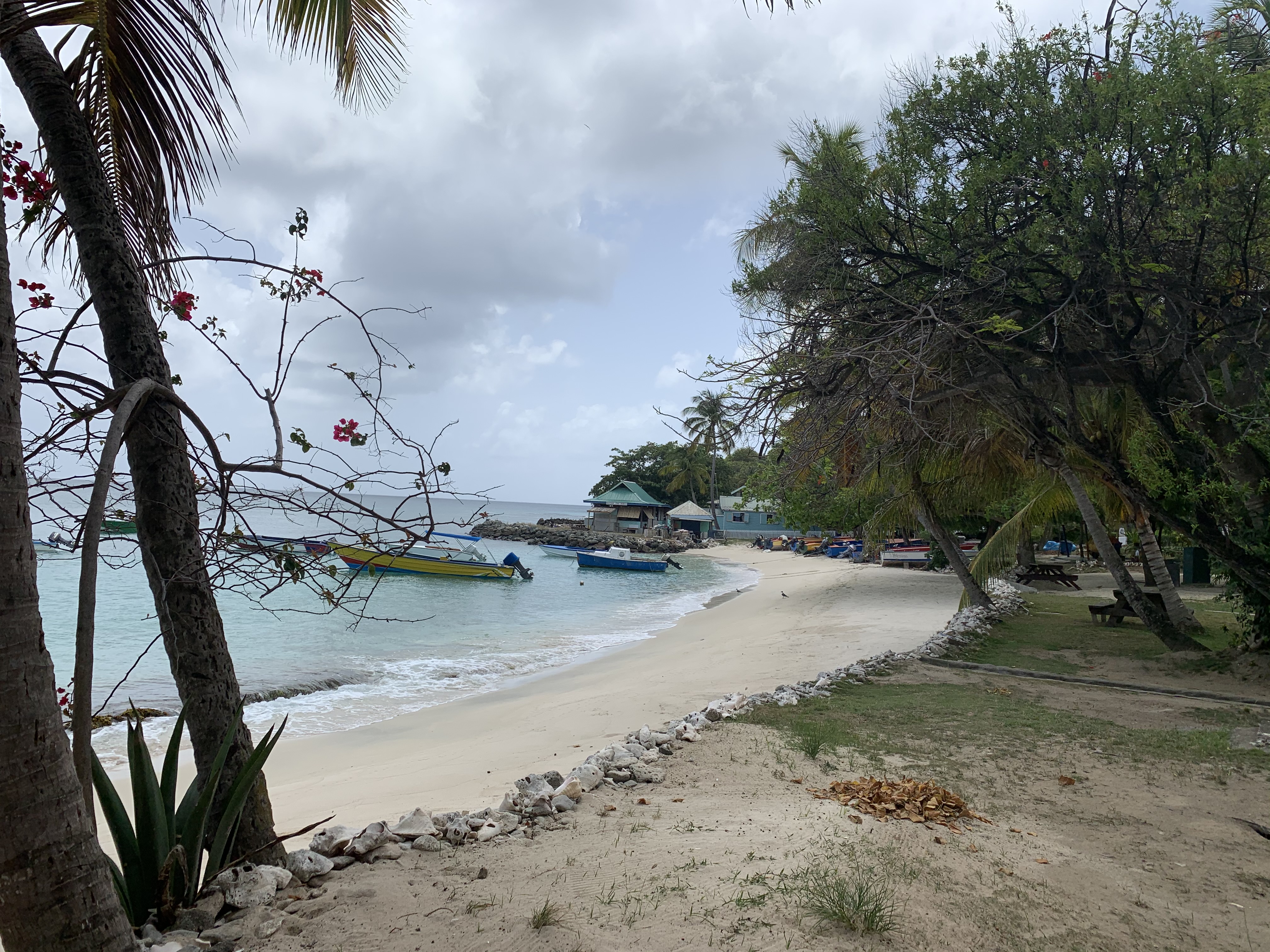 Auf Mustique waren wir die meisten Nächte das einzige Boot. In Salt Whistle Bay, eine in normalen Jahren extrem beliebte Bucht im Norden von Mayreau, hatten wir für eine Nacht Nachbarn, ein amerikanisches Pärchen, das eben dabei war ihren Segelschein abzuschließen, Ausbildungstörn also. Wir durchqueren Mayreau komplett zu Fuß und lernen am südlichen Ende in der Bar neben dem Fährendock Dennis kennen. Er besitzt neben der Bar auch ein Restaurant und ein Hotel auf der Insel, aber in erster Linie hat er gefühlt in jedem europäischen Land ein Kind, jeweils von einer anderen Frau.
