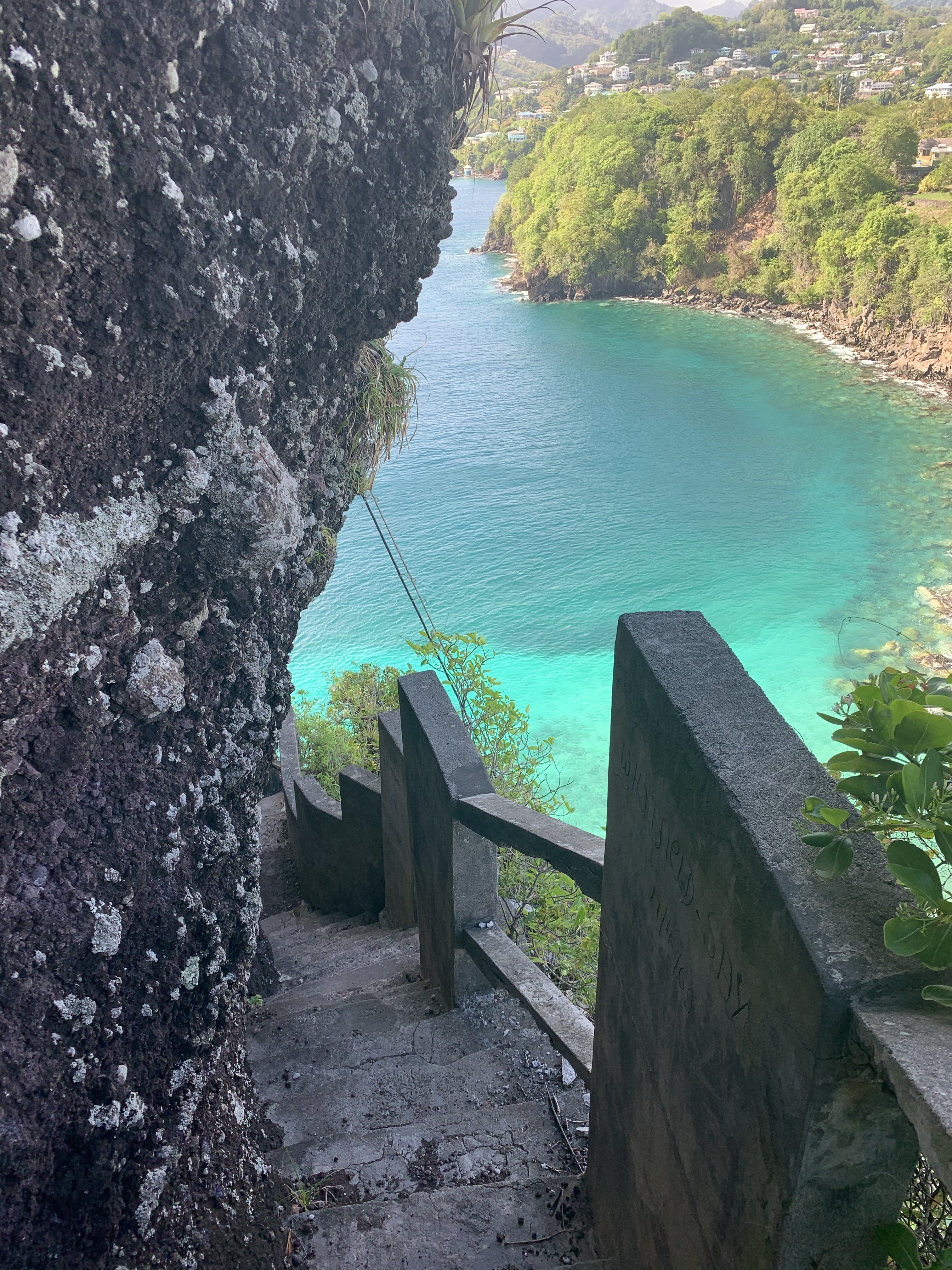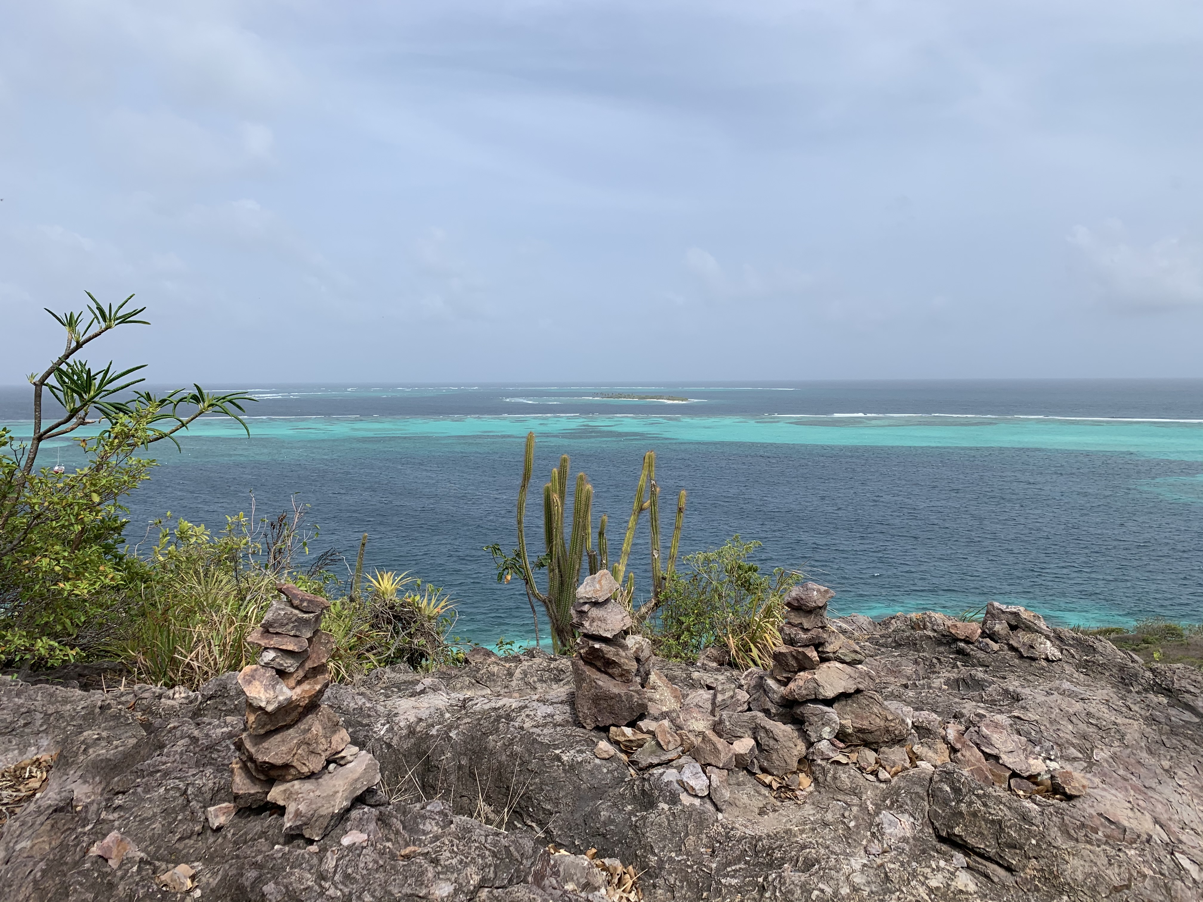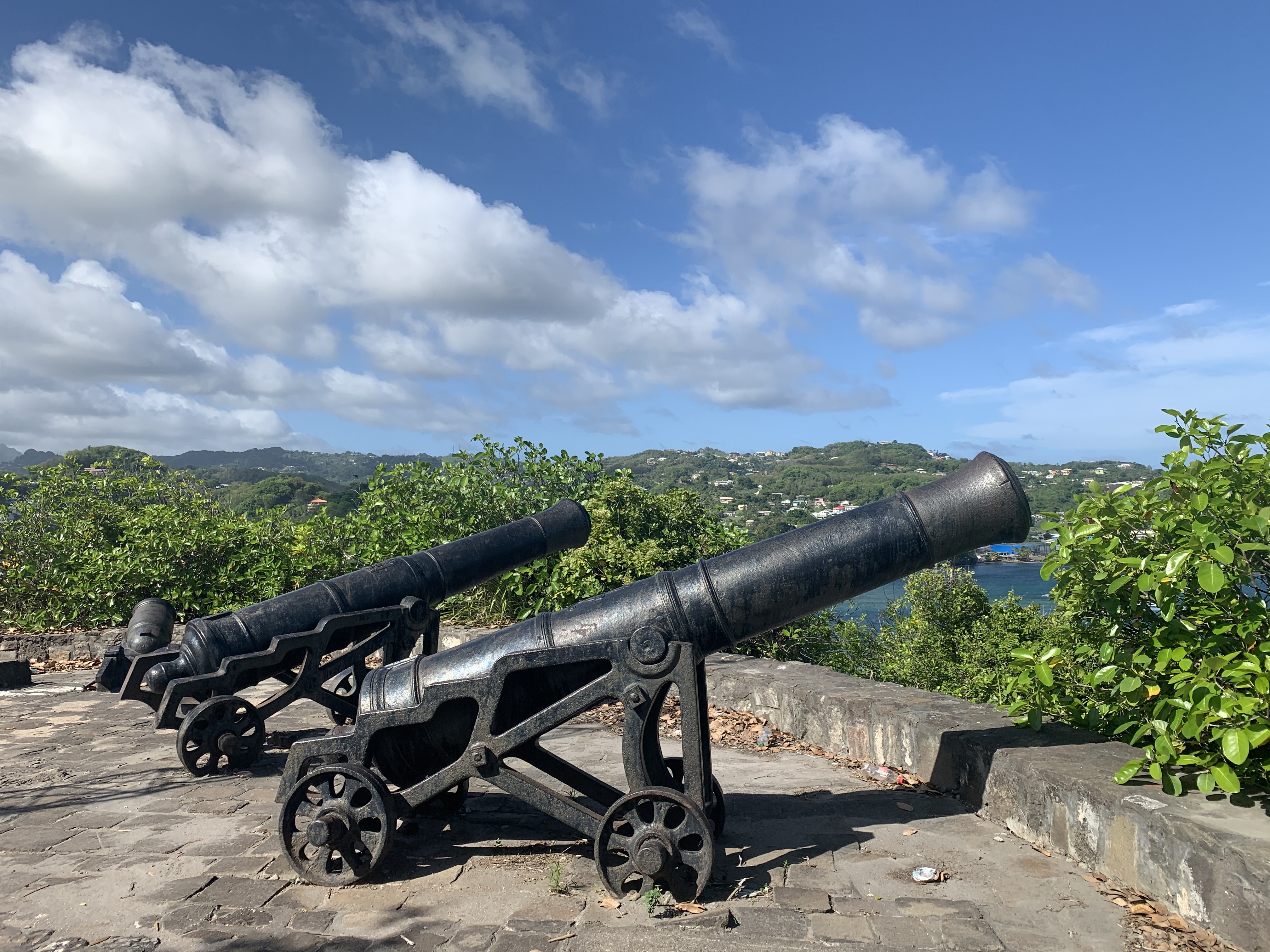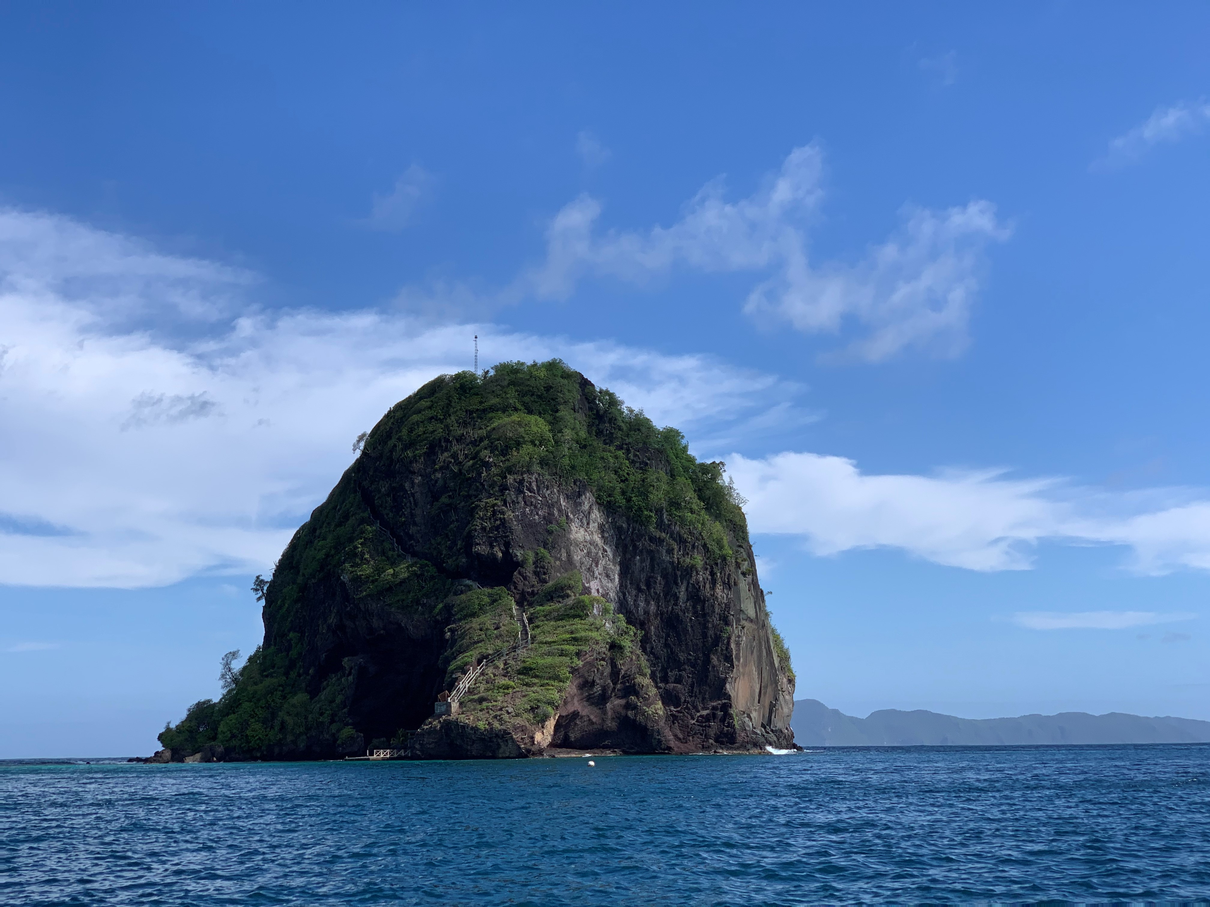 Bevor wir in Richtung Grenadinen aufbrechen schauen wir uns noch in der Blue Lagoon um – da gibt es nichts zu sehen – und fahren zum Fort Duvernette, eine Mini-Insel mit Felsen mit steilen Flanken drauf, auf den mal zu Kolonialzeiten ein paar Wahnsinnige Kanonen hinaufgeschafft haben.