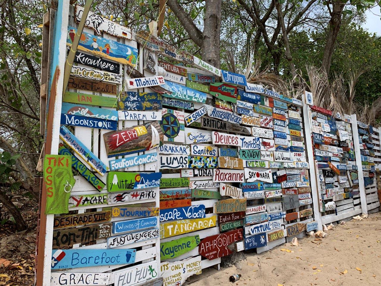 Paradise beach is one of the nicest beaches on Carriacou. Sailors love to hang out there and leave their mark by painting their boat names on a piece of wood.