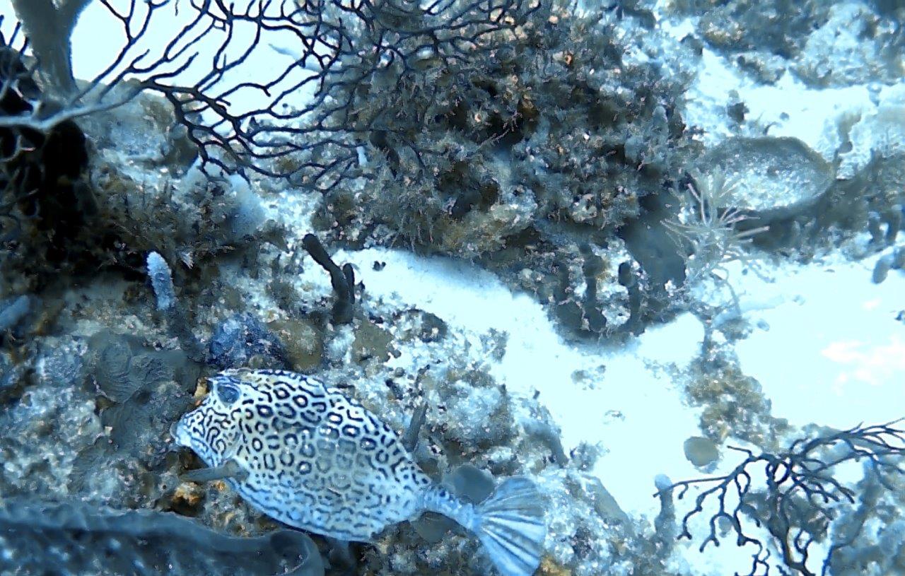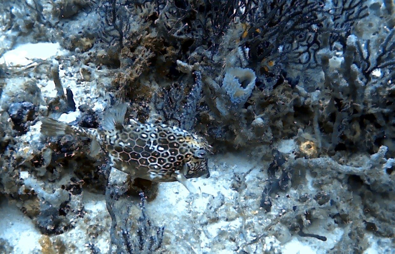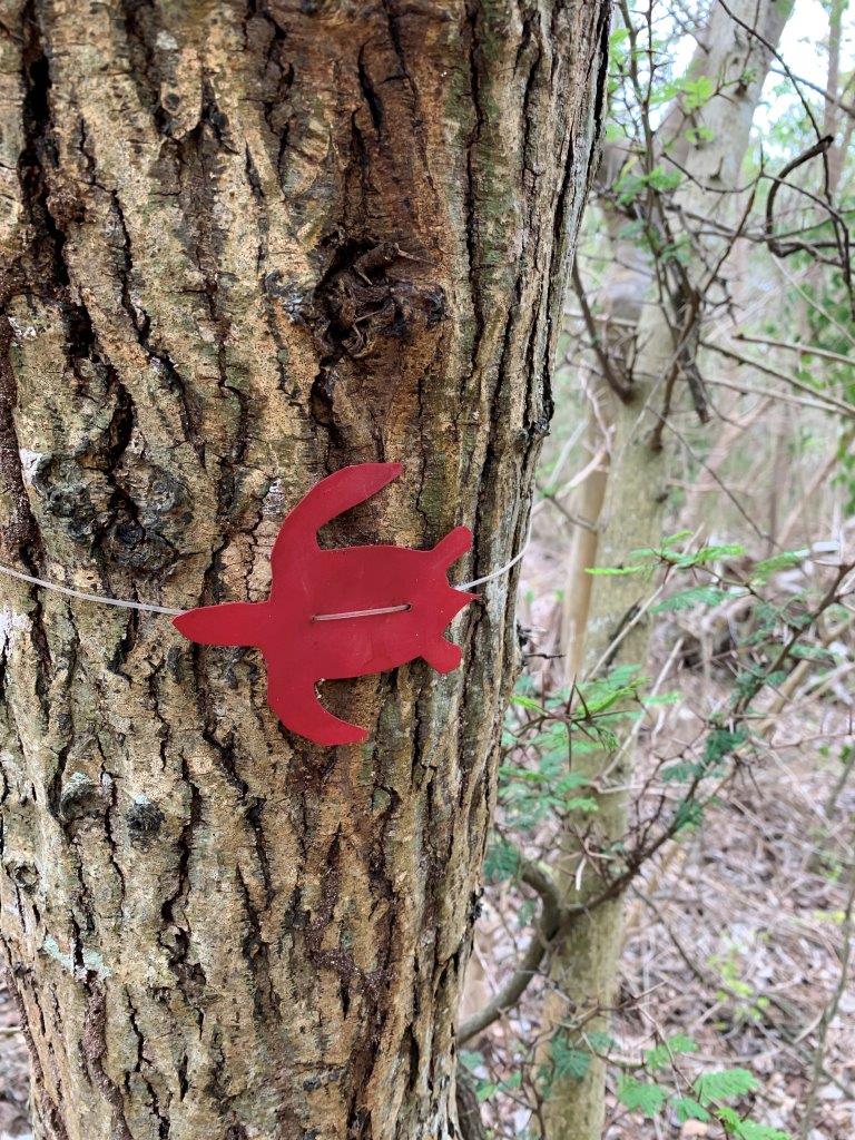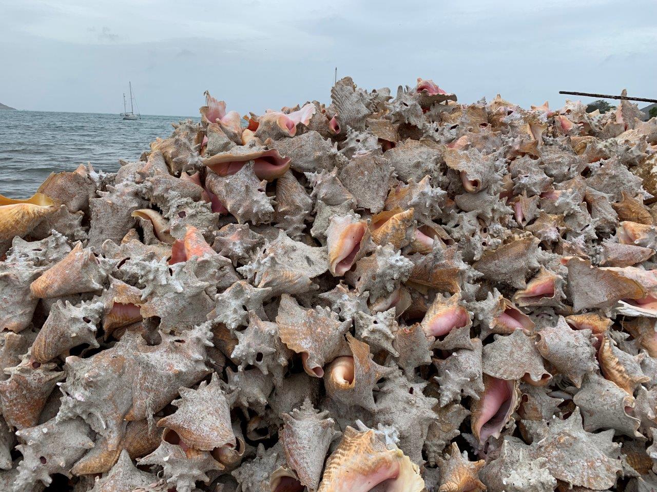 Exploring the island also means hiking up a hill and walking to the beach. This time she followed the turtle up the mountain and the conches to the sea. Interesting signposts.