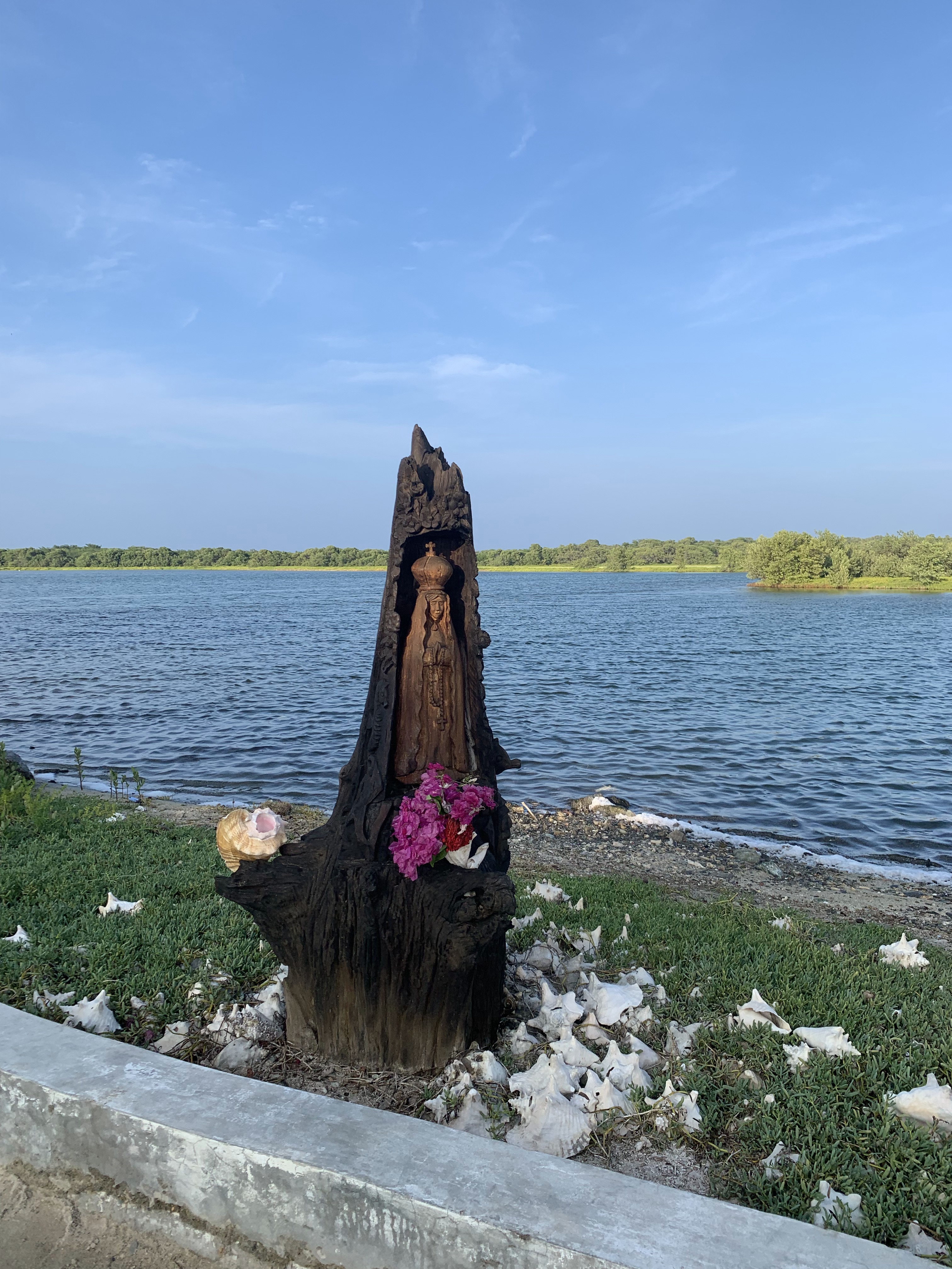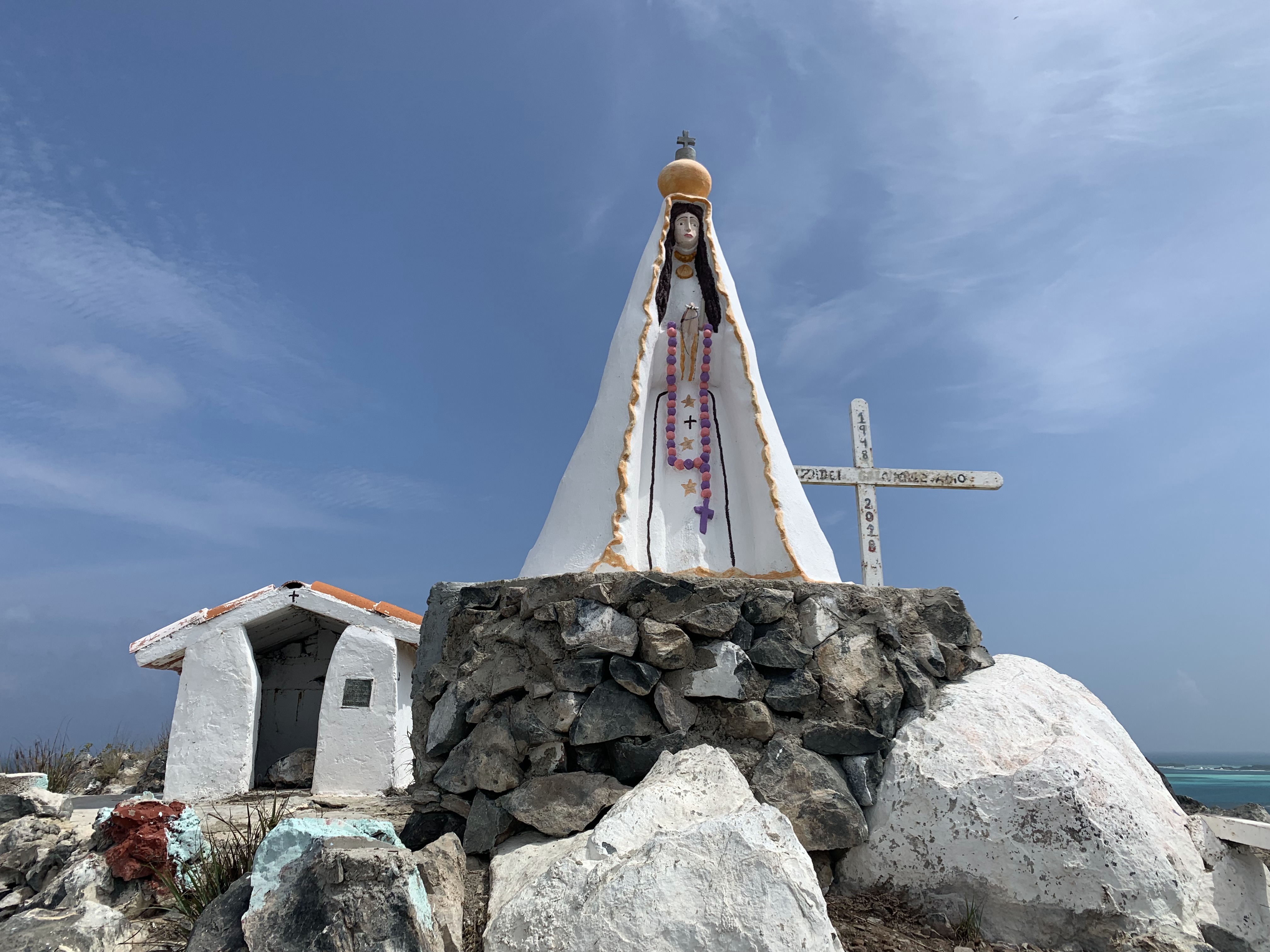 Wie in den Ländern in diesem Teil der Welt üblich spielt Religion eine große Rolle, insbesondere die Marienverehrung. So haben die Fischer in einer Kapelle direkt am Strand vor dem ihre Boote liegen (es gibt keinen Hafen) eine Marienstatue in einer Vitrine. Daneben gibt es auch auf einem der Hügel auf Los Roques eine Marienstatue und wir sehen auch auf zumindest einer der kleinen Inseln eine kleine Kapelle mit der Heiligen.
