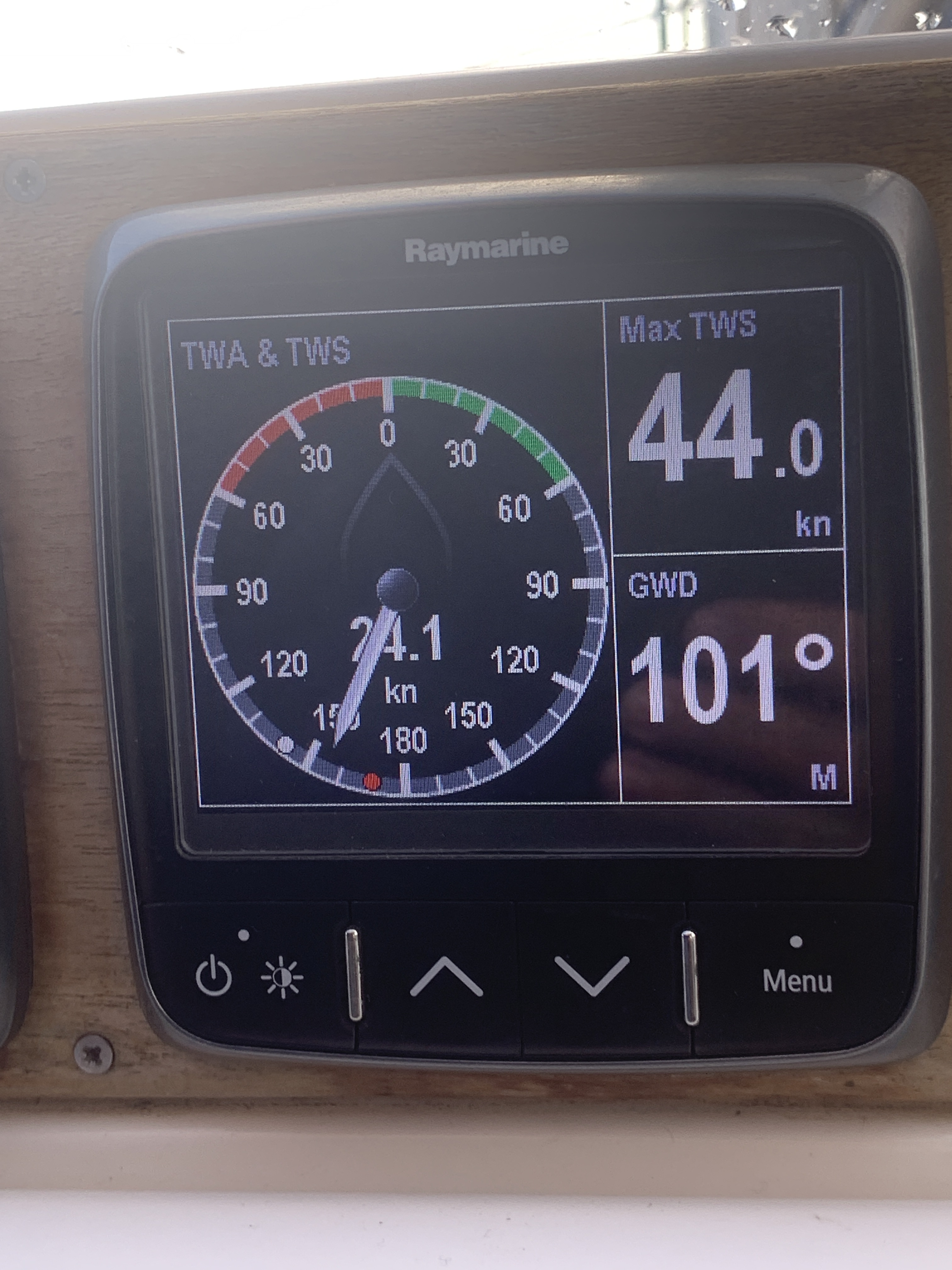 Die Puntas Gallinas passieren wir dann mit etwas mehr als dem empfohlenen Respektsabstand von 30 Seemeilen. Die Herausforderung hier: noch weiter draußen werden die Wellen dann auch wieder schlimmer, man muss also die richtige „Gasse“ finden. Wir denken wir haben da die Wettervorhersage gut gelesen, spüren die Gallinas nicht spezifisch und segeln auch vor der folgenden Küste zur richtigen Tageszeit um den Fallwinden zu entgehen. Nichtsdestotrotz haben wir gut Wind mit Böen gemessen bis 44 Knoten (ca 80 km/h; Windstärke 9; Sturm) und eine unangenehme kurze Welle (5-6s), mit einzelnen Wellen bis zu ca. 5m.