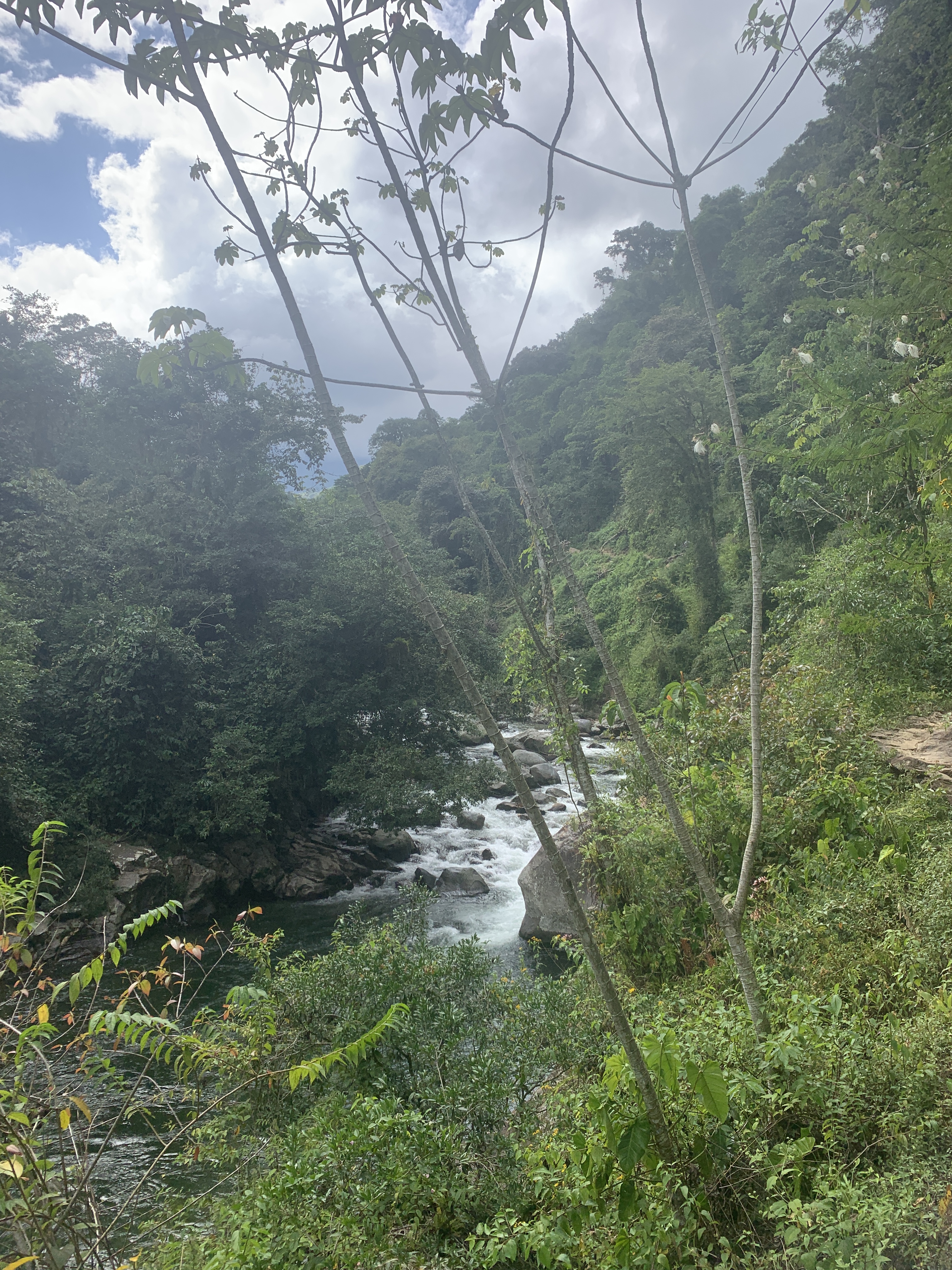 Wir machen uns früh morgens mit einem Jeep von Santa Marta aus auf in Richtung der Sierra Nevada. Zu Mittag kommen wir im letzten mit dem Auto erreichbaren Dorf an. Ab da geht es für uns zu Fuß weiter, und für sämtlichen „Nachschub“ auf Tragetieren. Nach dem Mittagessen stapfen wir also los, mit dem Ziel bis zum Abend das Camp 1 zu erreichen, bereits tief im Dschungel. Es geht gleich mal ordentlich den Berg rauf, auch wenn wir insgesamt über die 4 Tage, viel auf und ab gehen. Es gilt nicht nur den einen Berg zu erklimmen, sondern eine bergige Dschungelregion zu durchqueren, auch wenn es hin zur Stadt, dann schon eindeutig rauf geht.