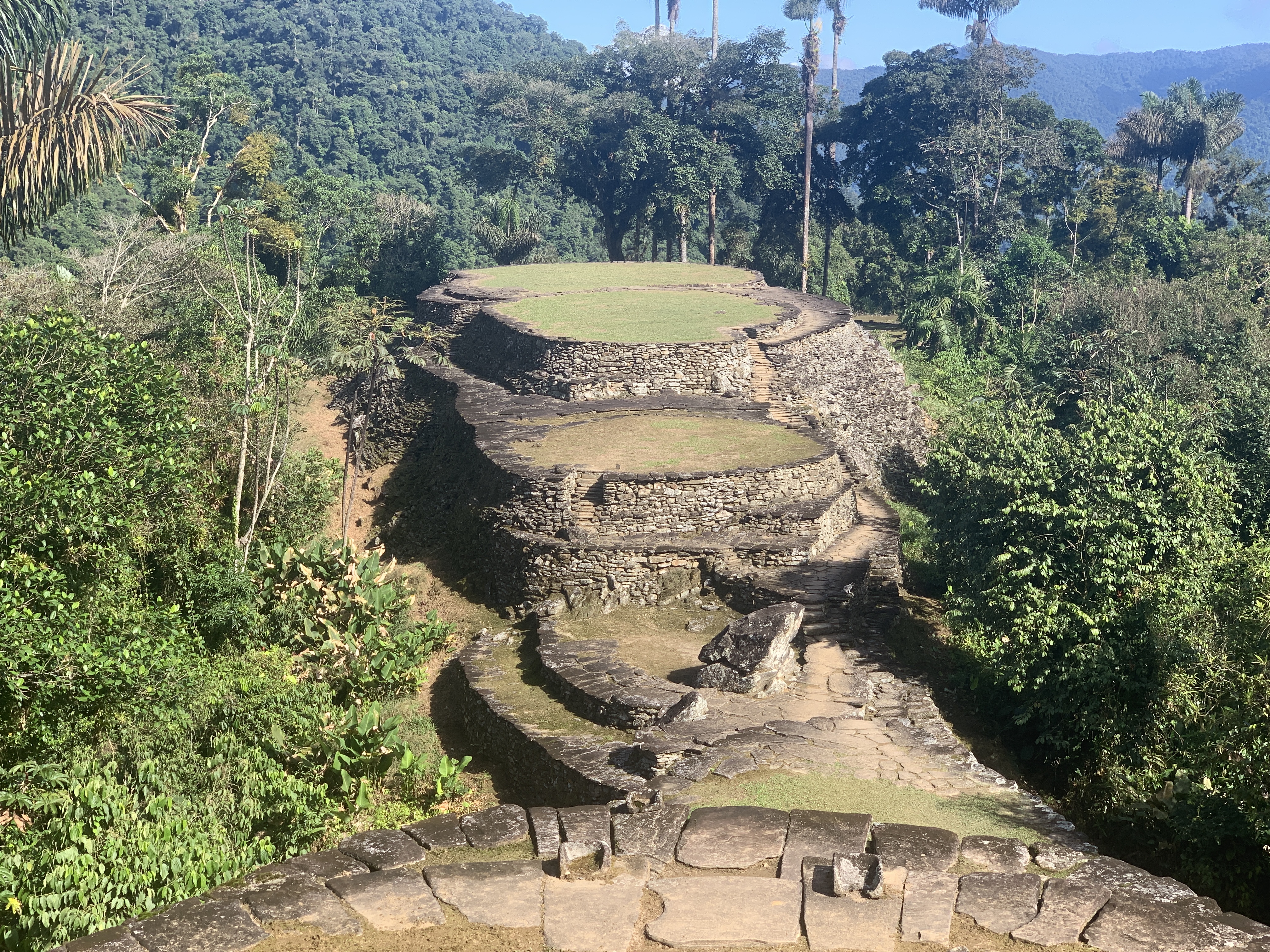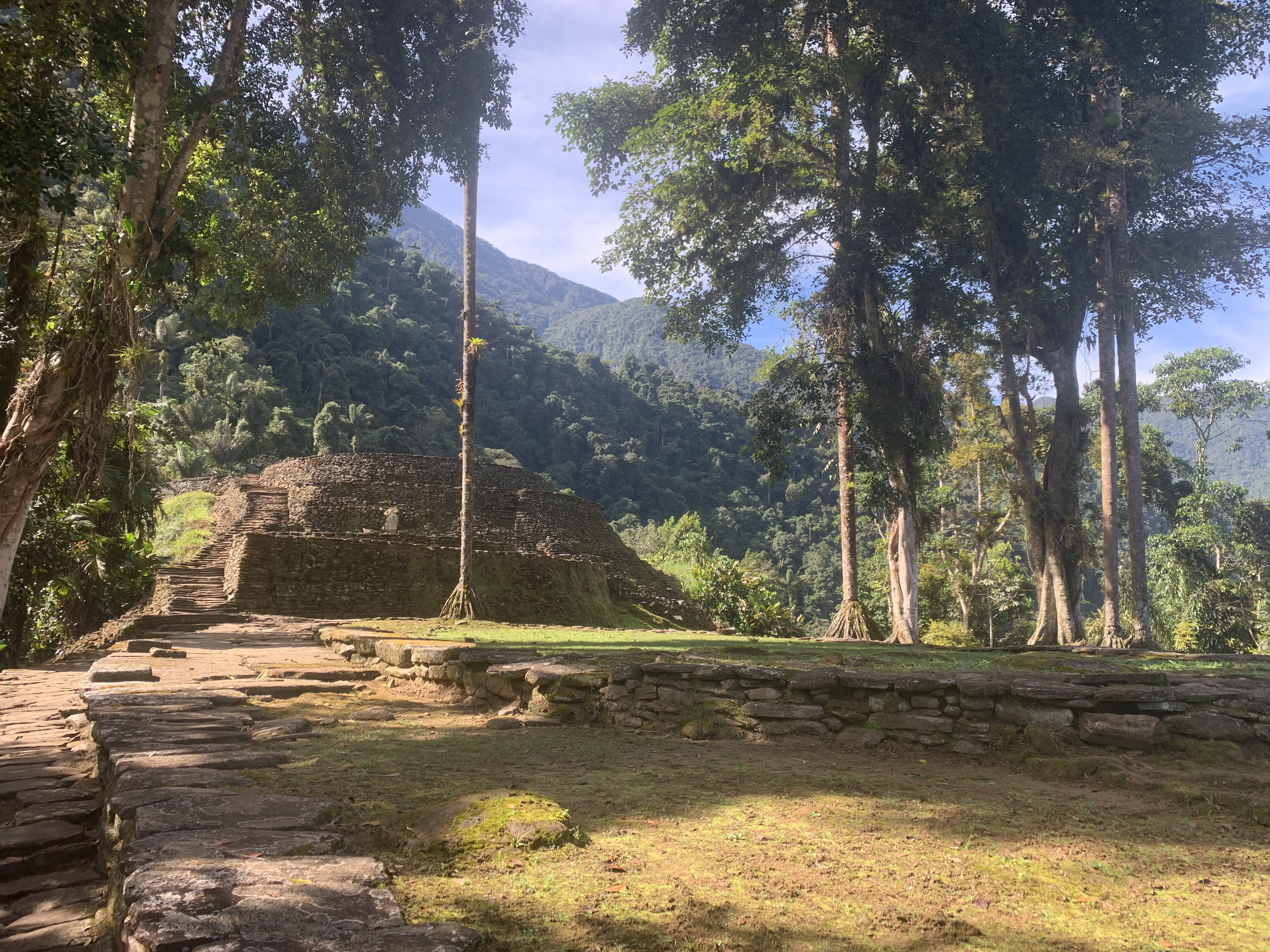 Aber kurz darauf starten wir unser erstes Projekt: ein vier Tages Trek zur „Ciudad Perdida“, der „verlorenen Stadt“ und wieder zurück. Es handelt sich um eine Ruinenstadt, grob ähnlich dem viel bekannteren Machu Picchu der Inkas, auch wenn die Ciudad Perdida grob 650 Jahre früher gegründet wurde. Bevölkert wurde diese Stadt in den Bergen der heutigen Sierra Nevada de Santa Marta von den Tayronas, bis die Spanier Krankheiten brachten, die die Tayrona zur Aufgabe der Stadt zwangen. Und dies obwohl die Spanier die Stadt nie betreten hatten, aber es gab gemeinsamen Handel, der an der Küste stattfand. Insgesamt ist die Geschichte der Stadt und der Tayrona wahnsinnig faszinierend, vielschichtig und damit aber auch viel zu komplex um sie in einem kurzen Blogbeitrag relevant wiederzugeben. Hinzu kommt noch die Geschichte der Entdeckung (erst 1972) und die Komplexität der jüngeren Geschichte Kolumbiens, die auch im direkten Zusammenhang mit dem Zugang zur Stadt, der lokalen wirtschaftlichen sowie der Sicherheits-Situation in der Region zu betrachten sind. Nichtsdestotrotz hier der Versuch ein grobe Idee hierzu zu geben.