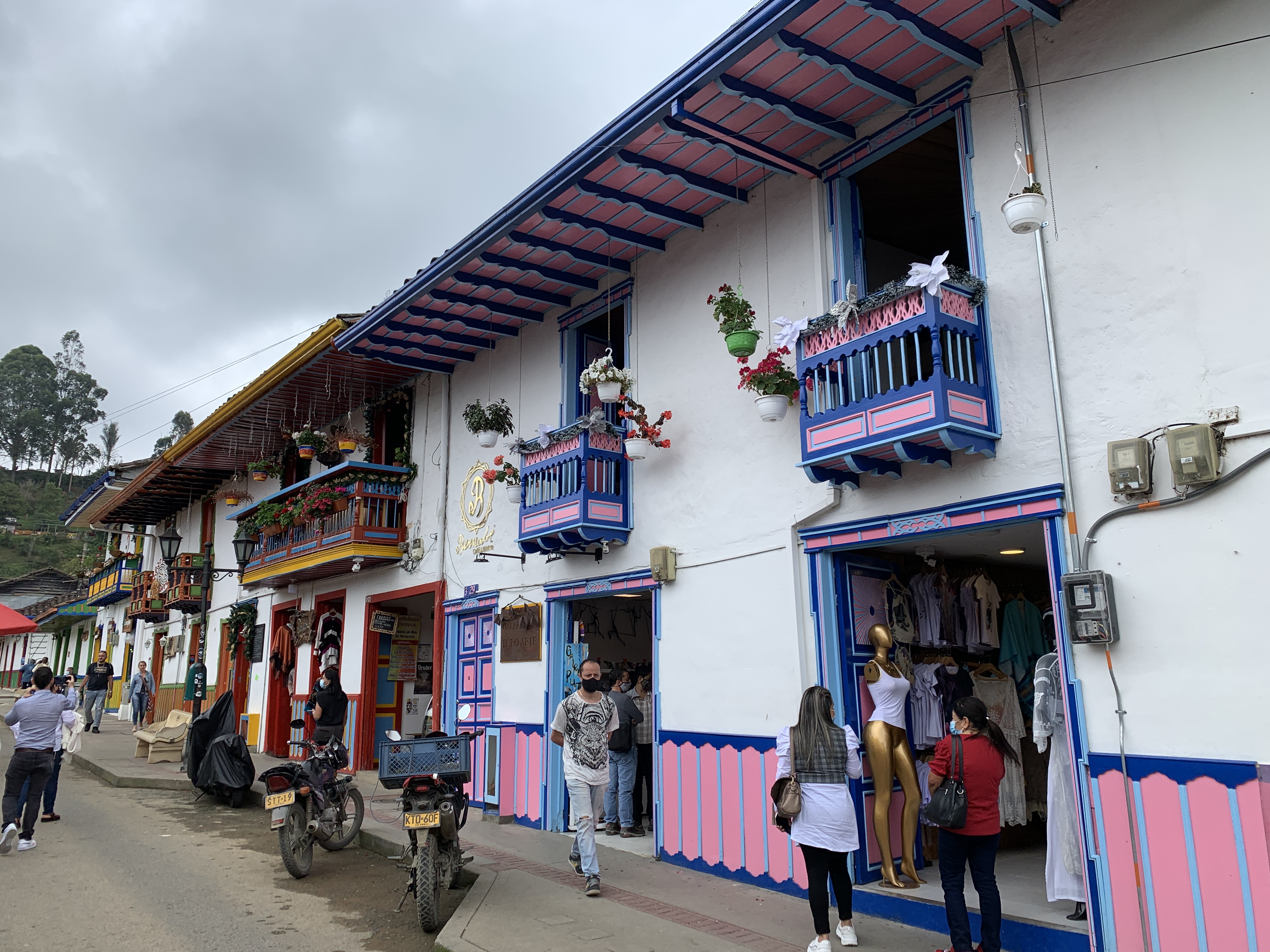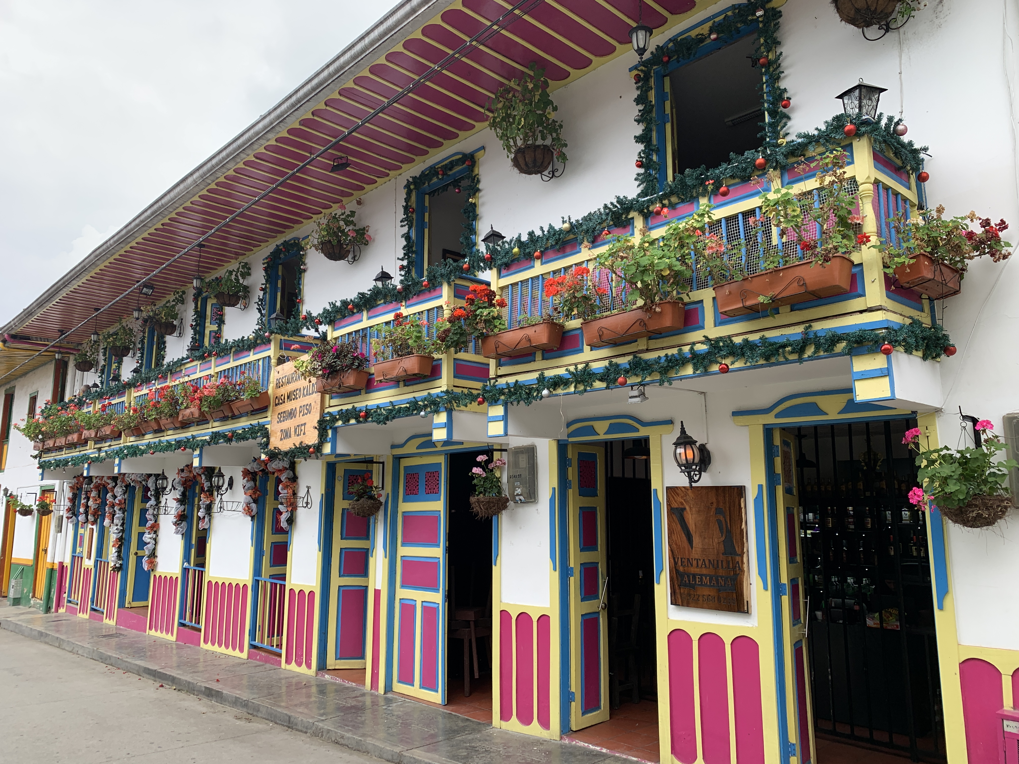 Reisen in Kolumbien ist nicht nur super einfach sondern auch super günstig. Überlandbusse fahren regelmäßig so gut wie alle relevanten Strecken, und selbst Inlandsflüge sind kaum teurer als die Busse, und auf Grund der doch recht weiten Distanzen auch beliebt. Wir fliegen also zuerst nach Pereira im Süden des Landes um gleich nach Salento weiter zu fahren. Salento ist ein kleines Dorf im Herzen der Zona Cafetera, dem Kaffeeanbaugebiet Kolumbiens. Früher war es auch eine relevanter „Transport Hub“, auf der Strecke von Medellin nach Bogota. Heutzutage führt die Verbindungsstraße aber um die Berge rum und Salento lebt mal abgesehen vom Kaffee auch vom Tourismus.