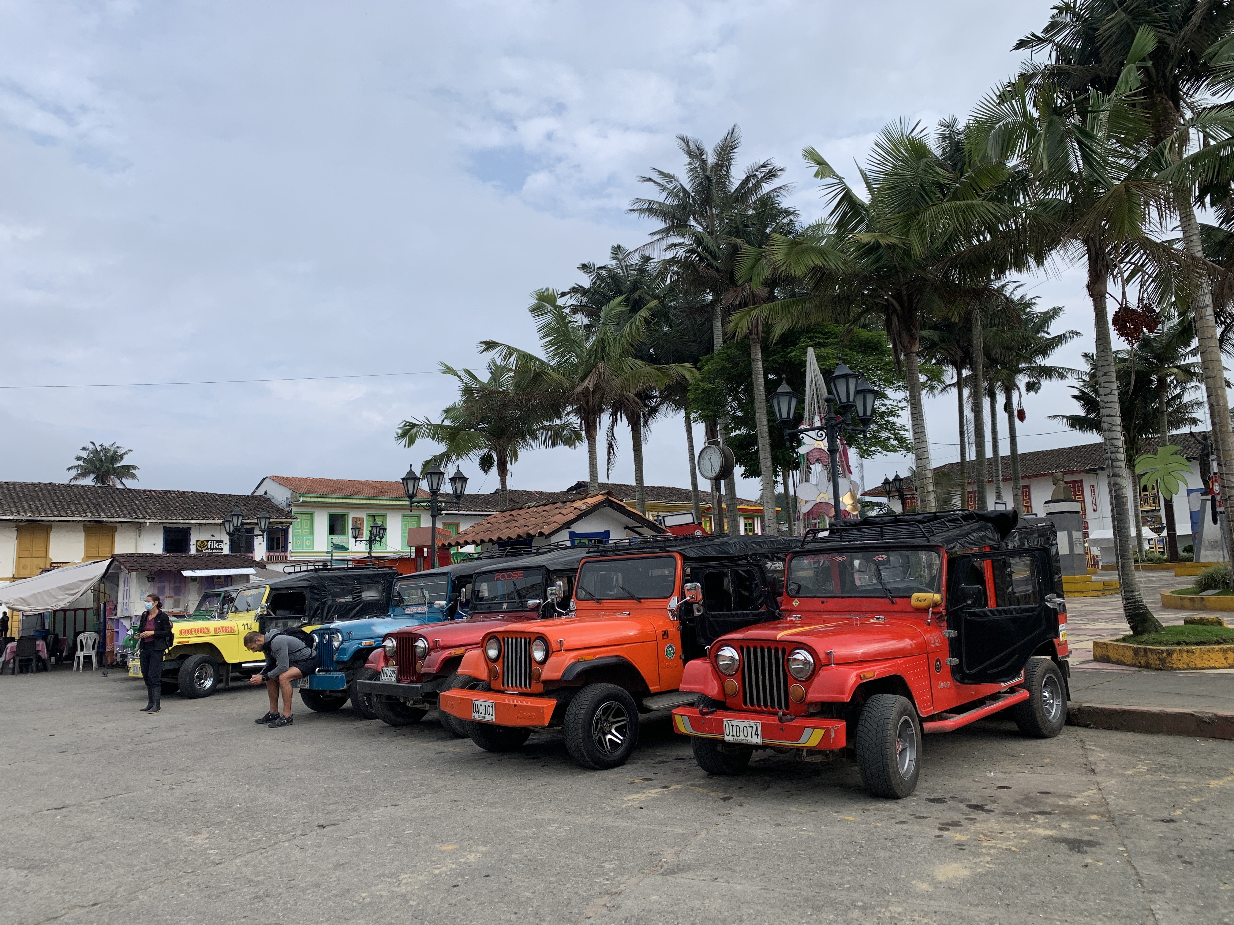 Die Willys Jeeps sind die Ikone und das Transportmittel schlechthin in der Region, sie werden sowohl als Taxi als auch als „Linienbus“ verwendet. Da ist es auch gar nicht erforderlich, dass alle Fahrgäste einen Sitzplatz haben, hinten drauf stehen ist auch ok, doof nur wenn es regnet. So fahren auch wir per Taxi ins Cocora Valley. Ein Tal neben Salento, das für die höchste Palmenart, die Wachspalme, bekannt ist. Das Tal ist eine Art Disney Land, primär von nationalen Touristen genutzt. Wir entgehen dem Trubel in dem wir in den Dschungel zum Wandern aufbrechen. Wir überqueren einen Fluß mehrfach über mehr oder weniger stabile Brücken, schauen uns die imposanten Wachspalmen an, und erreichen das Kolibri Haus mitten im Dschungel. Am Rückweg geht es noch durch den „Nebelwald“ und ja, der Nebel ist auch wirklich da.