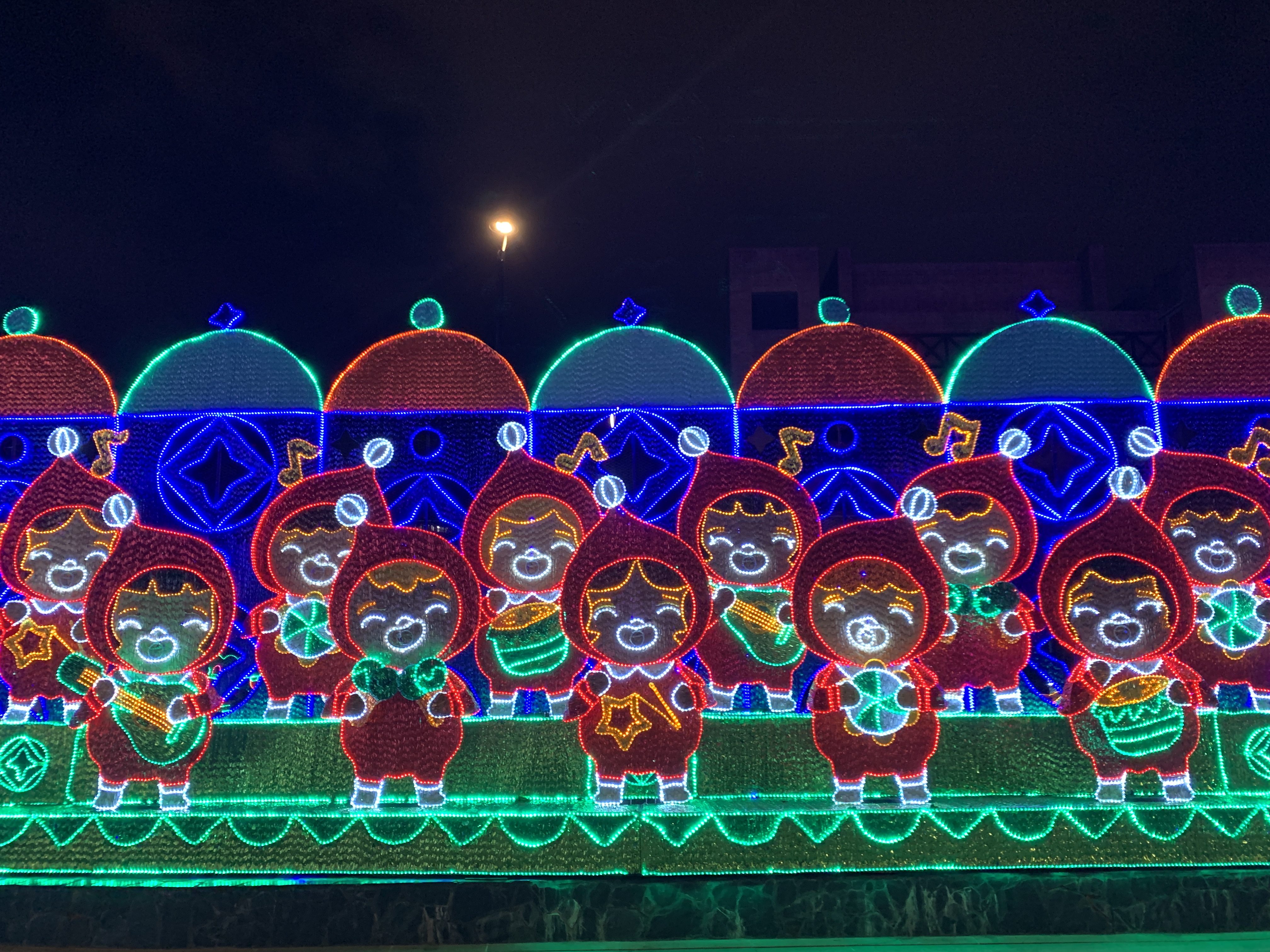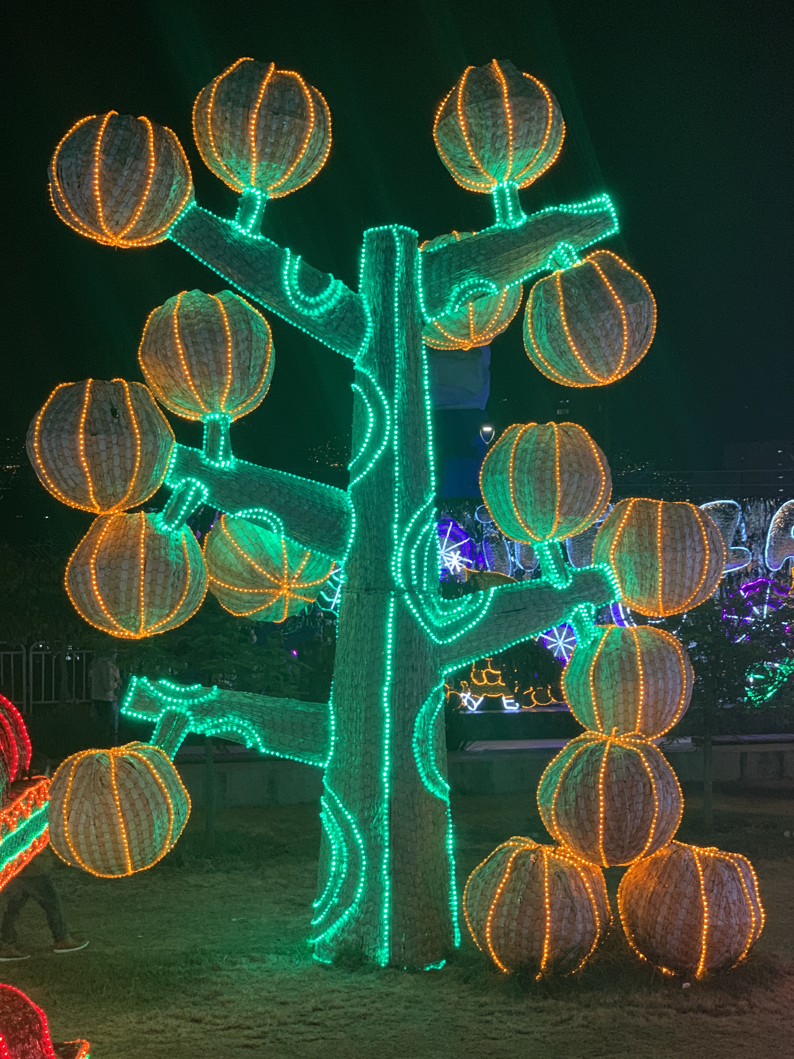 Städtische Weihnachtsbeleuchtung ist in Kolumbien eine riesen Sache. Jedes Jahr gibt es einen Wettbewerb, welche Stadt denn nicht die schönsten und größten … hat. Medellin gewinnt diesen Wettkampf regelmäßig, so wollen auch wir diese besichtigen. Es ist wie eine Art hiesige Form eines Weihnachtsmarktes. Es gibt den Bereich mit den Lichtern, die alles mögliche darstellen. Daneben gibt es auch den Bereich mit einem Markt, inklusive Fressmeile und zu erwerbender Handwerkskunst. Ein für uns einmaliges Schauspiel.