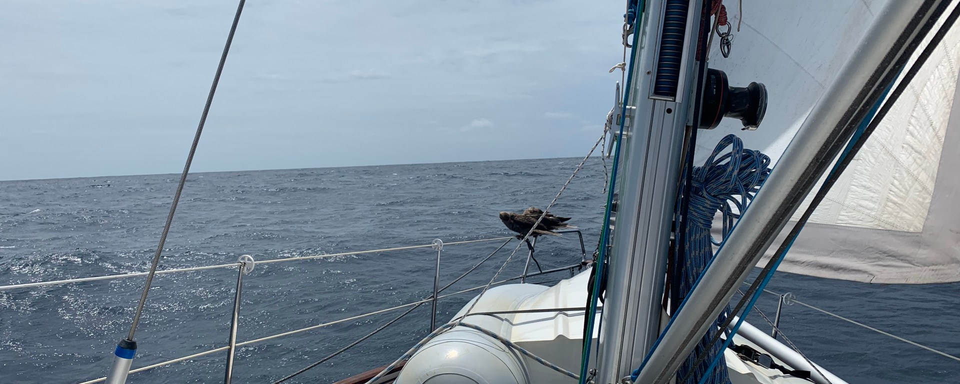 2300 A bird decides to rest for some hours on the currently unused spinnaker pole