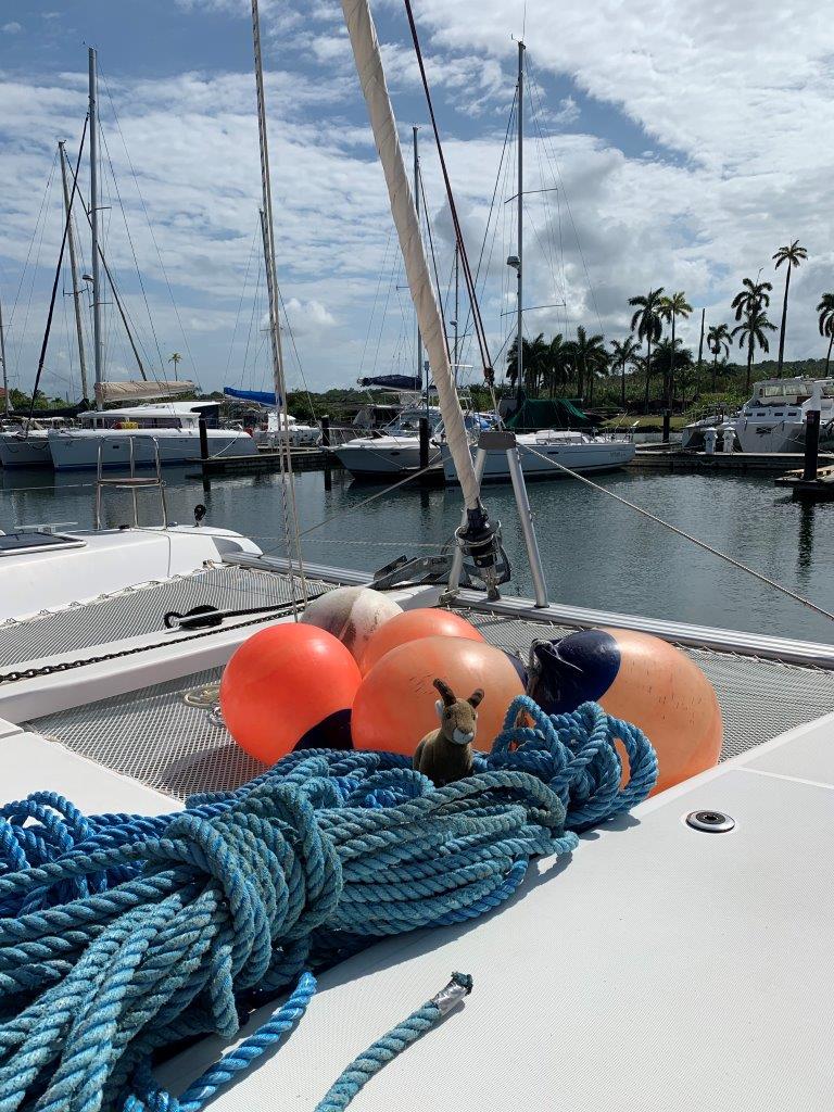 And finally, she got her ticket to cross the canal. She read the story how the canal was built (The path between the Seas by David McCullough) and first went with a friend’s catamaran through the canal, before embarking on the crossing herself. The trip through the canal took 2 days and on Lake Gatun she attached to a mooring ball that was slightly oversized.