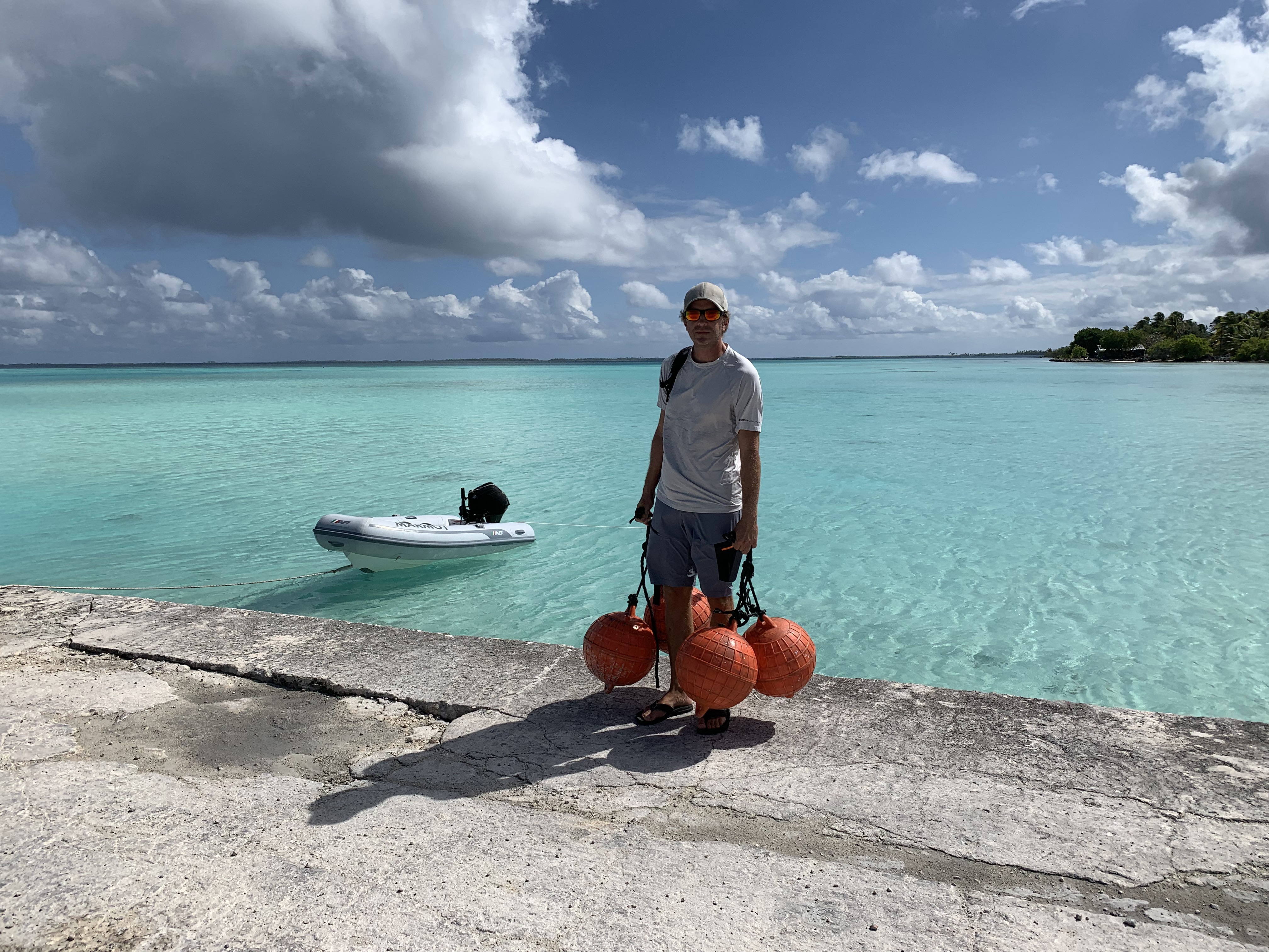 Als Bojen verwenden wir hierzu lokal organisierte Perlfarm Bojen. Die sind Robust und haben auch im Unterschied zu Fendern kein Problem falls sie untergehen / unter Wasser rumhängen (Fender werden dabei eingedrückt, ggf das Ventil beschädigt, etc.).