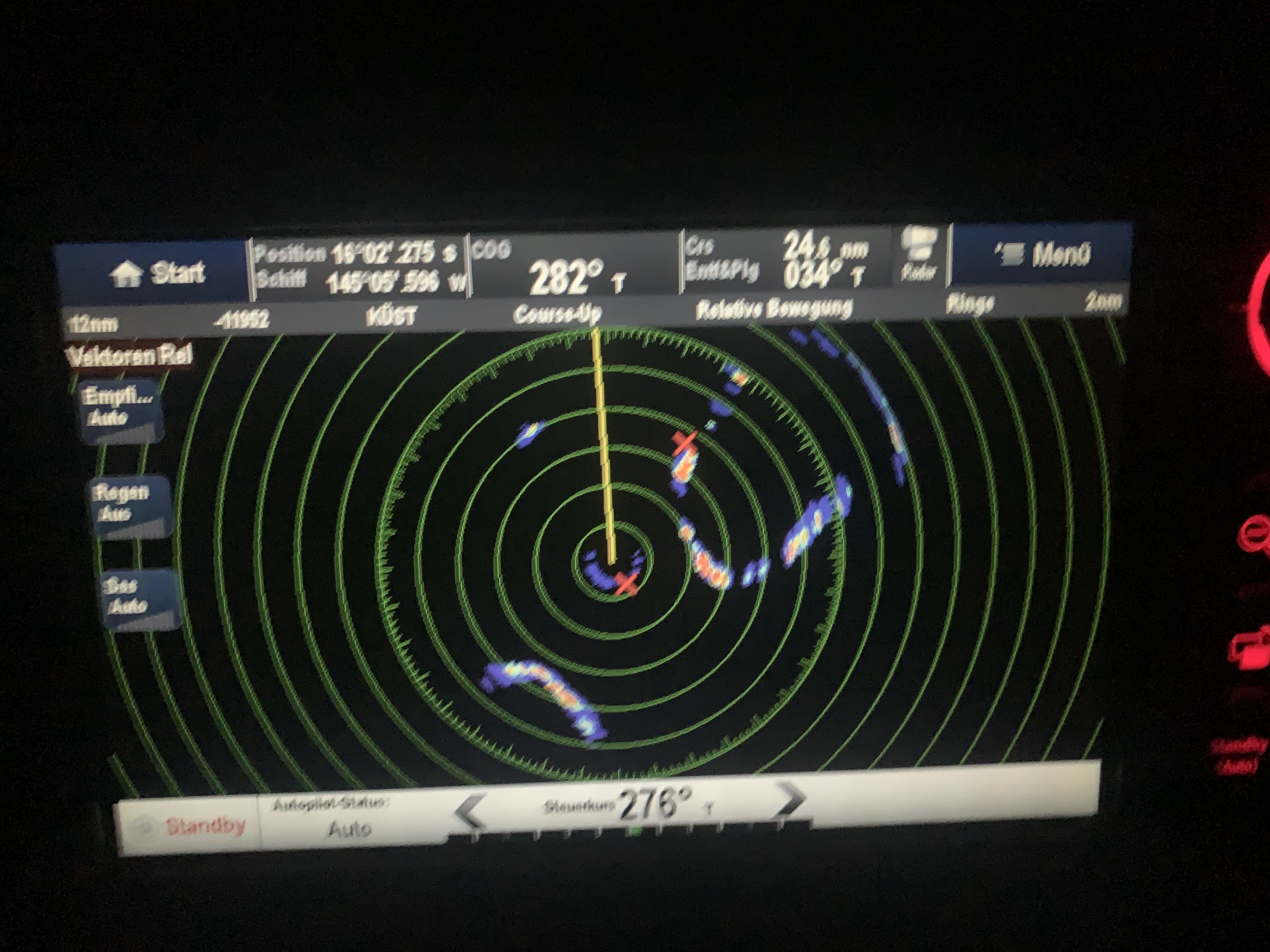 Zum einen muss man aber erst mal wissen wo genau die Atolle sind. Durch die sehr niedrige Landmasse sind sie von der Ferne nur sehr schwer auszumachen. Obendrein sind die Seekarten, egal ob auf Papier oder elektronisch für dieses Gebiet nicht zu 100% zuverlässig und genau. Insofern kommt da als erstes das Radar intensiver dran. Denn dieses kann das Land, aber auch insbesondere, die sich davor brechenden Wellen ganz gut erkennen, wenn man es richtig einstellt.