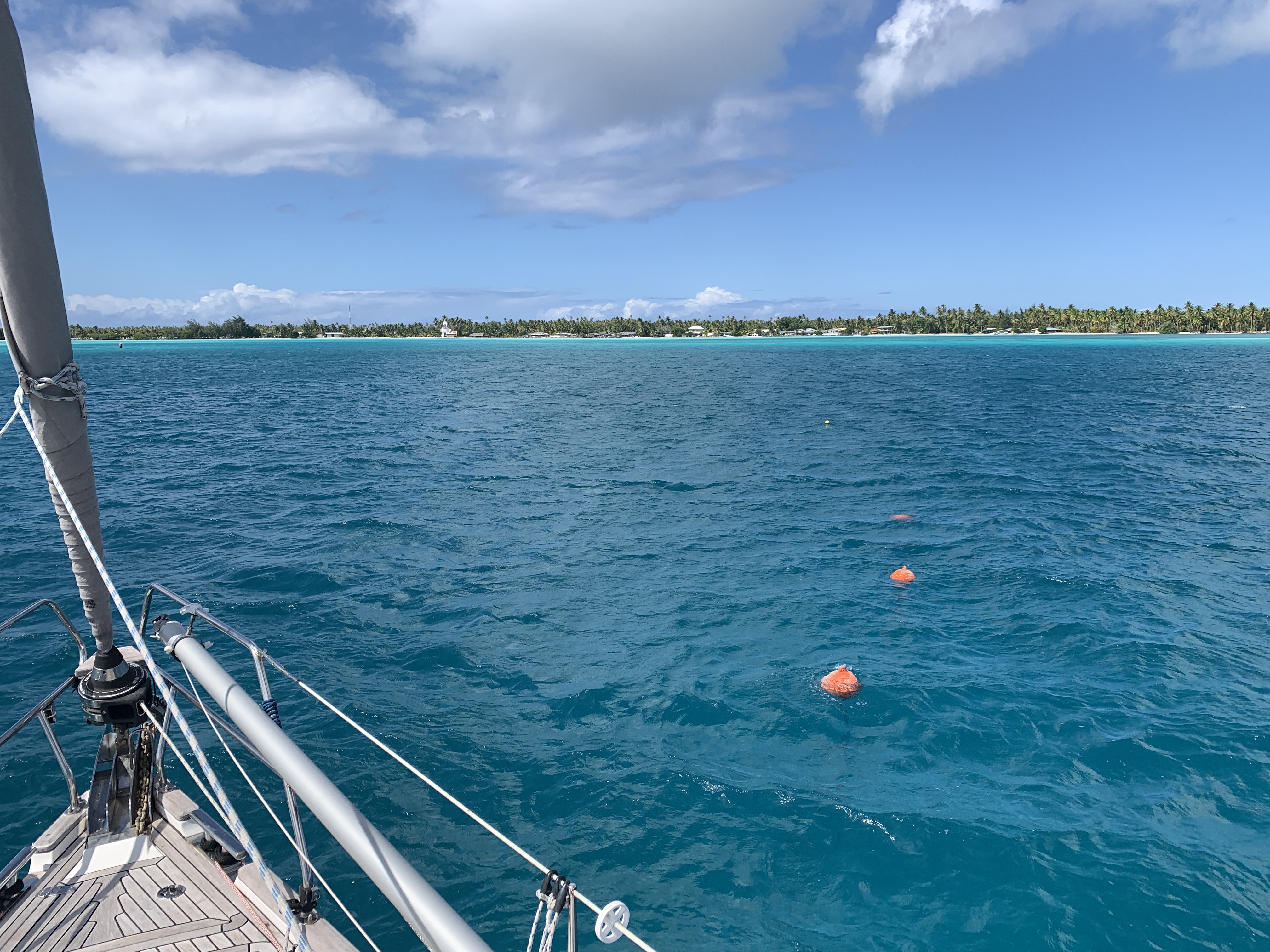 Eine kleine weitere Herausforderung in den Pässen und in den Lagunen sind dann die Korallen, die bekanntlich kontinuierlich wachsen, und daher auch in keiner Seekarte abgebildet sind. Hier muss auch wieder die „Eyeball Navigation“ herhalten. Wir haben das Prinzip hier im Blog mal im Zuge unseres Los Roques Abenteuers erklärt. Darüber hinaus nutzen wir hier die Navigation auf Basis von Satellitenbildern. Da sieht man auch nicht jeden Korallenkopf, aber die sind von der Positionierung her zumindest recht genau, und man sieht recht viel an Hand von Wasserfarbe, wo sich die Wellen brechen, etc. Dazu kommt dann schon auch mal der Laptop zusätzlich zum Plotter zum Navigieren ins Cockpit.