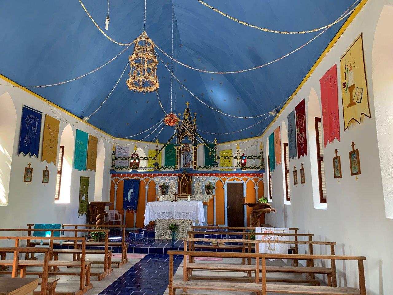 Or the buildings she found on the island? See the ornament in the church made out of sea shells?