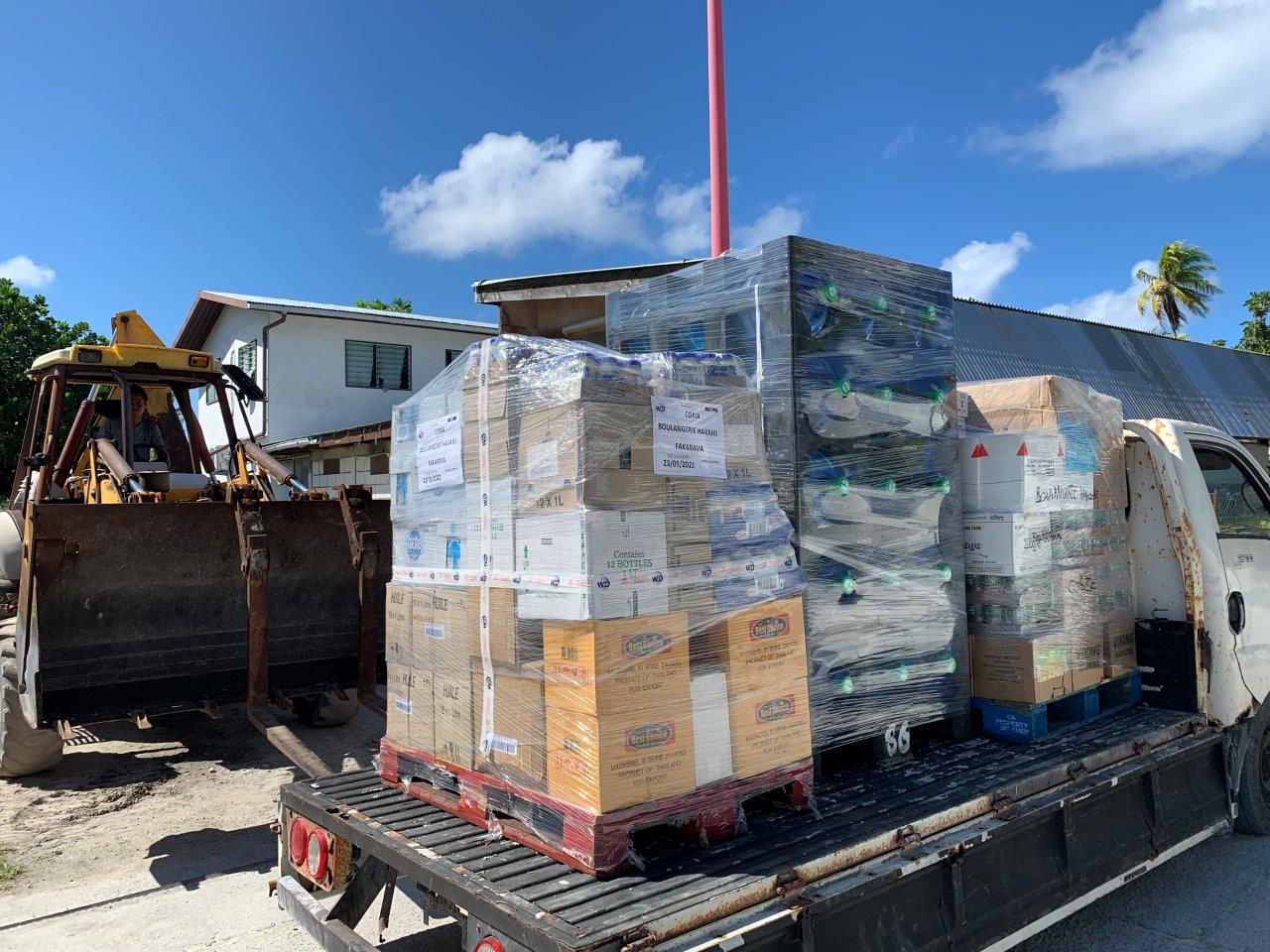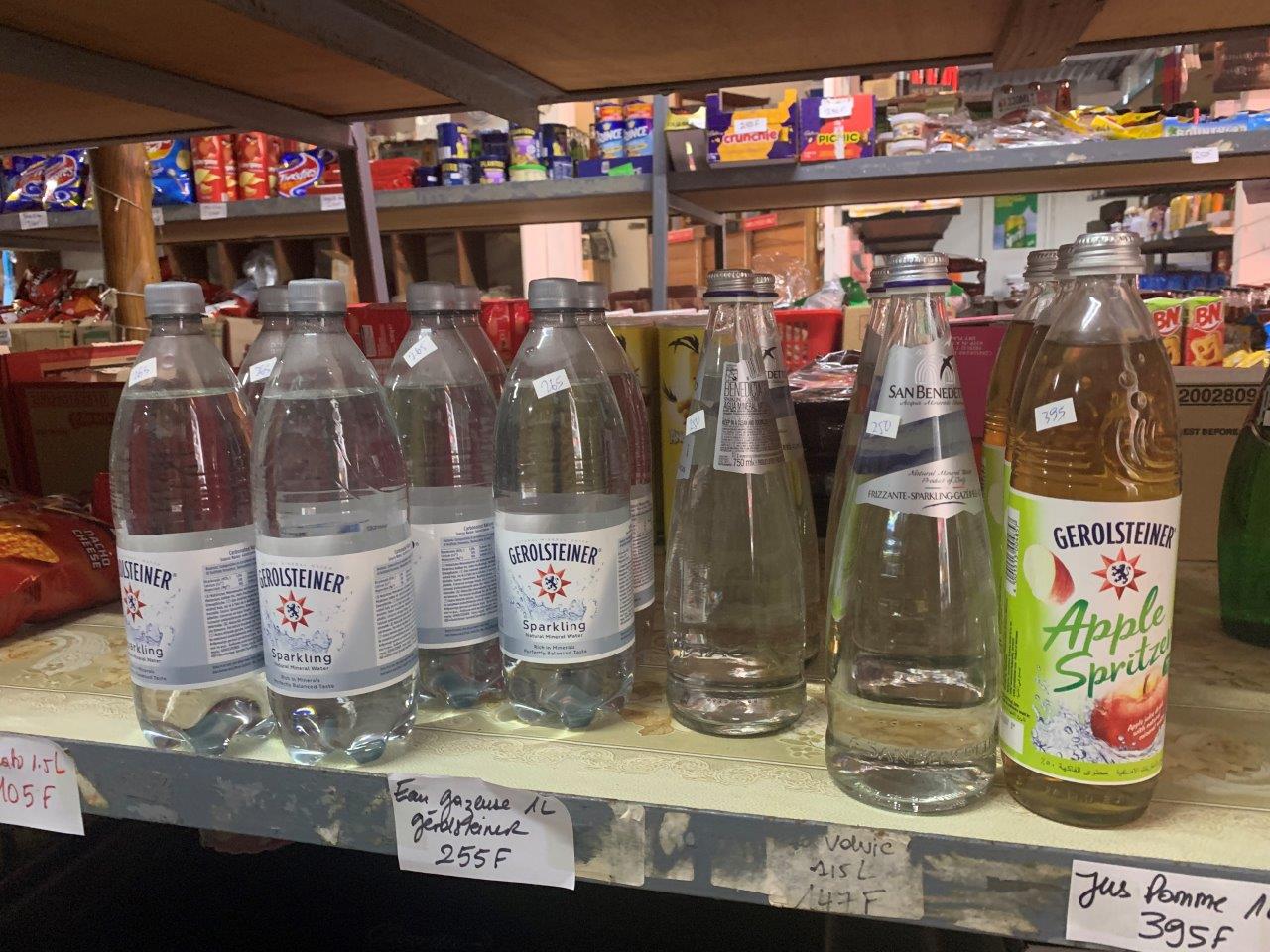 Or provisioning? Not a lot can grow on this sandy atoll. So everyone is running to the dock when the supply ship arrives. Shops have finally fresh fruits and vegetables again. Little Ibex even found some water and apple juice from back home!!