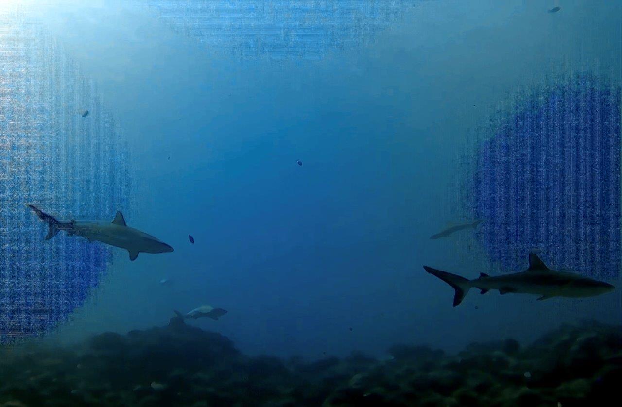 And then there is the underwater world. Little Ibex has never ever seen so many reef sharks before. Hundreds of them are waiting in the pass to push the fish through the small opening in the atoll. Very hard to capure on pictures.