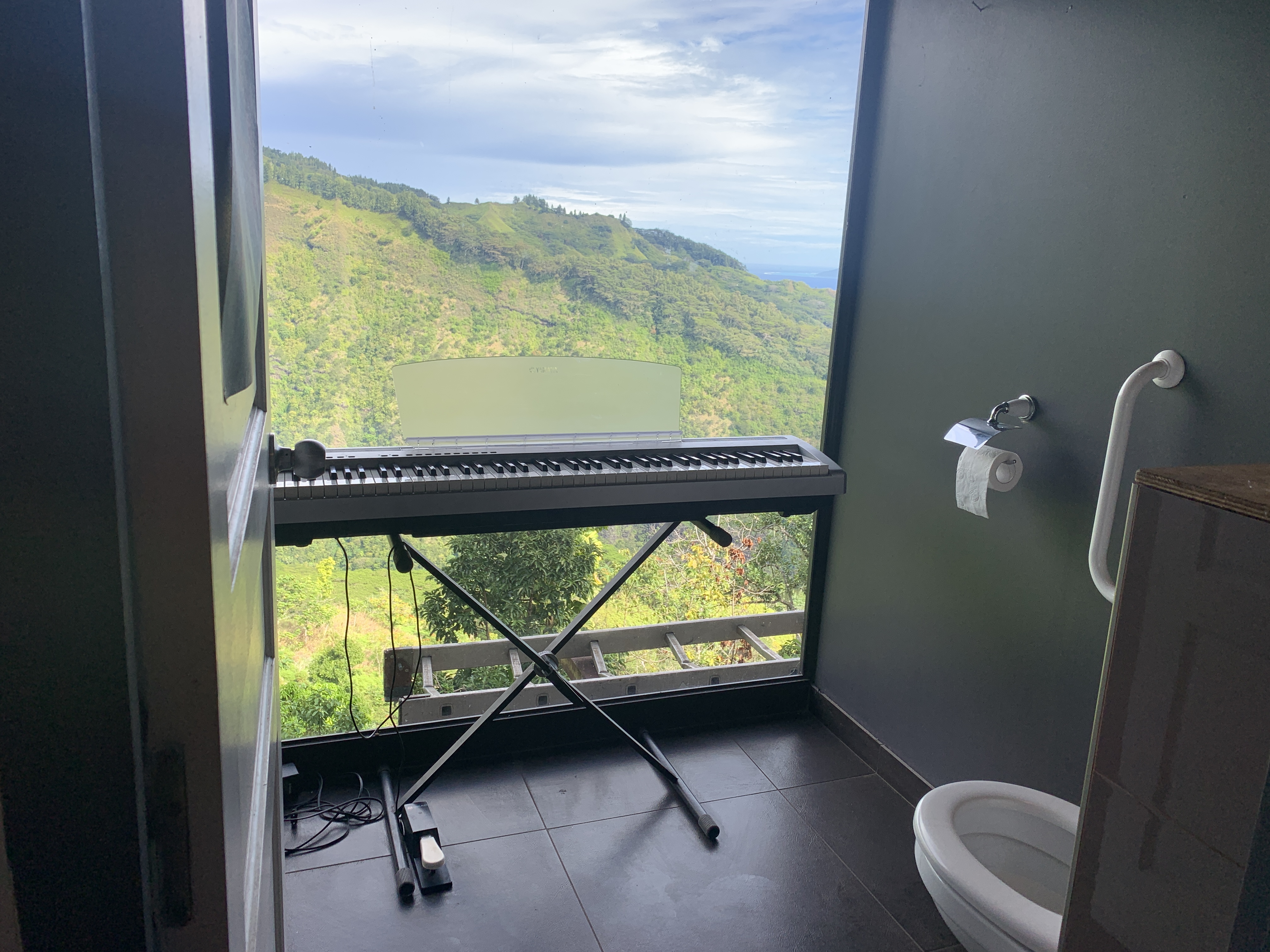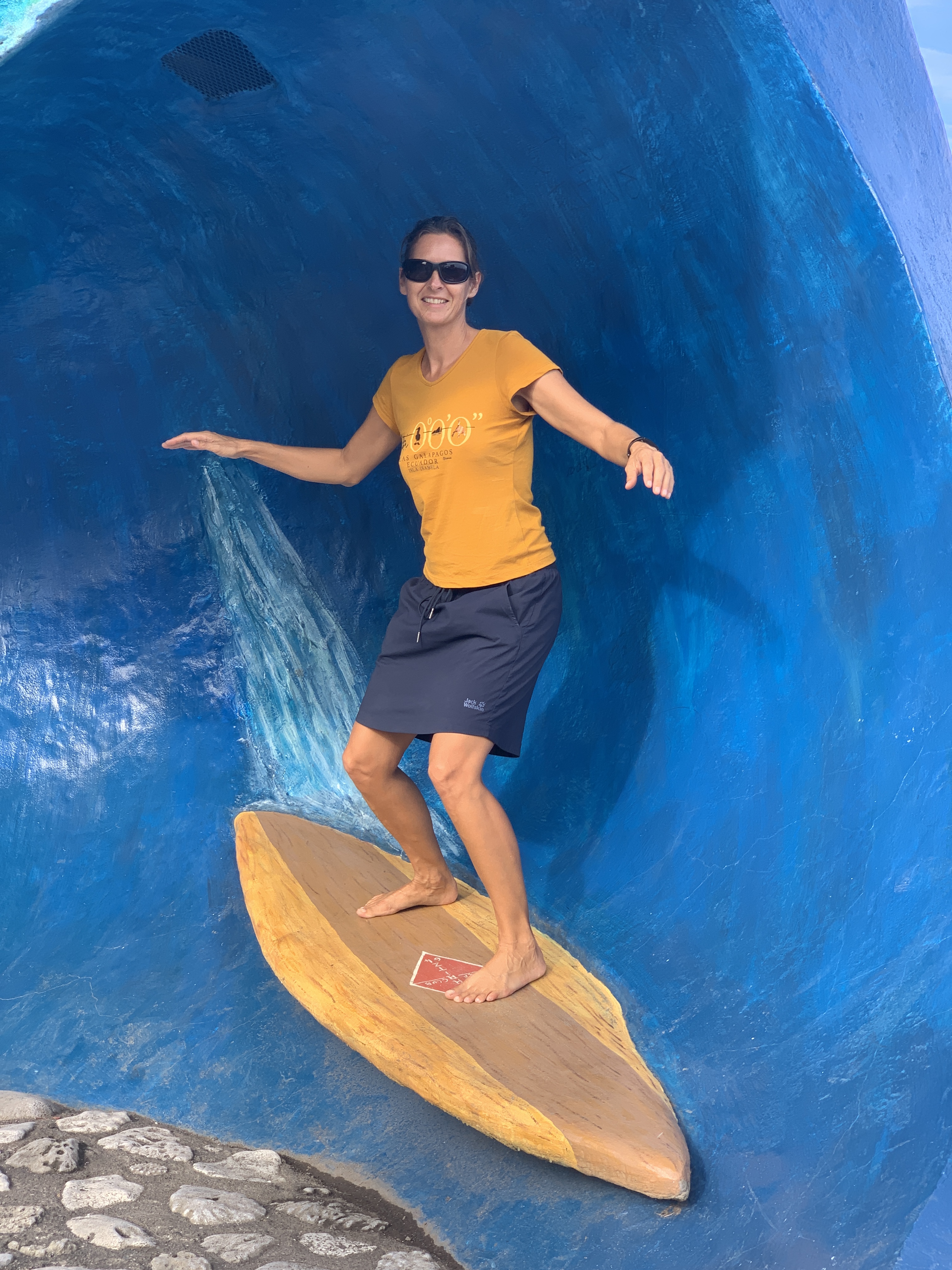 Per Mietwagen umrunden wir die Insel, fahren in die Berge und gehen ein bisschen Wandern. Dabei treffen wir auch auf ein Piano am Klo und die Möglichkeit zum Trockensurfen.