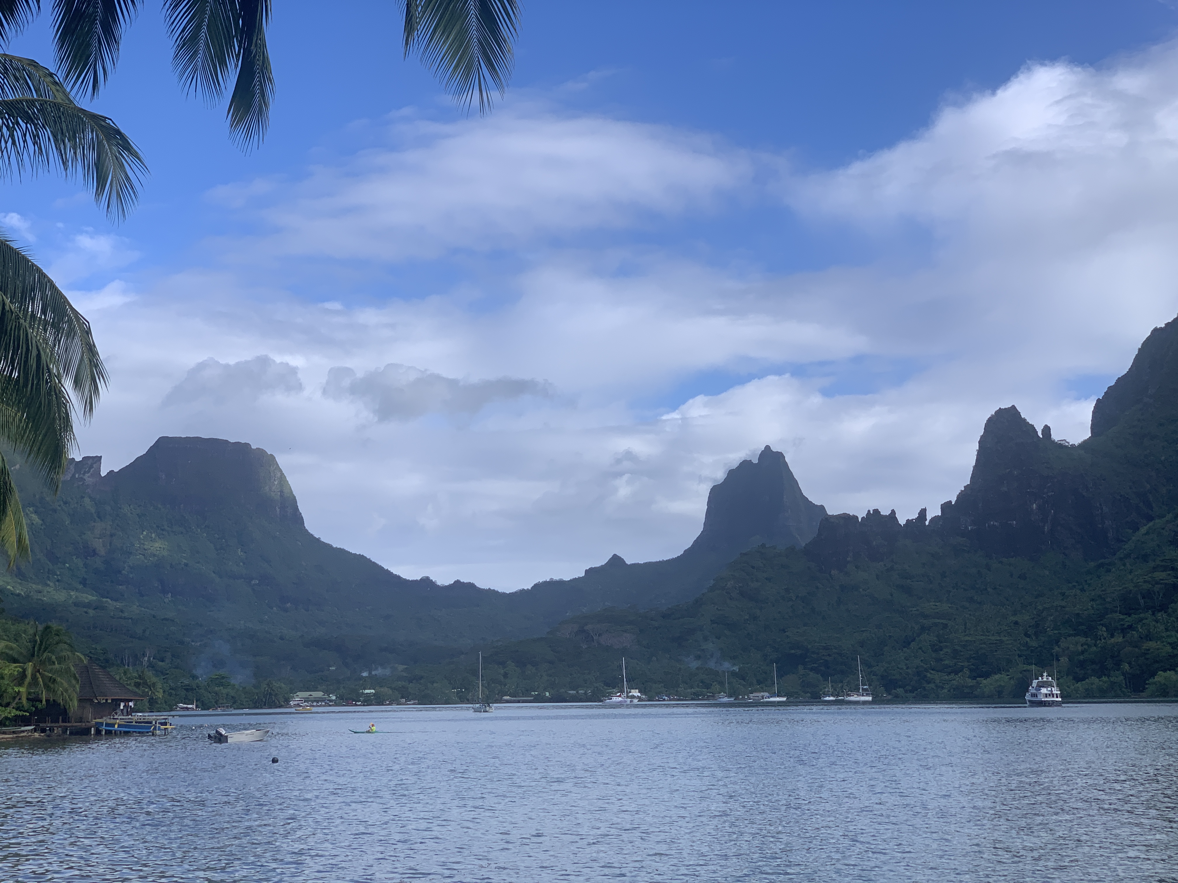 Von Moorea geht es für uns über Nacht weiter nach Huahine. Huahine ist tlw. von einem Riff umgeben, dass eine Lagune erzeugt. Wir fahren durch einen Pass in der Lagune und danach noch relativ lang innerhalb des Riffes zu unserem Ankerziel. Wir ankern wieder mal vor einem kleinen Ressort, es sind aber sonst nur wenige andere Schiffe vor Ort.