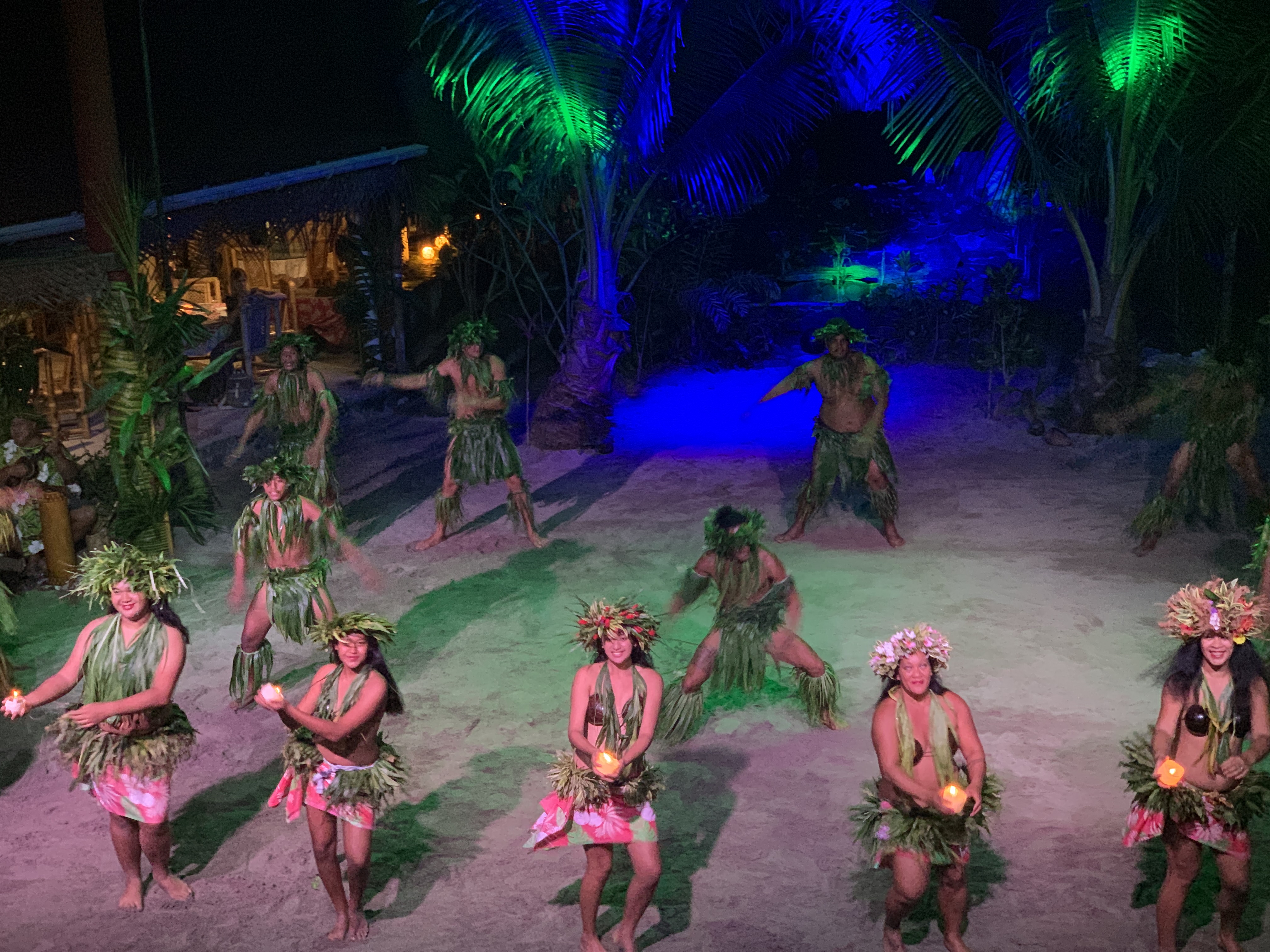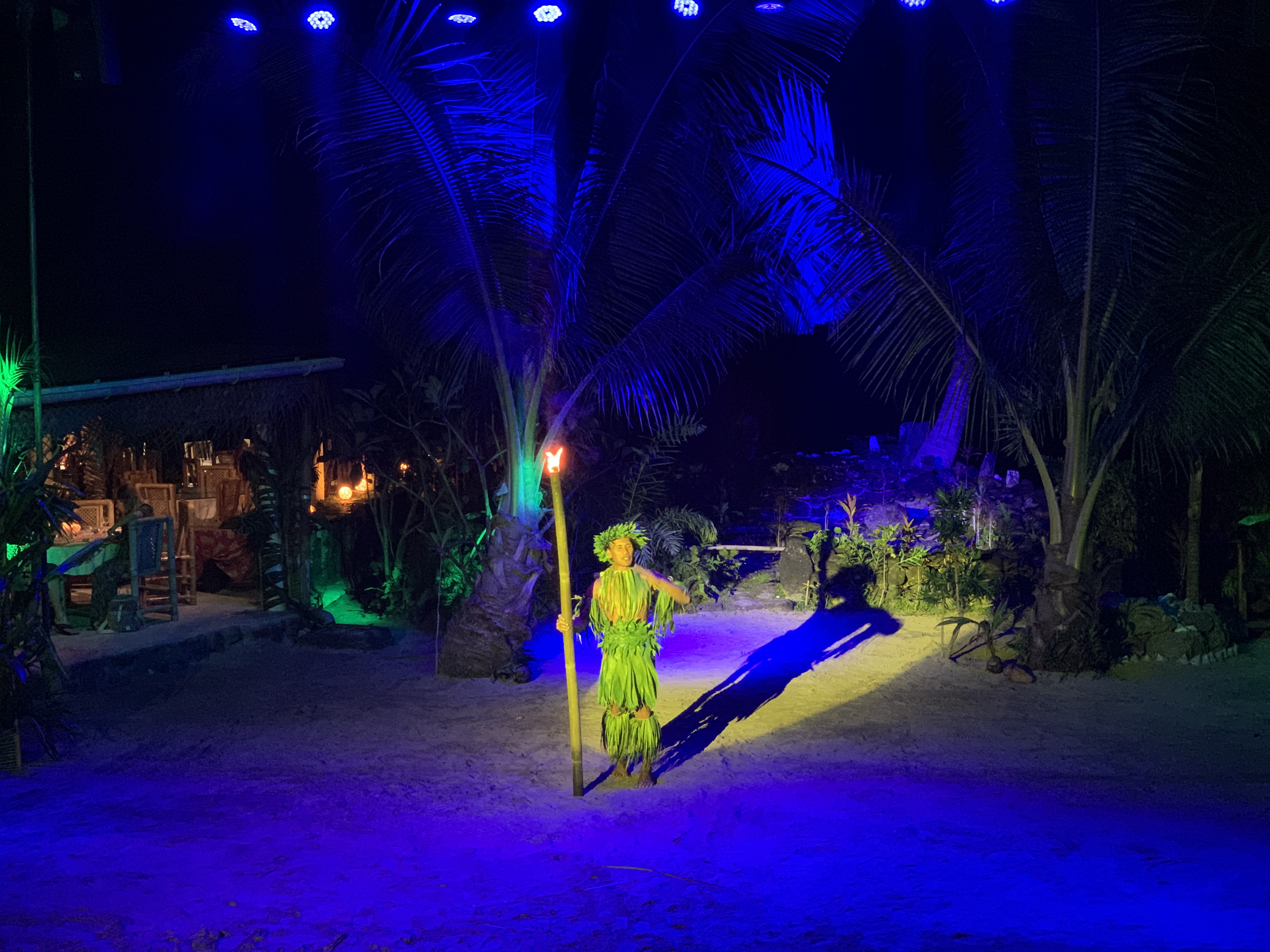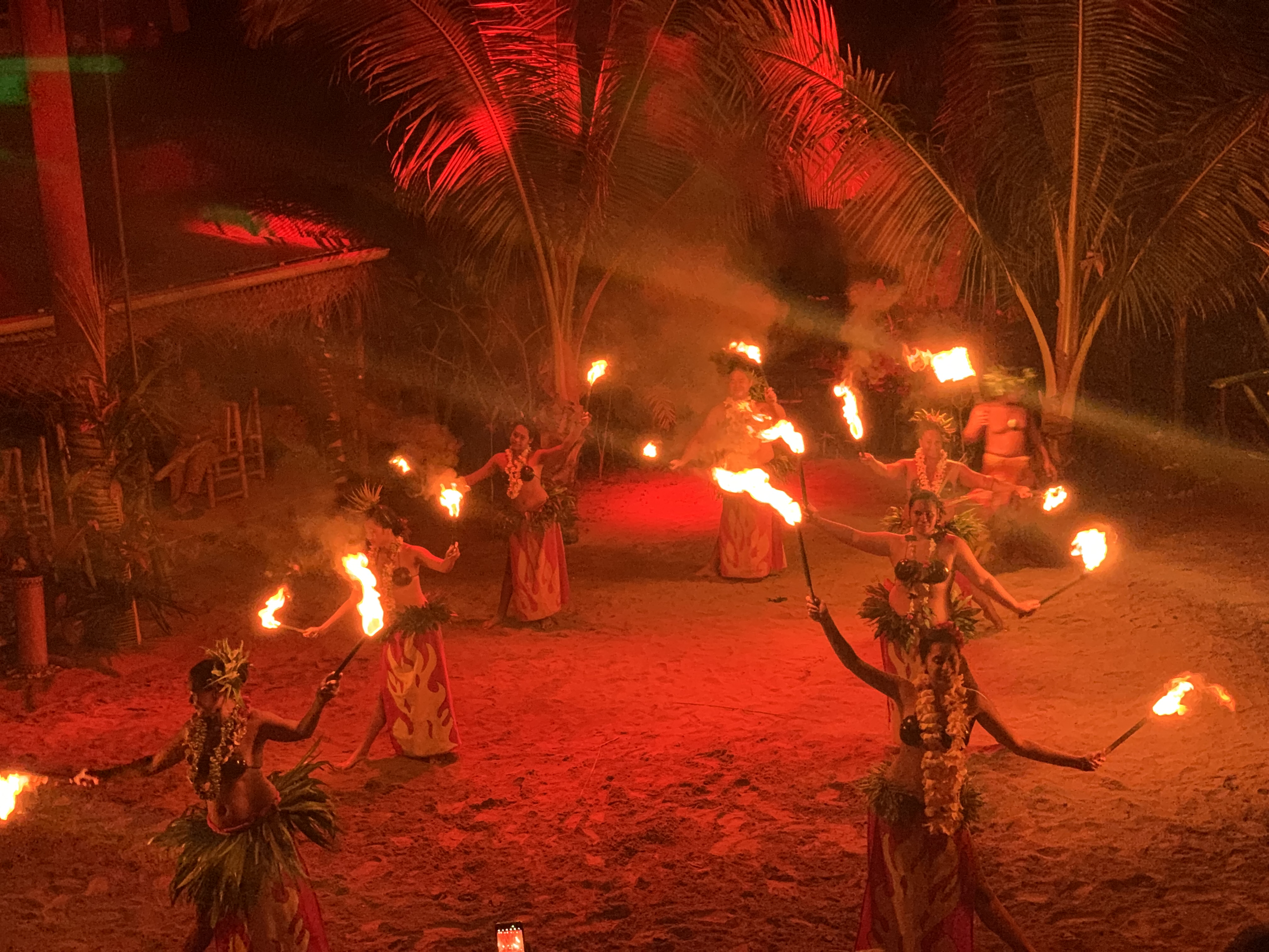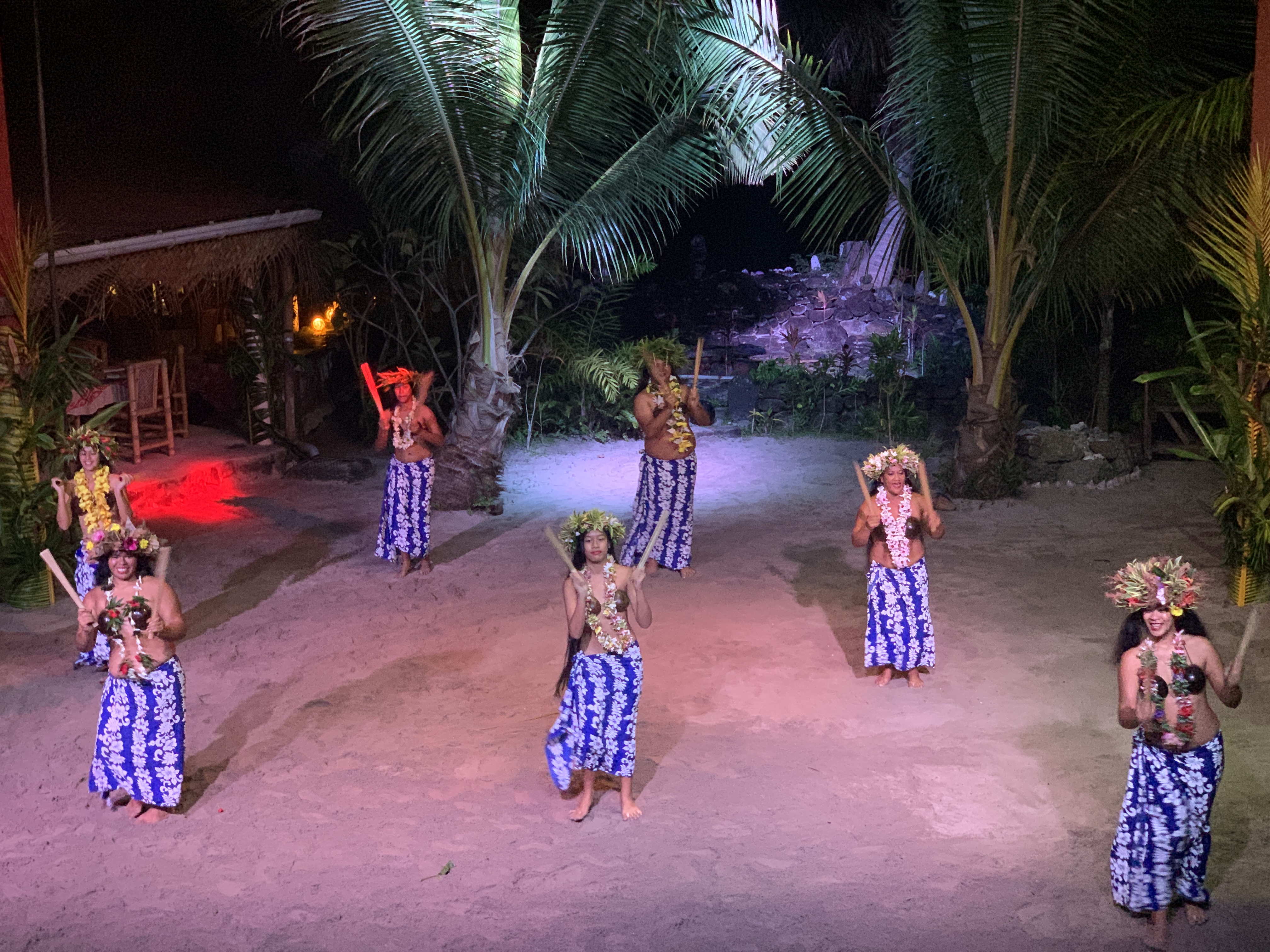 Auf Moorea haben wir die Möglichkeit einen kulturellen Abend zu besuchen. Ja das Ding ist für Touristen gemacht, aber wir werden später auf Bora Bora auch noch das Heiva Festival in voll Blüte erleben, dazu aber in einem separaten Beitrag. An dem Abend auf Moorea gibt es eine Führung durch ein Tiki Dorf samt Erklärung wie die Polynesier ganz ursprünglich lebten. Es gibt Vorführungen aller Art vom Kokosnuß öffnen mit nur drei Schlägen mit einem Holzstock, über Tanzvorführungen sowie das Zur Schau Stellen der beliebig vielen Arten wie sich Polynesier einfach mit einem Tuch bekleiden können. Und das Abendessen wir ganz traditionell im Erdofen zubereitet.