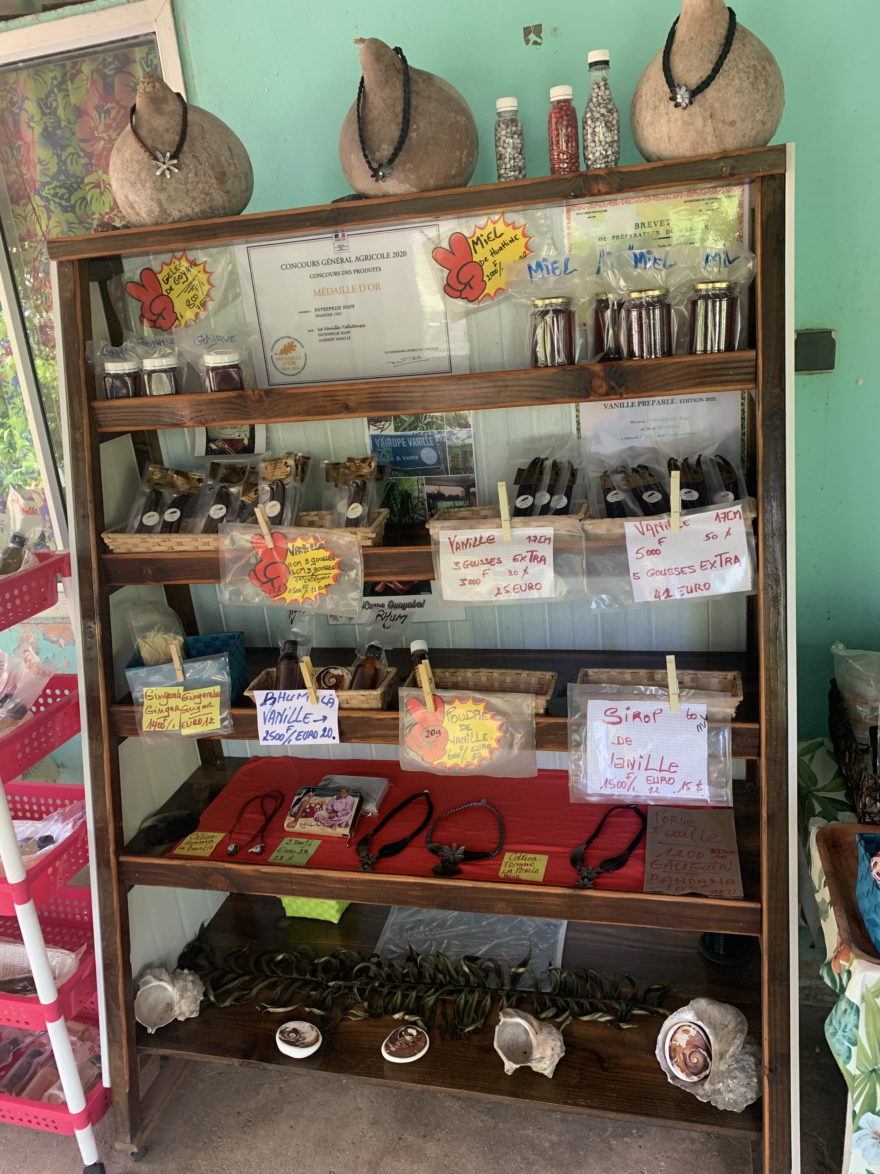 Auf Huahine besuchen wir eine Vanille Farm und lassen uns erklären wie Vanille angepflanzt und geerntet wird, sowie welche Produkte vor Ort hergestellt werden.