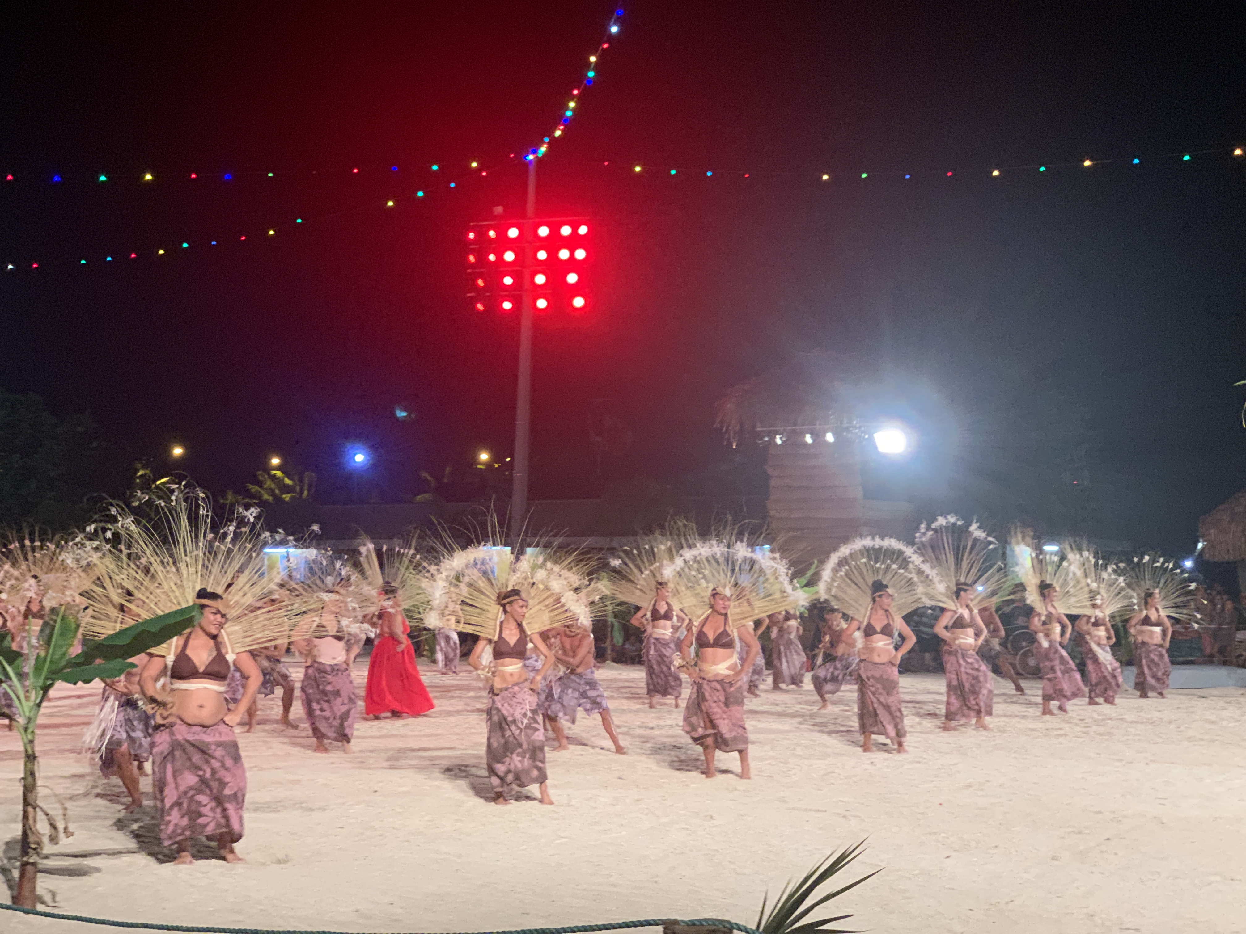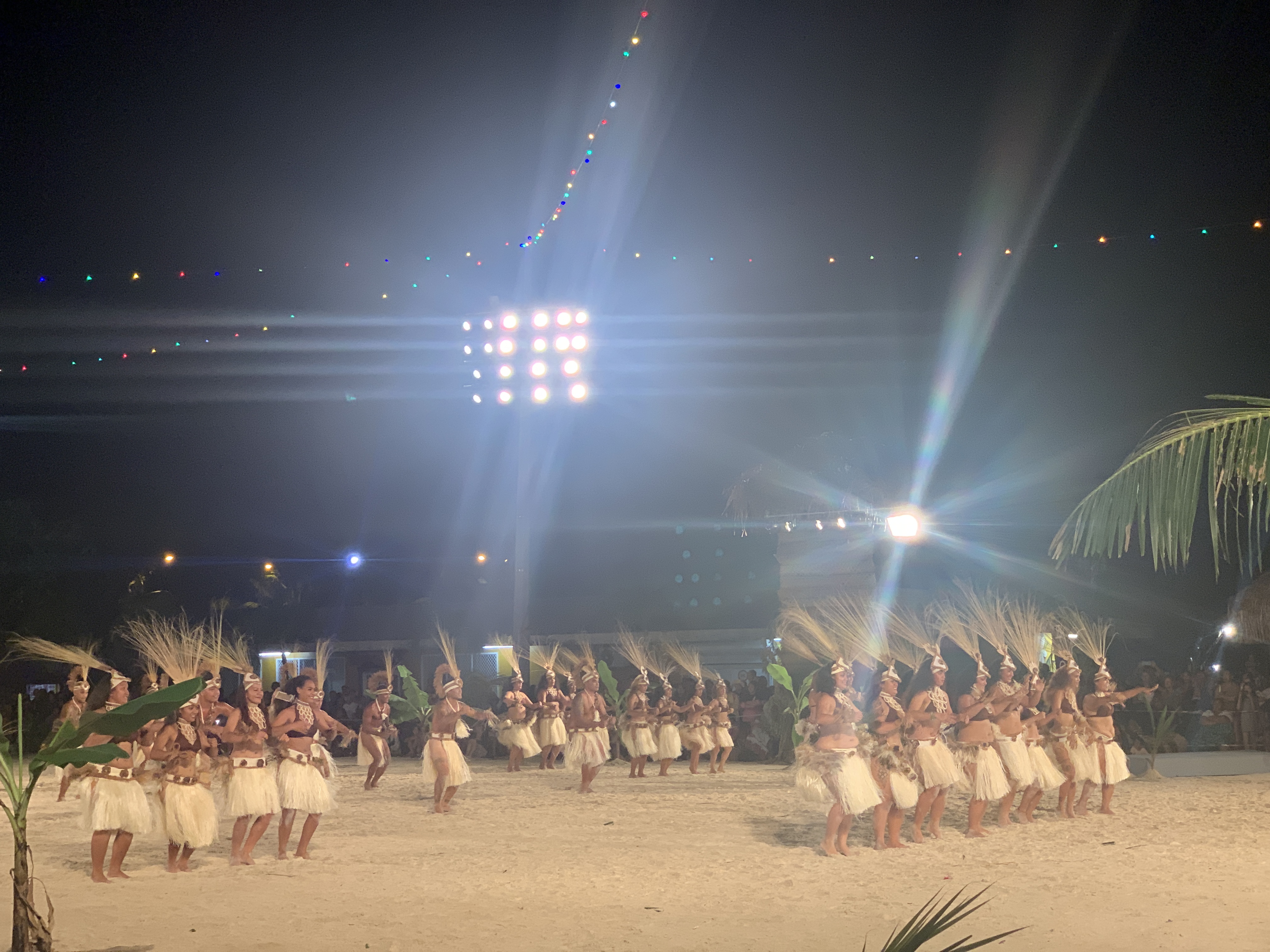 Am heutigen Abend stehen wie üblich zwei Tanzgruppen auf dem Programm. Die Tanzgruppen proben das ganze Jahr über, um dann im Laufe von Heiva 2-3 mal aufzutreten. Die Gruppen haben in der Regel ihre eigene „Kappelle“ und ggf auch ihren eigenen „Chor“ und bestehen schon mal aus über 100 Mitwirkenden. Auf der Tribüne sitzen in der ersten Reihe die Honoratioren, die auch als Mitglieder der Jury für den Tanzwettbewerb dienen. Für einen Platz auf der Tribüne muss man sich vorab Karten besorgen, aber seitlich lässt es sich auch einfach so zuschauen.