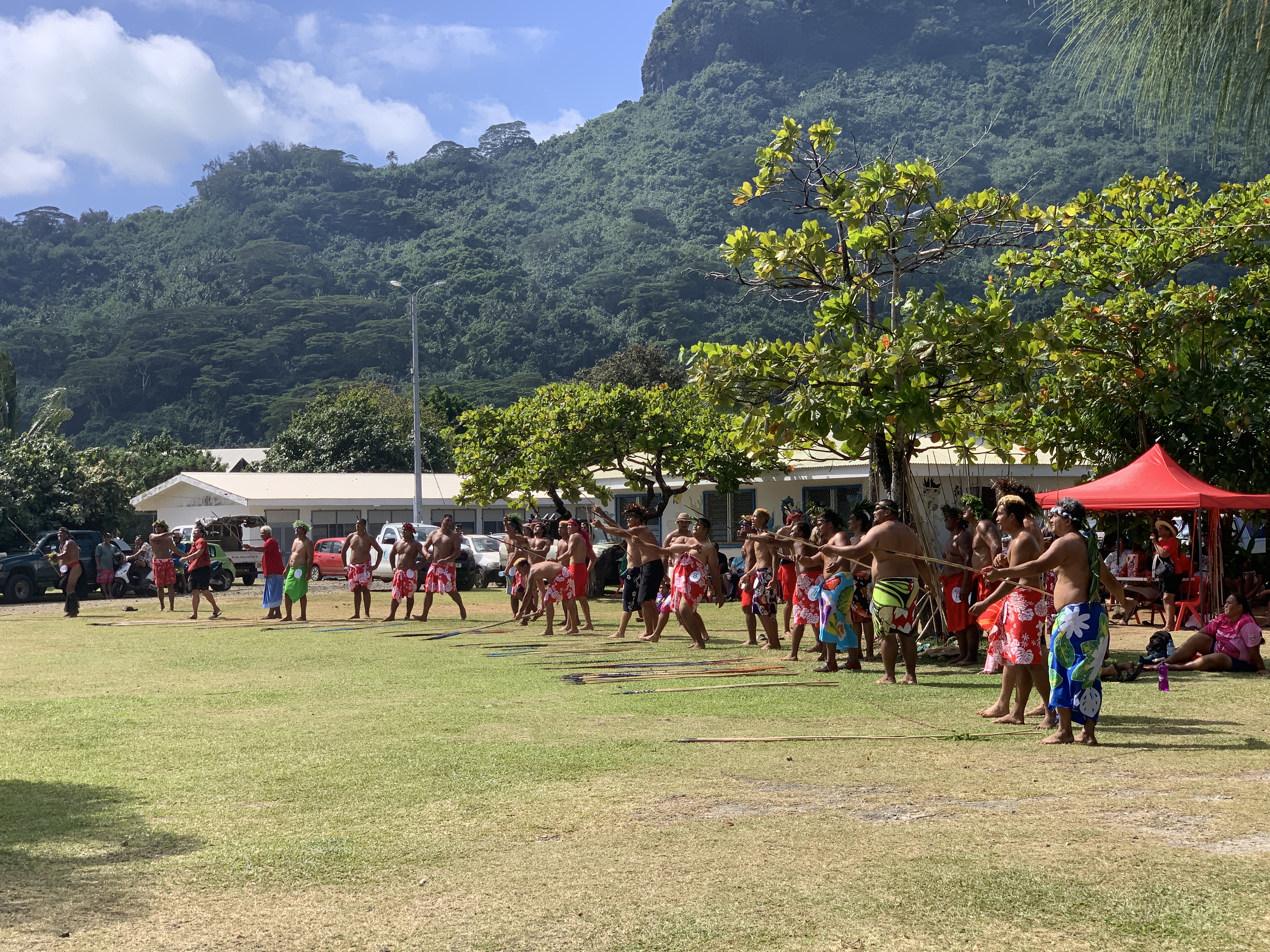 Ein mal im Jahr gibt es auf den Gesellschaftsinseln das sogenannte Heiva Fest. Es ist eine Art Kombination aus Volks- und Kulturfest. Ein wesentlicher Bestandteil des Festes sind Tanzwettbewerbe. Aber es gibt auch eine Art Rummelplatz und Festmeile sowie eine ganze Reihe anderer Wettbewerbe, wir zum Beispiel Outrigger Rennen (Outrigger sind die hiesige traditionelle Bootsform) oder Kokosnuß Speerwerfen. Das Fest dauert einen ganzen Monat.