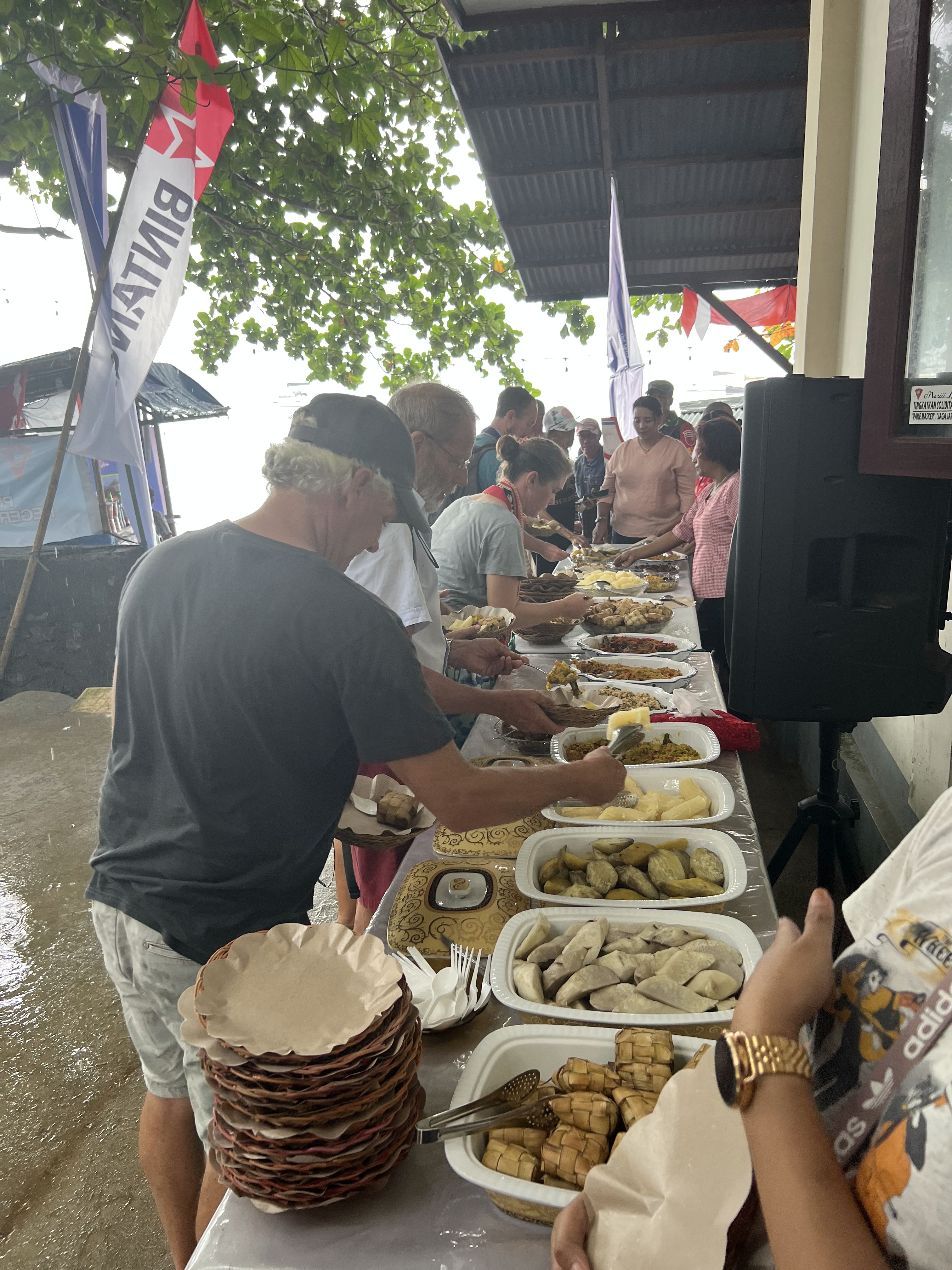 Empfangen werden wir wie fast schon üblich mit Tanz und indonesischem Buffet. Der Ausflug ins Zentrum von Ambon gestaltet sich wie für eine indonesische Stadt zu erwarten: viel Verkehr, eher dicke Luft, viele Menschen und viel Hustle-Bustle. Der Einkauf ist aber erfolgreich.