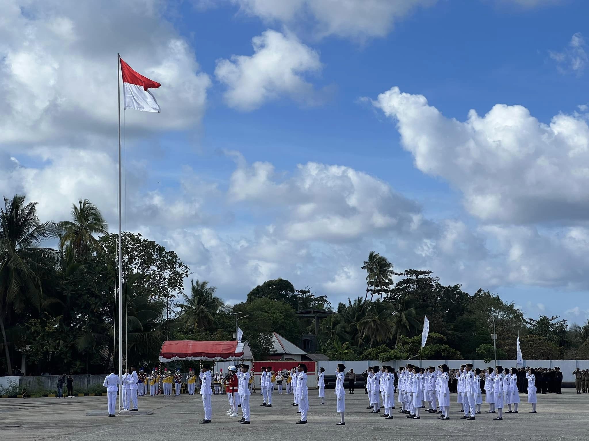 Nach einem Tag Pause, ist der eigentlich Unabhängigkeitstag dran, der 17. August. Dies beginnt um 7 Uhr früh mit einer formellen Zeremonie. Wir als Segler sind eingeladen, man hat uns sonnengeschützt Sitzplätze reserviert, während die meisten Teilnehmer stehen, und Überraschung: exerzieren. Nebst einiger Reden, rankt sich die Zeremonie um ein Hissen der Flagge. Diese wird im Stechschritt von einer Abordnung der besten Exerzierer auf den überdimensionierten Platz gebracht und in einem bis in den letzten Handgriff choreografierten Drill gehisst. Marching Bands und deren Vorführen dürfen dabei nicht fehlen sowie ein ausgiebiger Fototermin mit allen mit Rang und Namen in der Provinz.
