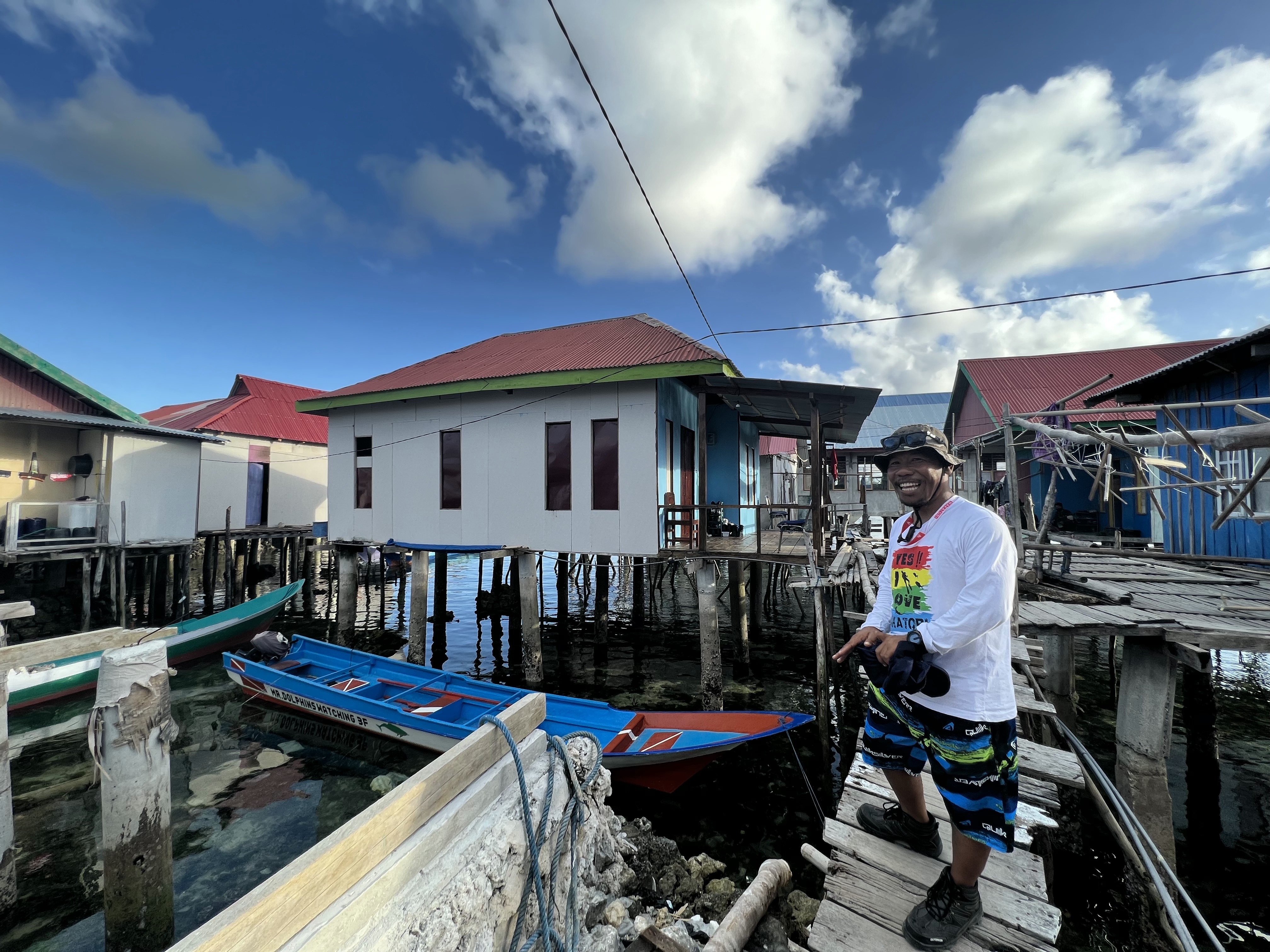 Nun geht es aber wirklich ins Bajo Village. Die Bajo sind ein ehemaliges Seenomaden Volk, die allerdigs über die Zeit sesshaft wurden. Sie leben allerdings nach wie vor auf und vom Wasser. Auf dem Wasser, bedeutet, dass sie ihre Häuser auf Stelzen oder aufgeschütteten Steinwällen bauen, sodass sie aber mit ihren Booten noch direkt bis zur Haustür fahren können. Es sind einfache Behausungen, es handelt sich aber nicht um ein Slum, auch wenn es ggf auf dem einen oder anderen Foto so aussehen möge. Die Boote werden aus Holz handgefertigt. Gelebt wird hauptsächlich vom Fischen und Seeweed ernten. Das Seeweed wird getrocknet und nach China exportiert, dort wird es zum Einen gegessen und zum Anderen in der Herstellung von Kosmetika benutzt.