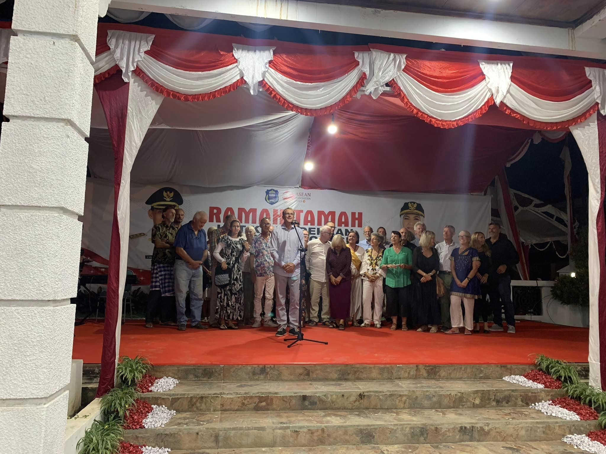 Den Schlusspunkt der Feierlichkeiten setzt ein „Gala Abend“ im Haus des Regenten. Auch hier sind wir Segler eingeladen. Eigentlich ist das Hauptevent des Abends die Siegerehrung zu all den Wettbewerben rund um den Unabhängigkeitstag. Zuvor werden aber alle Segler vor Ort auf die Bühne gebeten. So etwas geht nicht ab ohne, dass ein Repräsentant der Gruppe gebeten wird, eine kurze Ansprache zu halten. Florian darf also ein wenig seiner Bahasa (Indonesisch) Kenntnisse auspacken und ein paar gemischte Bahasa / Englische Sätze sagen. Was man halt bei so einer Gelegenheit sagt.