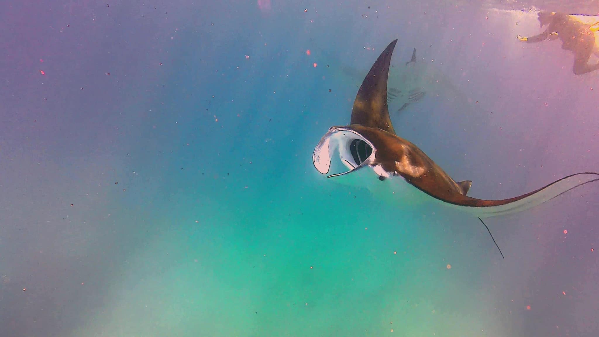 Neben Manta Ray Alley zum Tauchen, gibt es auch Manta Point zum Schnorcheln, auch hier begegnen wir wieder einer ganzen Reihe der majestätischen Viecher.