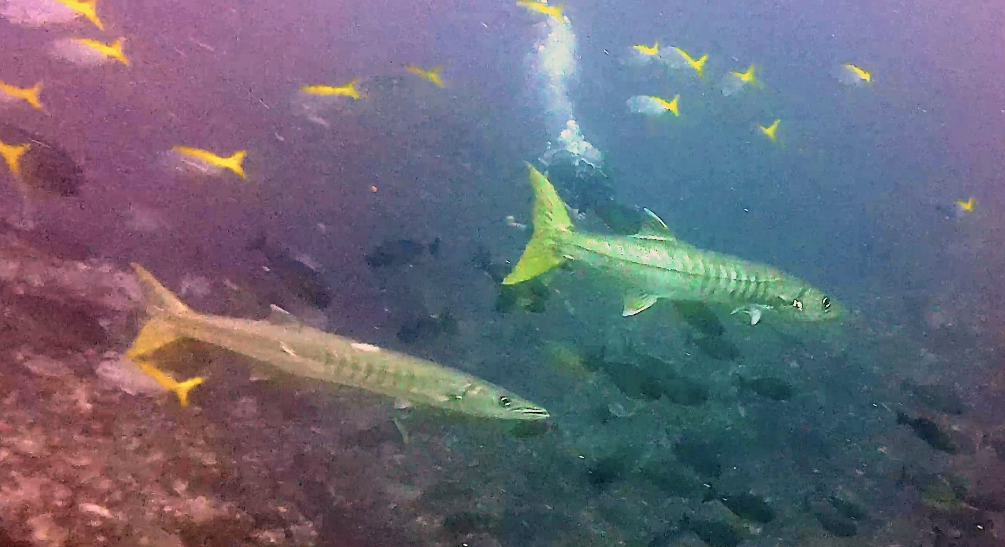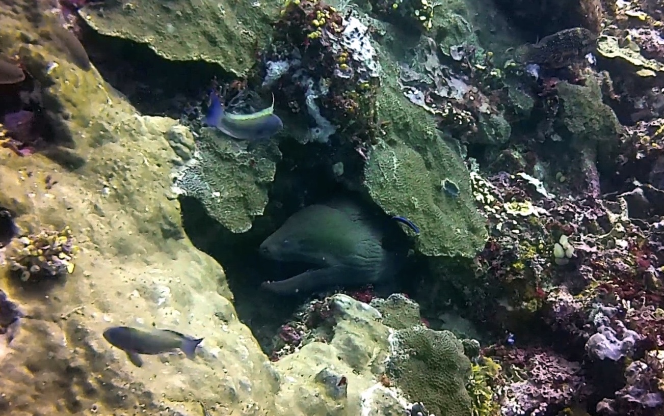Für uns geht es erst mal gleich unter Wasser los. Für einen Tag fahren wir zum Tauchen tief in den Nationalpark. In der Manta Ray Alley ist es zwar wahnsinnig kalt, aber wir tauchen gemeinsam mit diesen riesigen Rochen und schauen ihnen zu wie auch sie im Schwell hin und her wiegen. Nach einem klassischen Korallenrifftauchgang geht es zu einem Strömungstauchgang mit Strömung in für uns ungeahnter Stärke. Nach dem wir uns über einem Korallenriff dahintreiben lassen geht es in eine Art Kamin. Im Kamin schickt einen die Strömung nach oben, gut wenn man sich schnell am oberen Rand des Kamins seitlich festhält und nicht an die Wasseroberfläche gespült wird, das wäre gefährlich. Wobei das Festhalten am Kaminrand gar nicht so einfach ist. Als wir alle oben sind lassen wir los und ab geht die Post seitlich weg, wieder über ein Riff. Seitlich aus der Strömung schwimmend erreichen wir eine Art Plateau für unseren Safetystop, auf dem die Strömung geringer ist.
