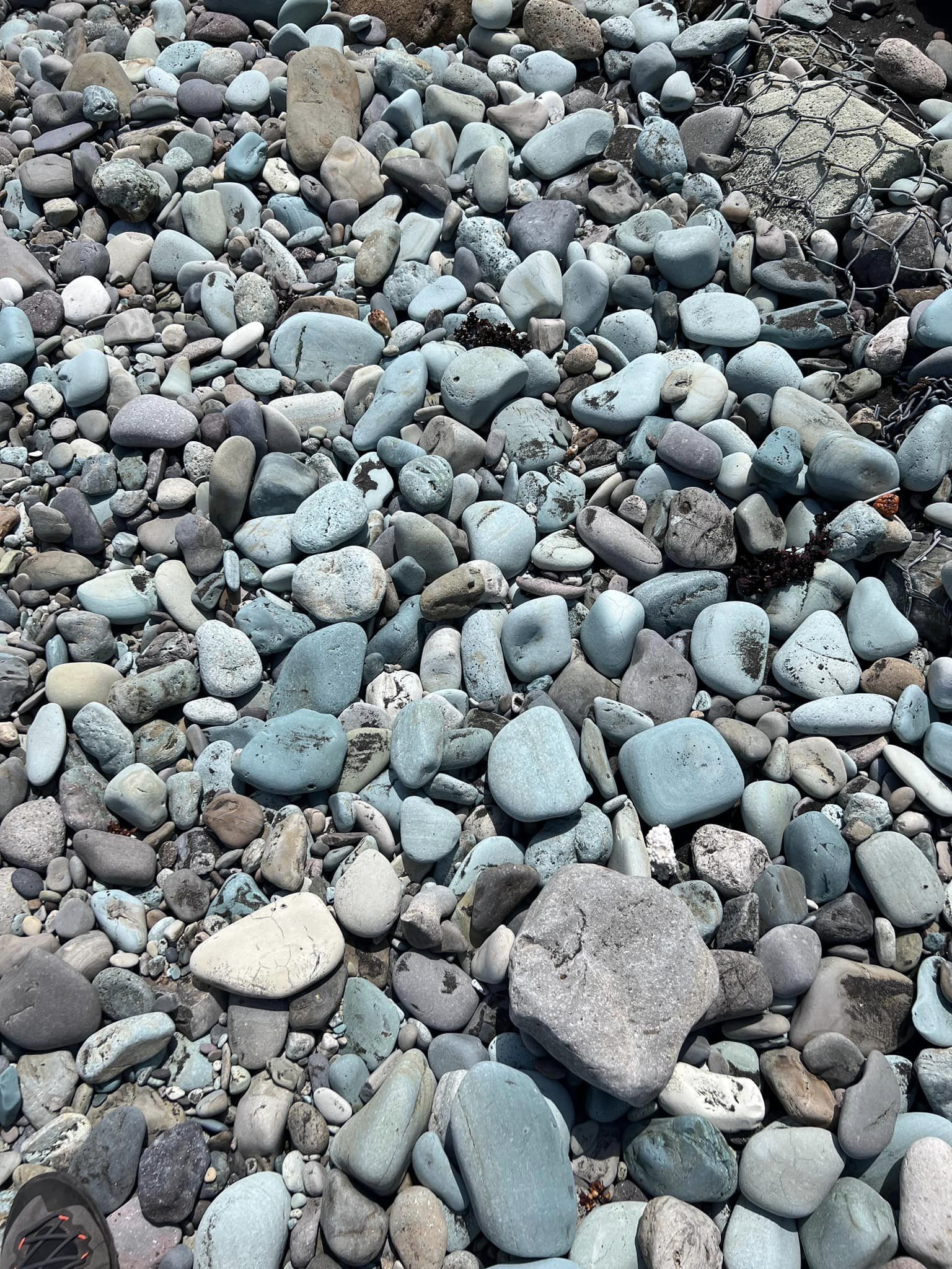 Den Tagesabschluss macht ein Besuch am Strand der blauen Steine, jetzt haben wir dann bald alle Farben an Stränden durch.
