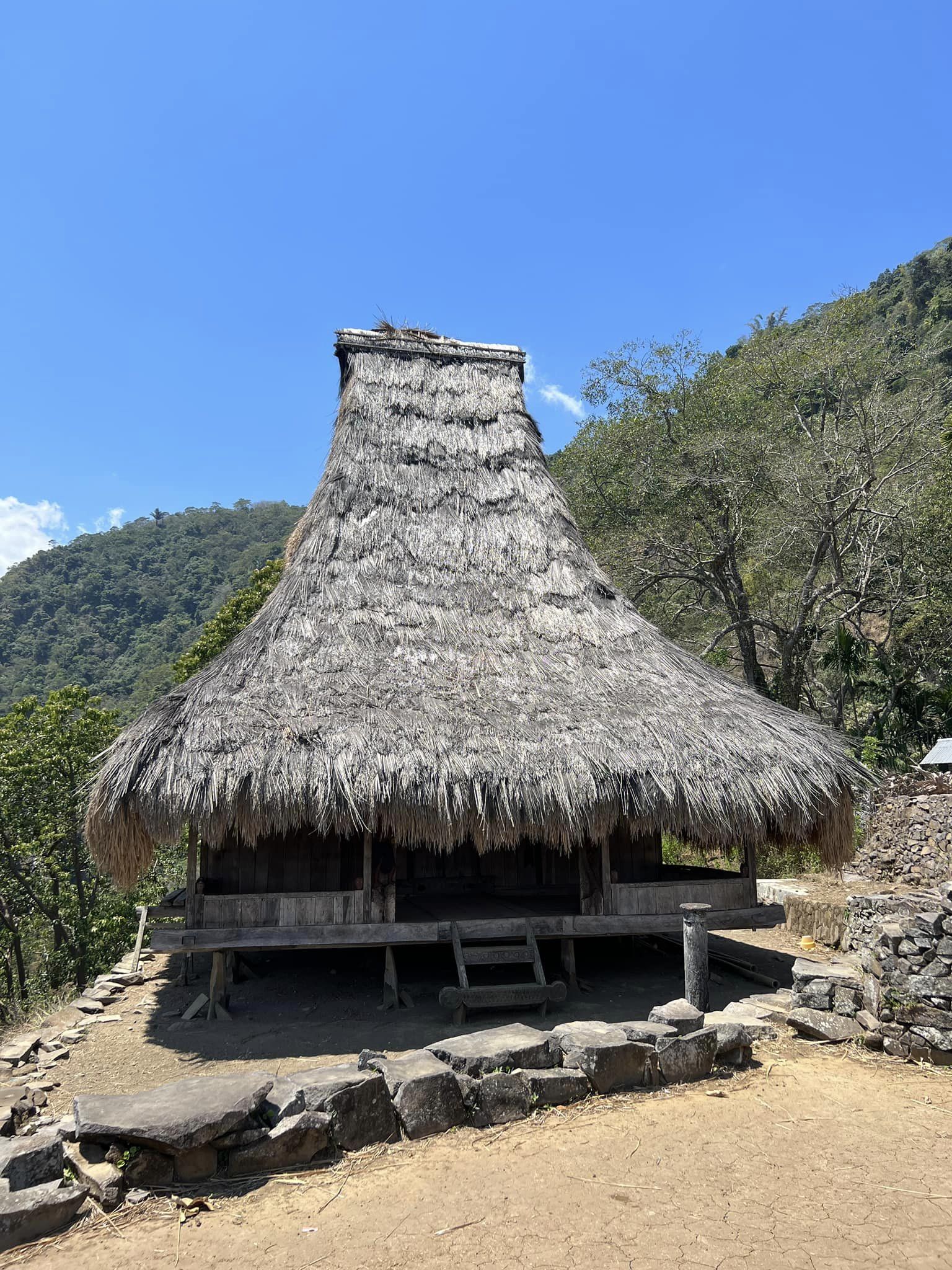 Im Dorf „Saga“ werden wir vom Chief herumgeführt. Wie die meisten Leute auf der Insel Flores handelt es sich um Katholiken, aber sie haben sich hier einige ihrer sehr alten Traditionen behalten. Dies inkludiert ein sehr starkes und unterschiedliches Rollenverständnis Frau vs. Mann aber auch zum Beispiel den Brauch Tiere zu allen möglichen Gelegenheiten zu Opfern.