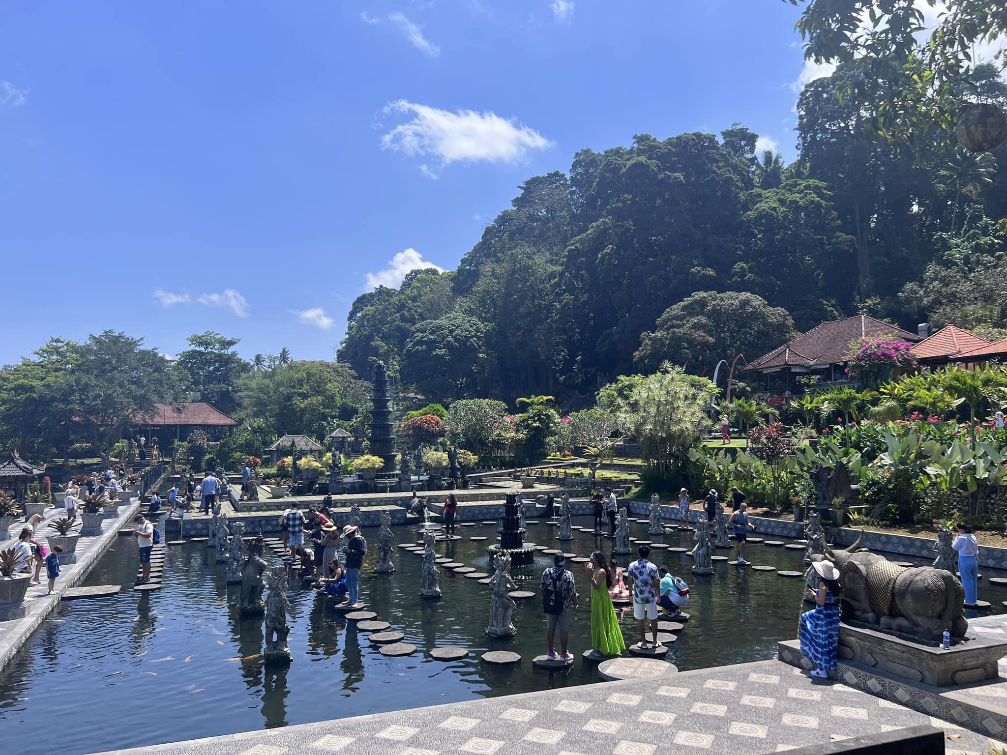 Tirta Gangga ist ein weiterer Wassertempel. Wenn man über die einzelnen ins Wasser gesetzte Steine spazieren geht, muss man dann schon aufpassen von wegen Fussgänger Gegenverkehr und so. Aber immerhin solange wir dort waren, ist niemand ins Wasser gefallen.
