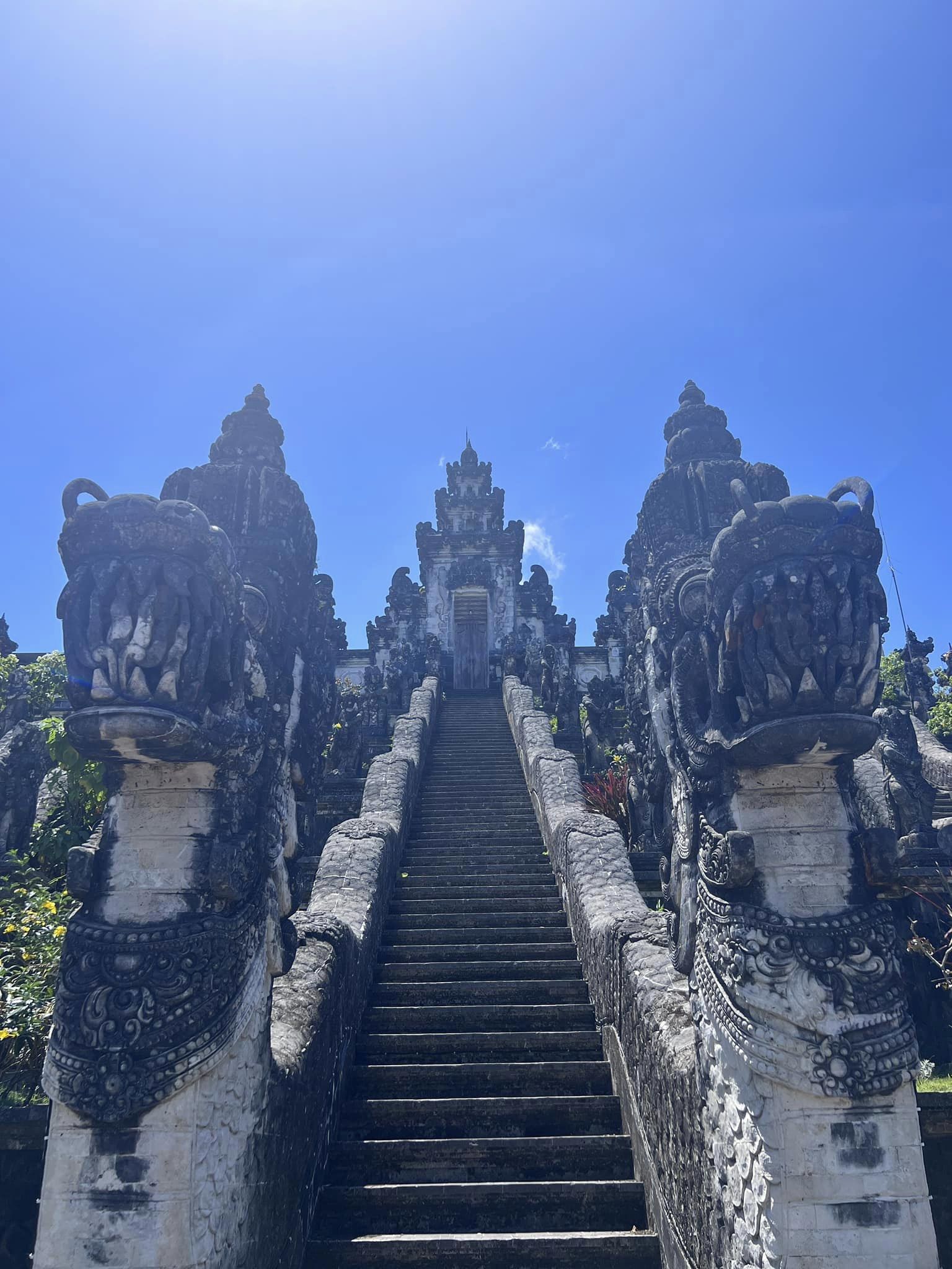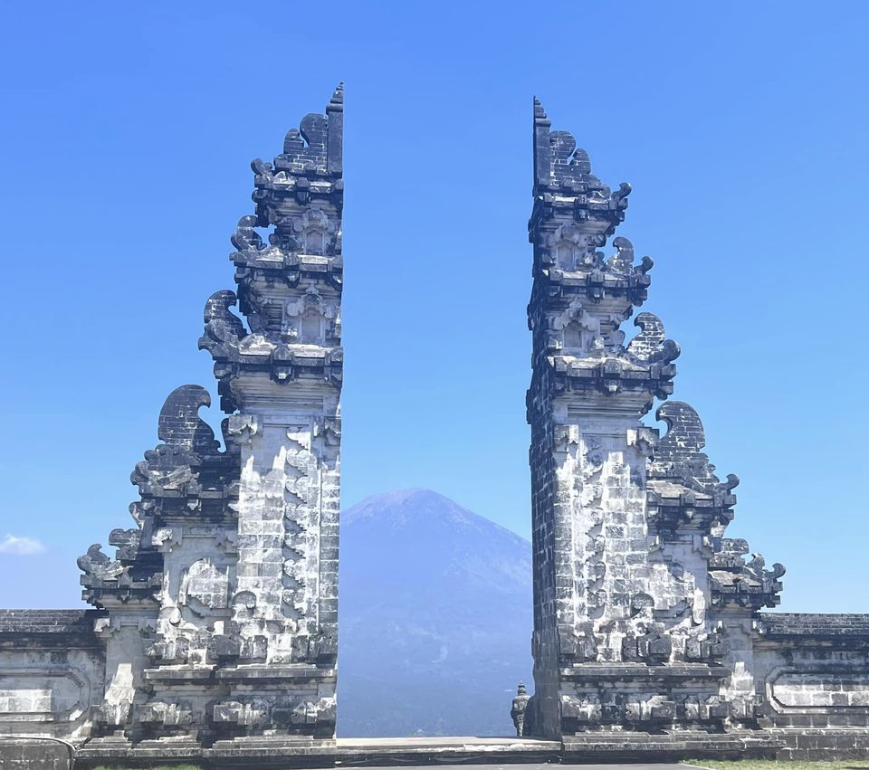 Am nächsten Tag geht es für uns zuerst zum insgesamt berühmtesten Selfie / Social Media Pic Spot in Indonesien: dem Gate to Haven im Lempuyang Tempel. Der Tempel und die Aussicht durchs Gate to Haven auf den Vulkan Mount Agung, kann man ganz einfach betrachten und auch fotografieren. Sollte man aber ein Foto von sich selbst im Gate to Haven mit dem Vulkan im Hintergrund wollen wartet man ca 3 Stunden – es sind halt die Zeiten von Instagramm und co. Wir lassen das aus, wandern dafür in die dahinterliegenden Berge, in denen noch kleinere nette Tempel zu finden sind.