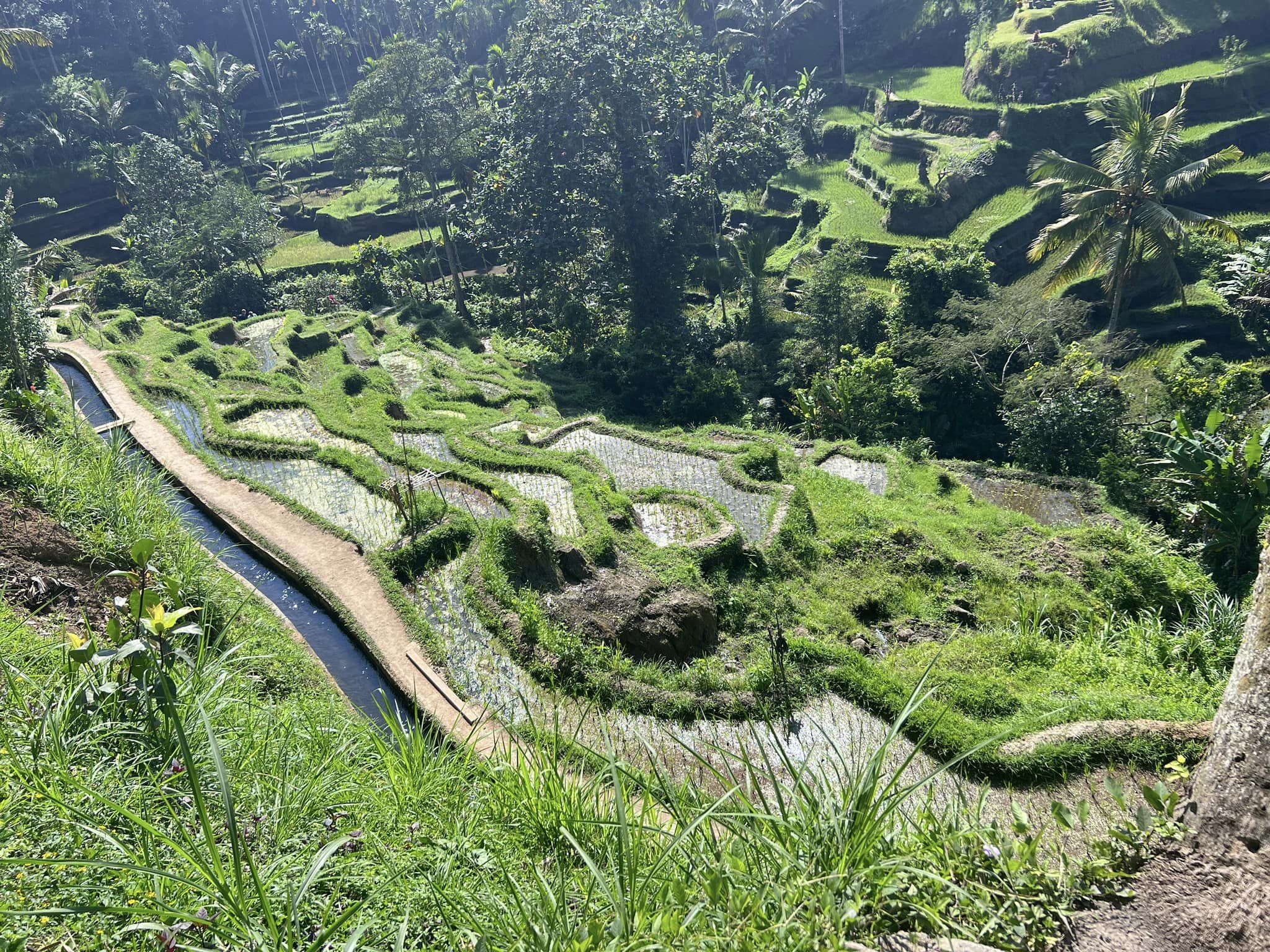 Auch wenn wir bereits einige Reisfelder gesehen haben, sind die Reisfelder von Tegalalong doch sehr beeindruckend. In dem steilen Tal sind überall Paddies angelegt, aufgrund der Steilheit, sind sie aber mitunter so klein, dass es gerade mal für 10 Reispflanzen in einem einzelnen Paddy reicht.