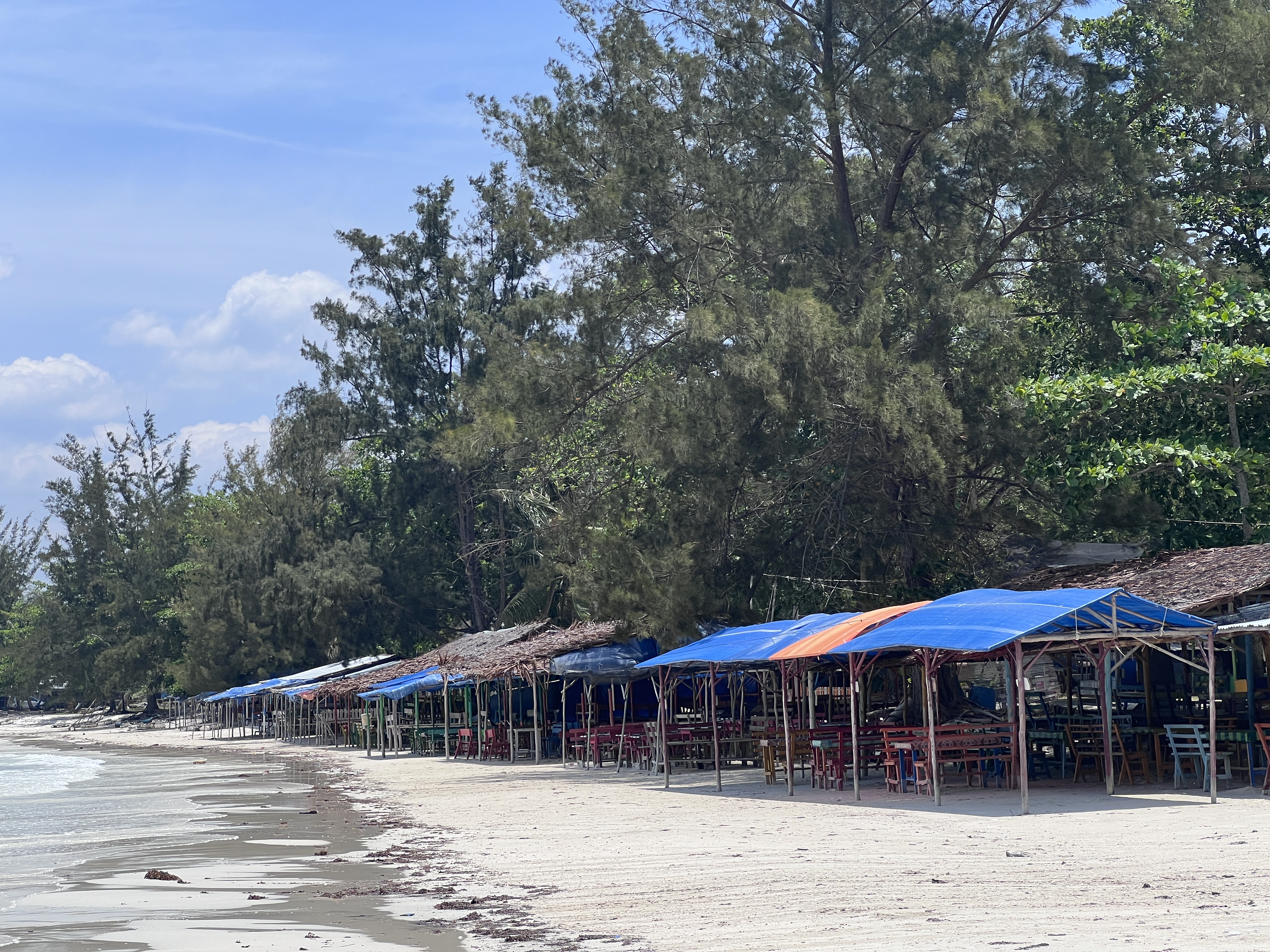 Endlich wieder klares Wasser. Der Kumai River war ja eher von Schlamm geprägt, hier kann man auch wieder mal ins Wasser springen und eine Runde schwimmen. Belitung selbst ist eine Urlaubsdestination für Einheimische. Hier kommen zum Beispiel die Leute aus Jakarta auf Strandurlaub. Leider – für die Einheimischen – hat der Tourismus hier unter Covid stark gelitten und sich seither nicht wieder erholt. So gibt es entlang des Strandes eine ganze Reihe an geschlossenen Lokalen und Verkaufsständen.