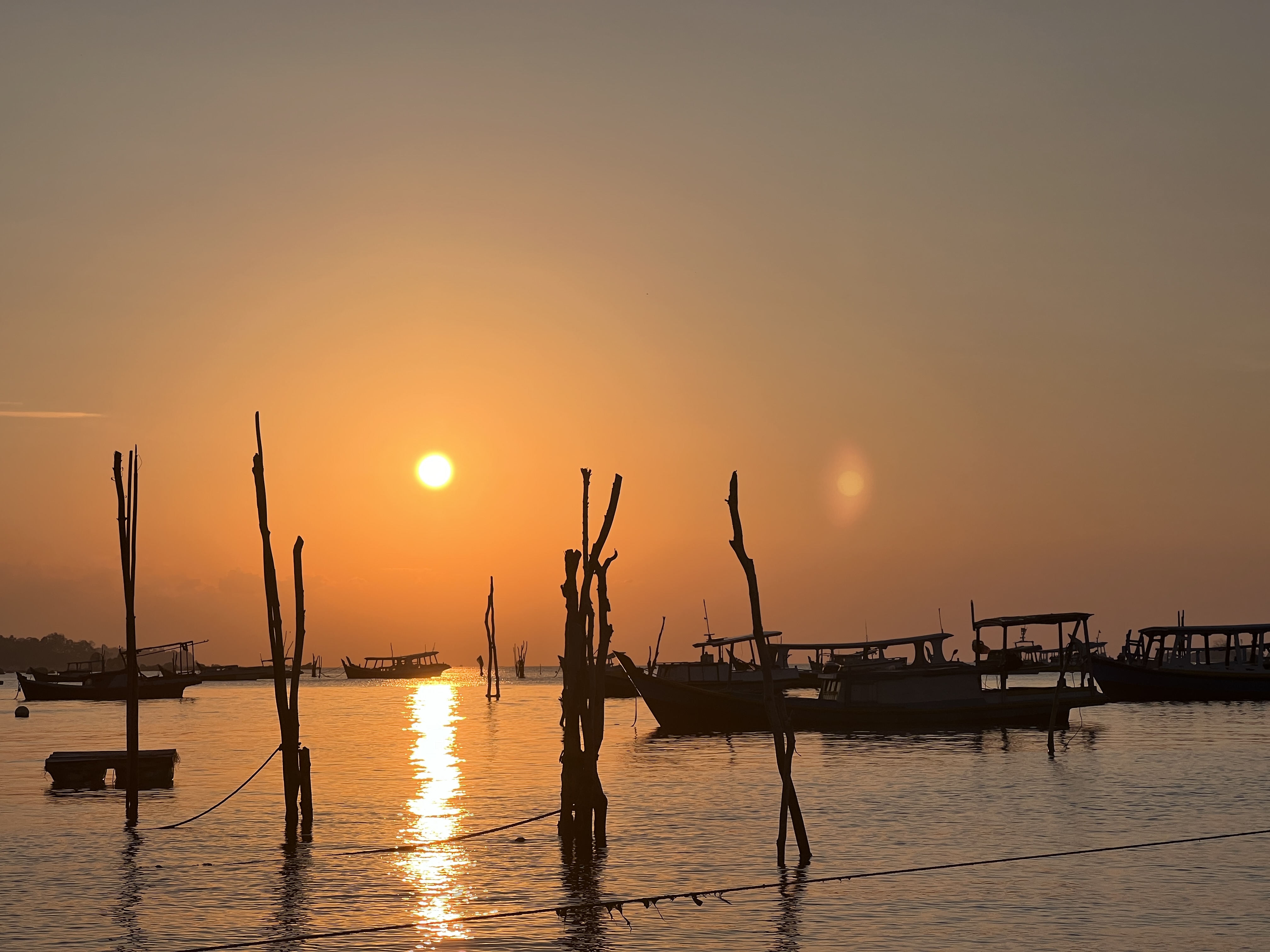 Leider begleiten uns die Gewitter nach wie vor, das wird auch noch eine Weile so bleiben. Immerhin kommen sie uns hier nicht zu Nahe. Wir erfahren aber von Freunden, die einige Tage hinter uns segeln, dass sie im Kumai River Delta direkt vom Blitz getroffen wurden. Auf einer Segelyacht ist das nicht lustig. Es besteht da tyischerweise zwar kein Risiko für Leib und Leben, aber sämtliche Elektrik und Elektronik geht dadurch kaputt, was selbst für ein Segelboot ein größeres Problem ist und typischerweise einen mehrmonatigen Refit erfordert. Wir hoffen also weiterhin, dass wir davon verschont bleiben, bis wir im Norden aus der Äquator-Gewitterzone wieder draußen sind.